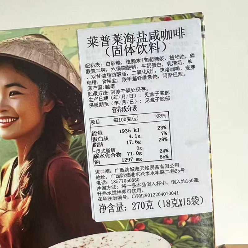 Vietnam Imported Instant Sea Salt Salty Coffee 270g (18g*15 Bags)