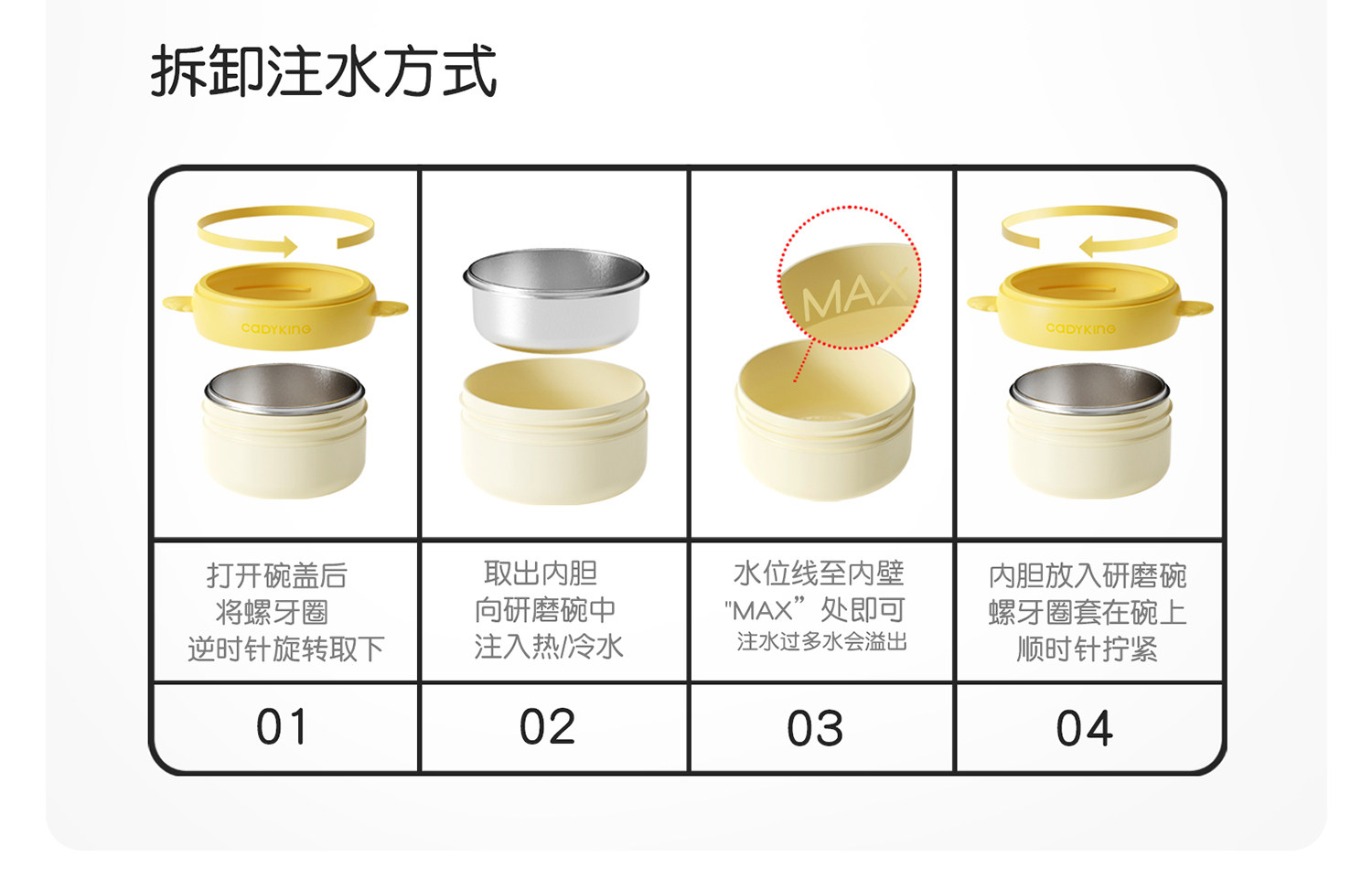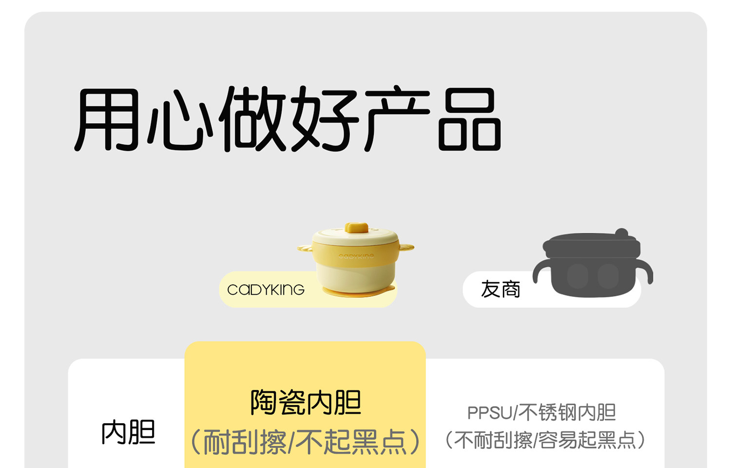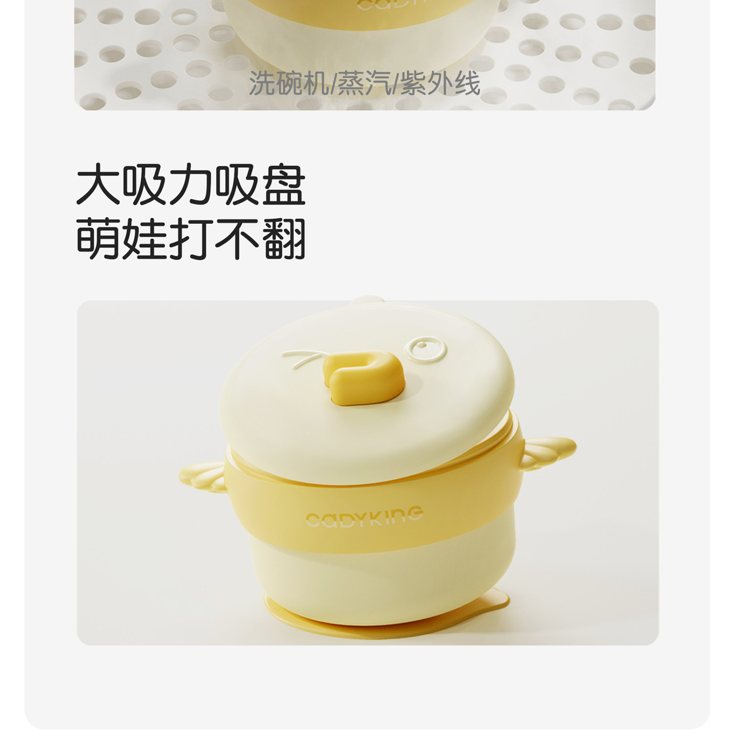 cadyking鸭鸭宝宝辅食碗陶瓷婴幼儿米粉钛注水保温恒温碗儿童餐具