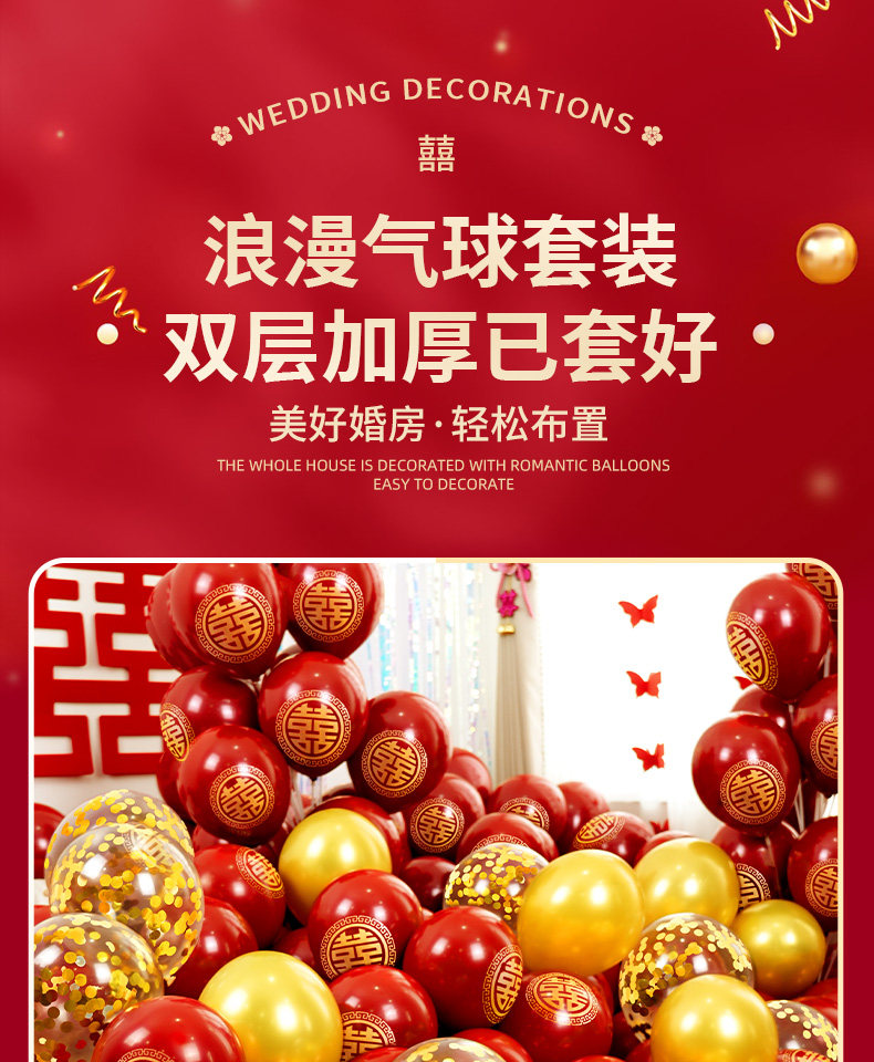 Свадебные шары, украшения для свадебной комнаты, полный комплект свадебных украшений, красный двухслойный свадебный декор, украшение для будущего дома жениха, свадебные принадлежности для всего дома
