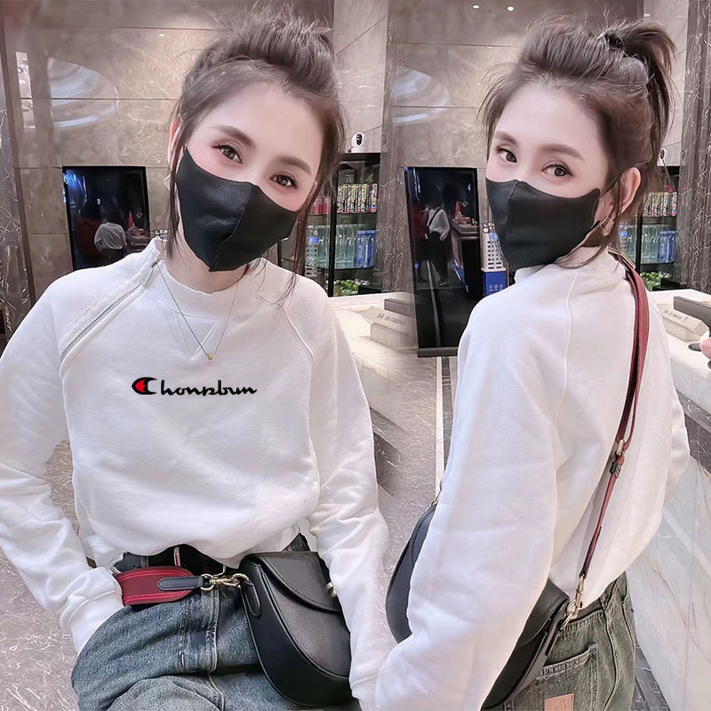 Champion Rainbow White Base Layer Women's Autumn Pure Cotton Loose Versatile Zip-Up T-Shirt Spliced Long-Sleeve Top