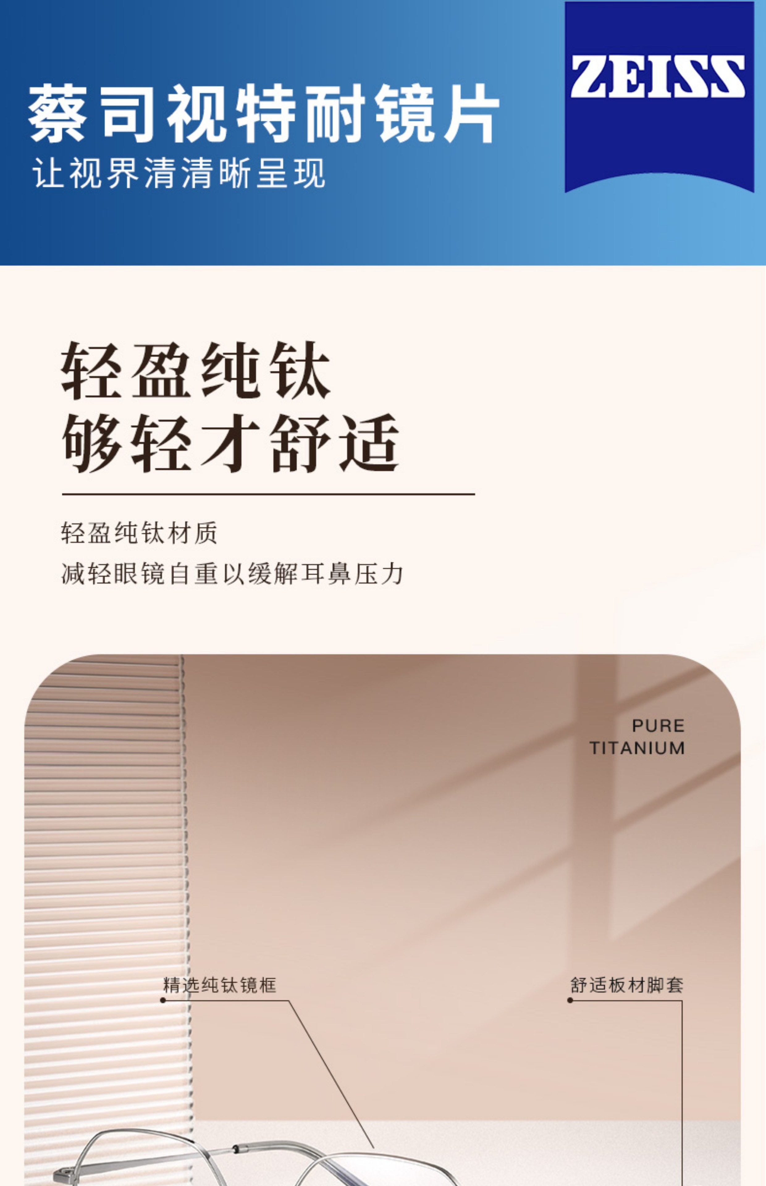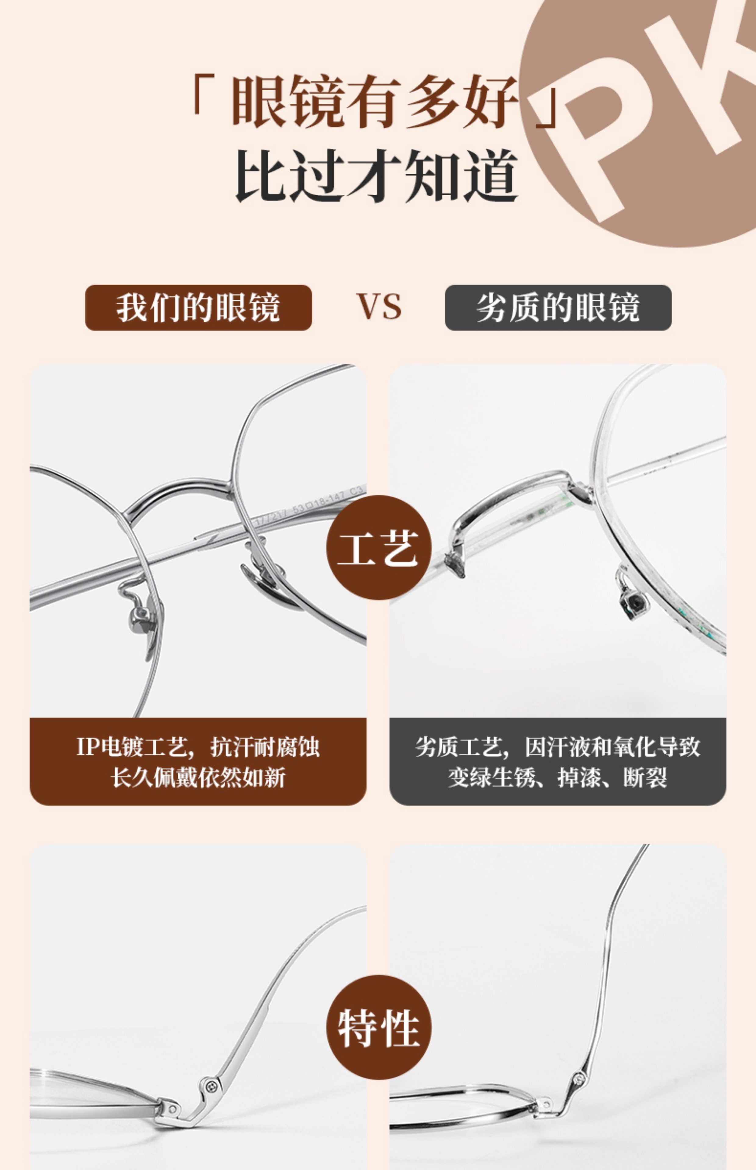 Color Classification 20 Years of Experience in Making Glasses in Physical Stores, if the Glasses Are Not Accurate, You Will Get a Full Refund!,Supports Trying On, Try before Buying.,Let's Put It to the Test and See Who Comes Out on Top!,Cool Silver Frame [Imported Raw Material 99.8% Titanium, Skin-Friendly and Durable],Gentle Rose Gold [Imported Raw Materials, 99.8% Titanium, Skin-Friendly and Durable],Versatile Black Frame [Imported Raw Materials, 99.8% Titanium, Skin-Friendly and Durable],Trendy Black and Gold [Imported Raw Materials, 99.8% Titanium, Skin-Friendly and Durable],Neutral Black Silver Frame [Imported Raw Material 99.8% Titanium, Skin-Friendly and Durable],Sassy Blue and Silver [Imported Raw Materials, 99.8% Titanium, Skin-Friendly and Durable],Eyeglass Frames + Blue Light Blocking Lenses (Non-Prescription),Frame + 1.56 Anti-Reflective Lenses [Leave Color and Prescription in Comments],Eyeglass Frames + 1.61 Anti-Blue Light Lenses [Leave Color & Prescription in Comments],Eyeglass Frames + 1.67 Anti-Blue Light Lenses [Leave Color & Prescription in Notes],Eyeglass Frames + 1.74 Anti-Blue Light Lenses [Leave Color & Prescription in Comments],Frame + 1.56 Anti-Blue Light Lenses [Leave Color and Prescription in Comments],Frame + 1.61 Anti-Blue Light Lenses [Leave Color and Prescription in Comments],Frame + 1.67 Anti-Blue Light Lenses [Color and Degree Leave a Message],Frame + 1.56 Photochromic Lenses [Leave Color & Prescription in Comments],Frame + 1.61 Photochromic Lenses [Leave Color & Prescription in Notes],Frame + 1.67 Photochromic Lenses [Leave Color & Prescription in Comments],Officially Authorized by Zeiss, Authenticity Guaranteed,[Zeiss Lenses] Lenses Are Packaged and Shipped with the Product. if You Get a Fake, You Will Be Compensated 10%.,Paired with Zeiss' Spectar 1.56 Anti-Radiation Lenses (0-400 Degrees, Astigmatism Within 200).,Paired with Zeiss' Schiesser 1.61 Lightweight Aspheric Lenses (0-600 Degrees, Astigmatism Within 200).,Paired with Zeiss' Schiener 1.67 Ultra-Thin Aspheric Lenses (300-800 Degrees of Astigmatism Within 200 Degrees),Paired with Zeiss' Schiesser 1.56 Blue Light Blocking Lenses (0-400 Degrees, Astigmatism Within 200).,Paired with Zeiss' Schiesser 1.61 Lightweight Blue Light Blocking Lenses (0-600 Degrees, Astigmatism Within 200 Degrees).,Paired with Zeiss' Schiesser 1.67 Ultra-Thin Anti-Blue Light Lenses (300-800 Degrees of Astigmatism Within 200 Degrees),[Zis] Jiari 1.56 High-Definition Ice Blue Film Lens (0-400 Degrees, Astigmatism Within 200),[Zis] Jiari 1.61 High-Definition Ice Blue Film Lens (0-600 Degrees, Astigmatism Within 200),[Zis] Jiari 1.67 High-Definition Ice Blue Film Lens (300-800 Degrees, Astigmatism Within 200),[Zis] Jiari 1.74 High-Definition Ice Blue Film Lens (300-1000 Degrees, Astigmatism Within 200),[Zis] a Series 1.56 Lotus Film Lens (0-400 Degrees, Astigmatism Within 200),[Zis] a Series 1.61 Lotus Film Lens (0-600 Degrees, Astigmatism Within 200),[Zis] a Series 1.67 Lotus Film Lens (300-800 Degrees, Astigmatism Within 200),[Zis] a Series 1.74 Lotus Film Lens (300-1000 Degrees, Astigmatism Within 200),[Zis] Diamond Cube 1.56 Anti-Blue Light Film Lens (0-400 Degrees, Astigmatism Within 200),[Zis] Diamond Cube 1.61 Anti-Blue Light Film Lenses (0-600 Degrees, Astigmatism Within 200 Degrees),[Zis] Diamond Cube 1.67 Anti-Blue Light Film Lens (300-800 Degrees, Astigmatism Within 200),[Zis] Diamond Cube 1.74 Anti-Blue Light Film Lens (300-1000 Degrees, Astigmatism Within 200)