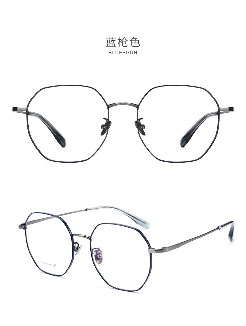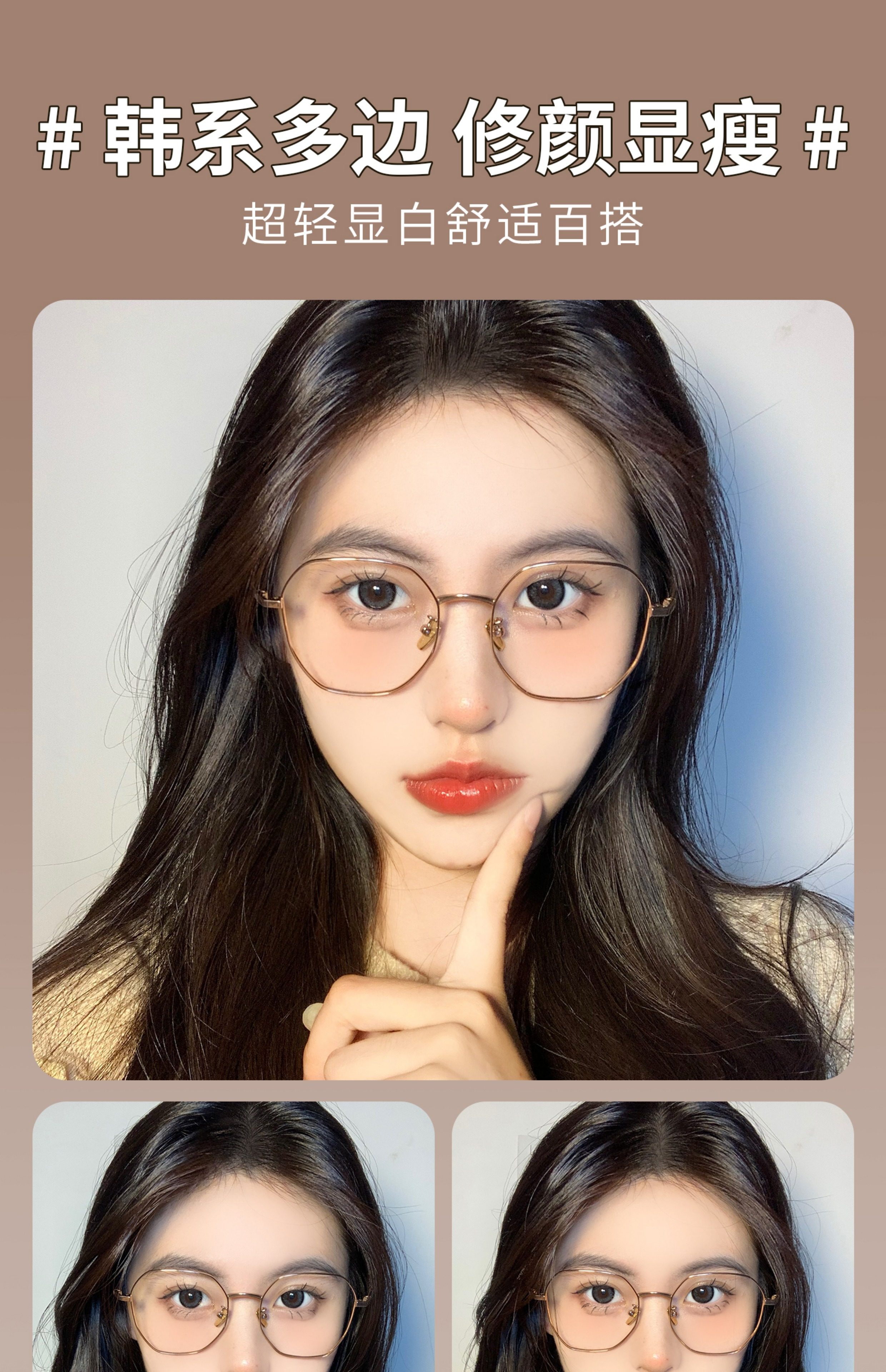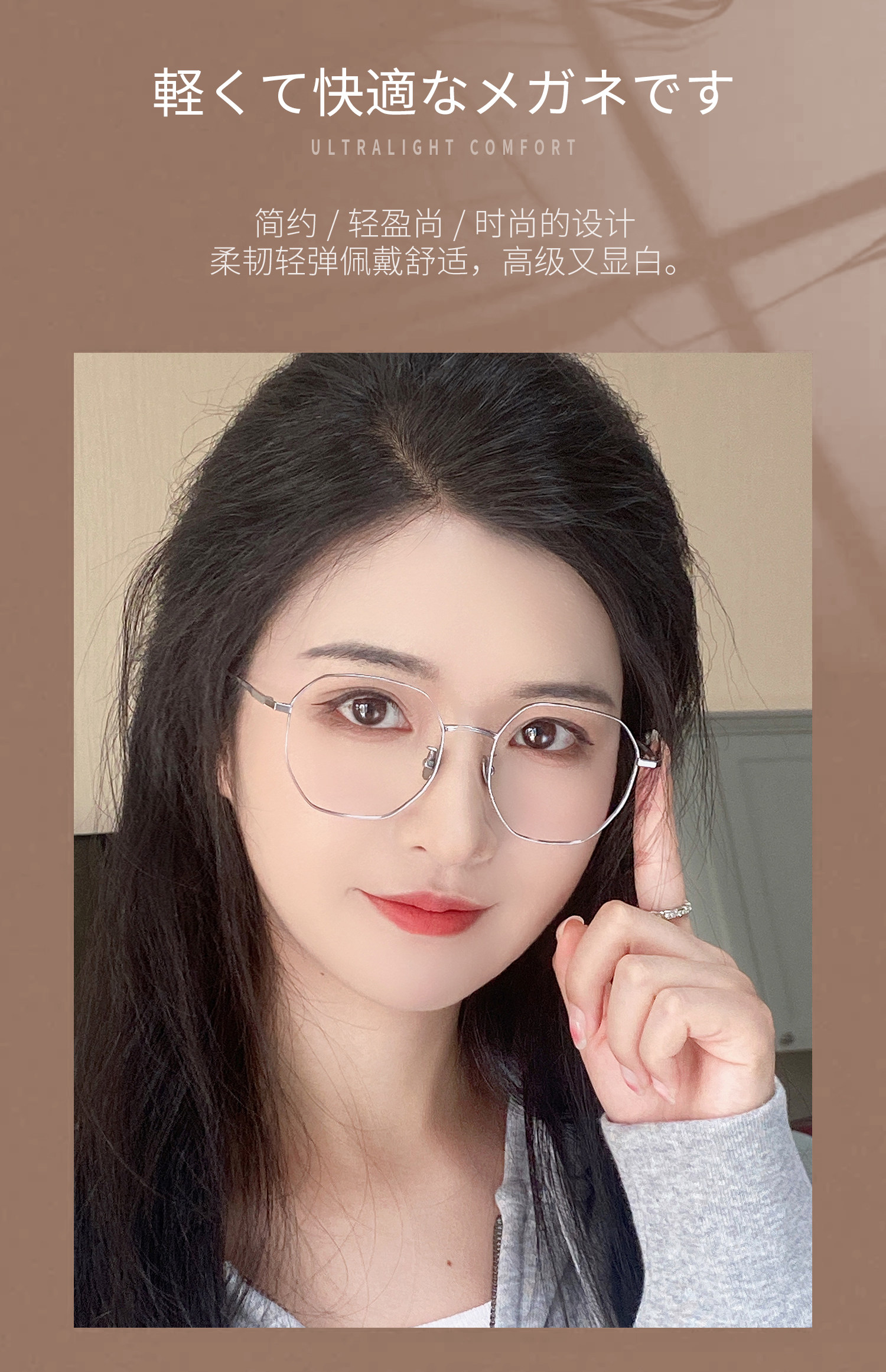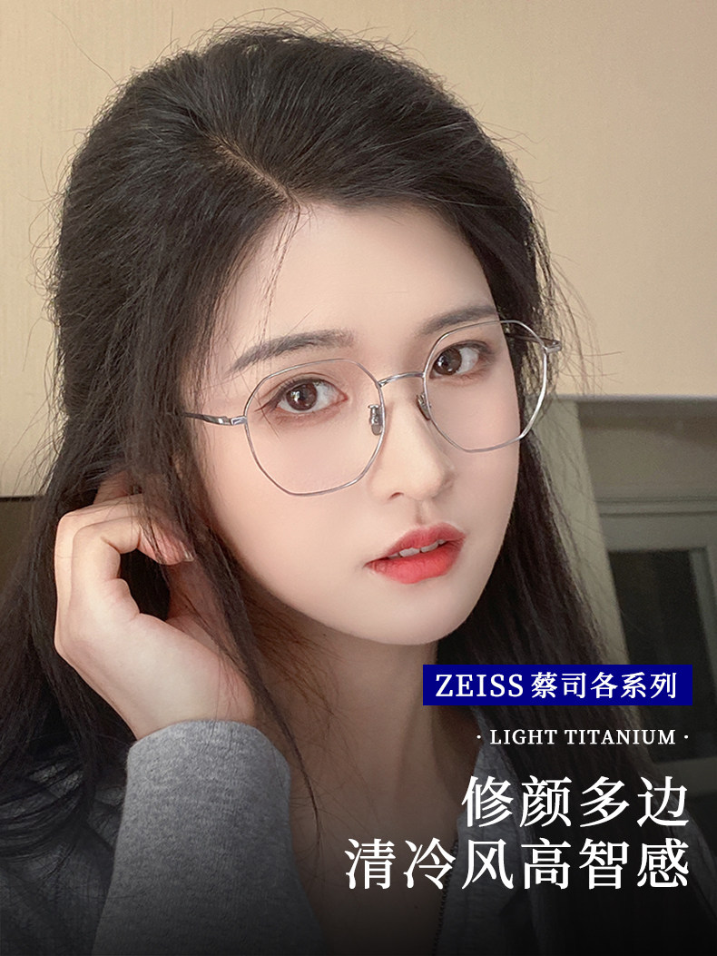 Cool Polygonal Pure Titanium Myopia Glasses for Women, Customizable Prescription, Natural Look, Face-Slimming Frame, Korean Style