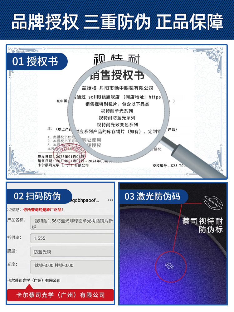 Lens Refractive Index Officially Authorized, Authentic and Guaranteed, Laser Anti-Counterfeiting