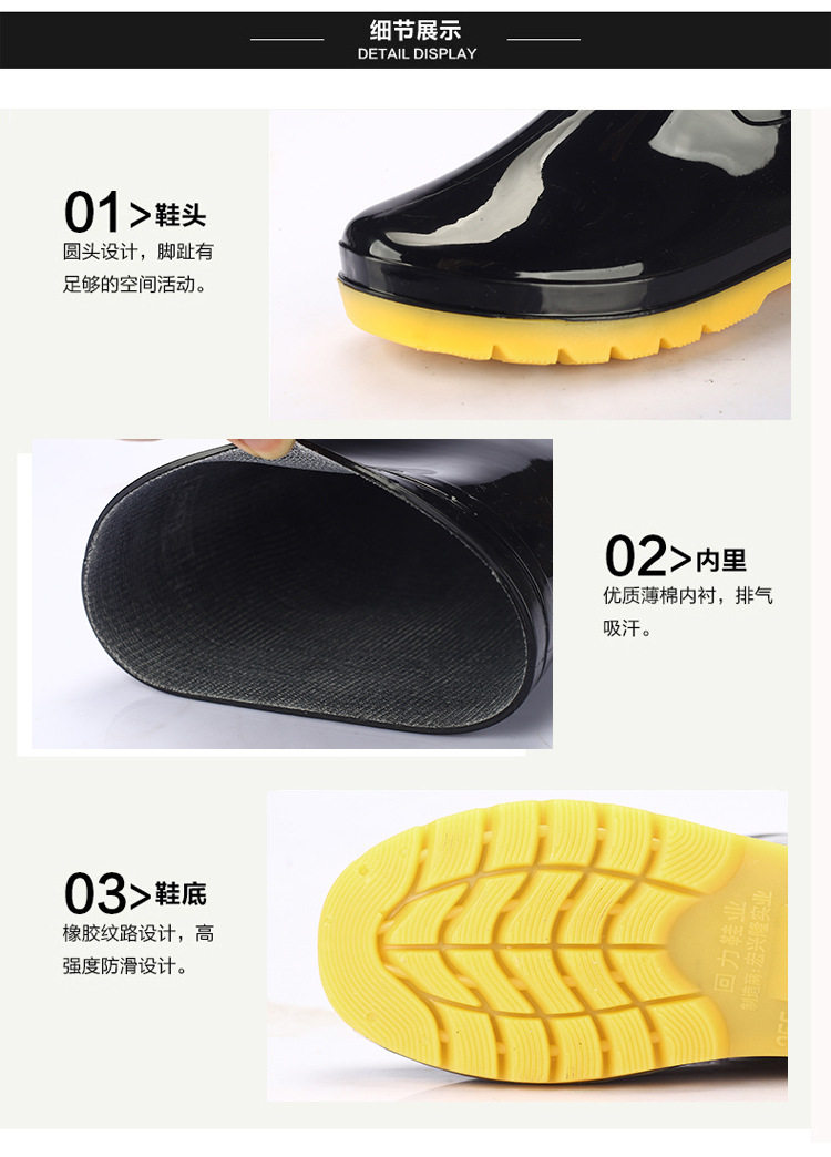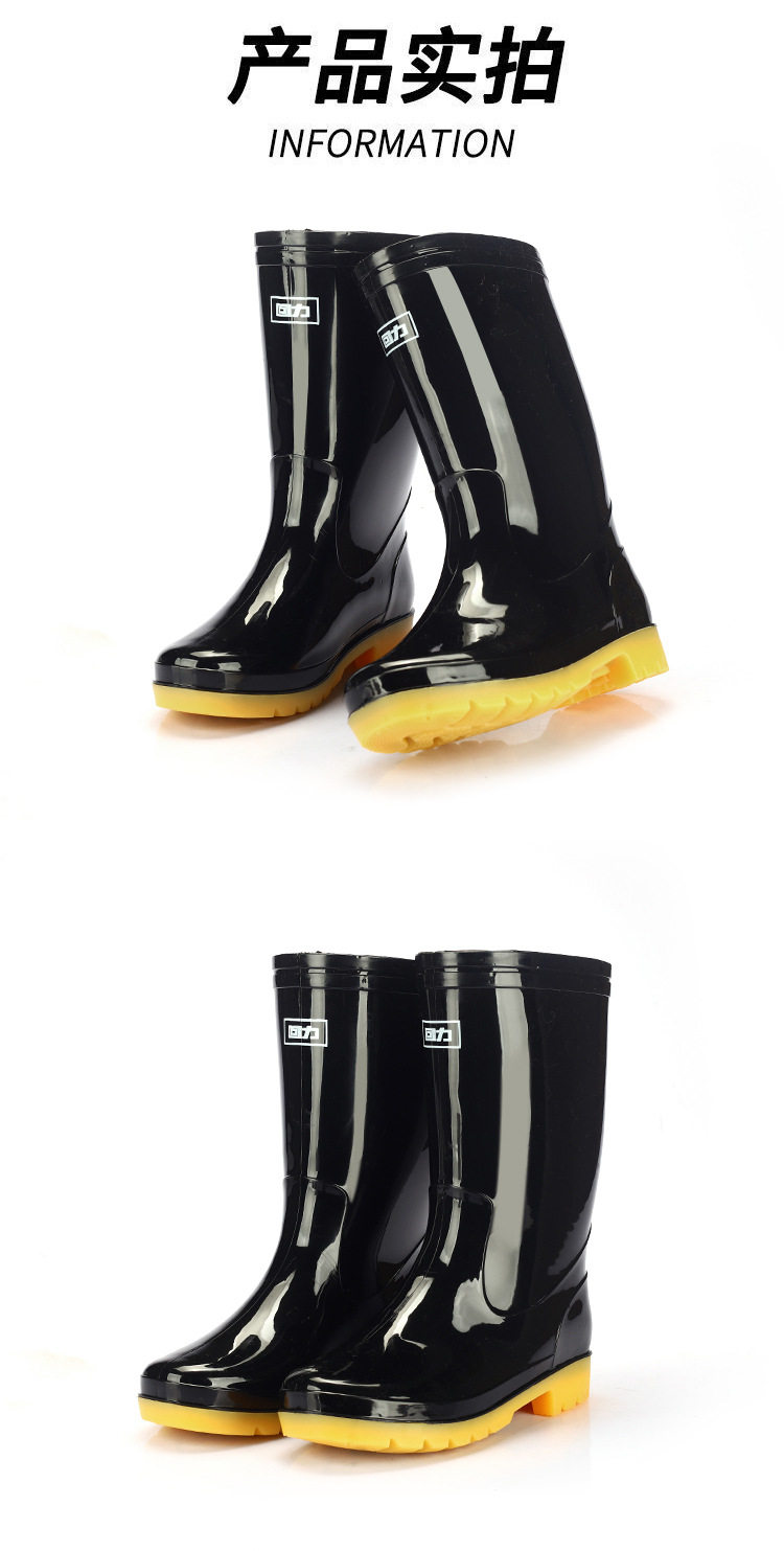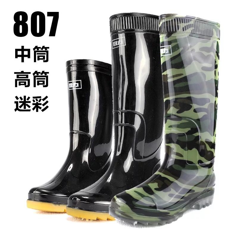 回力雨鞋807高筒雨靴男款中帮防水防滑耐磨劳保胶鞋黑色水鞋