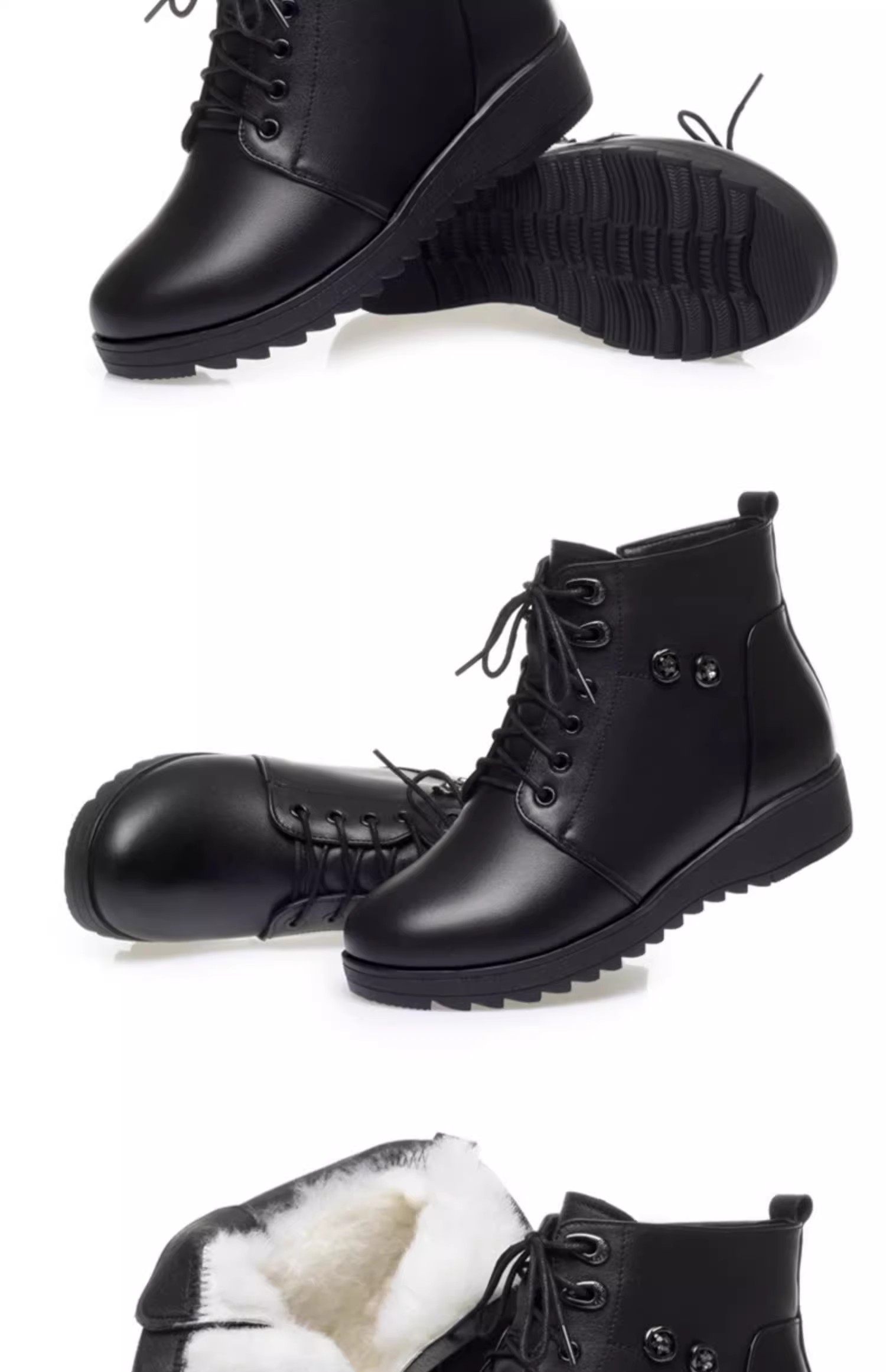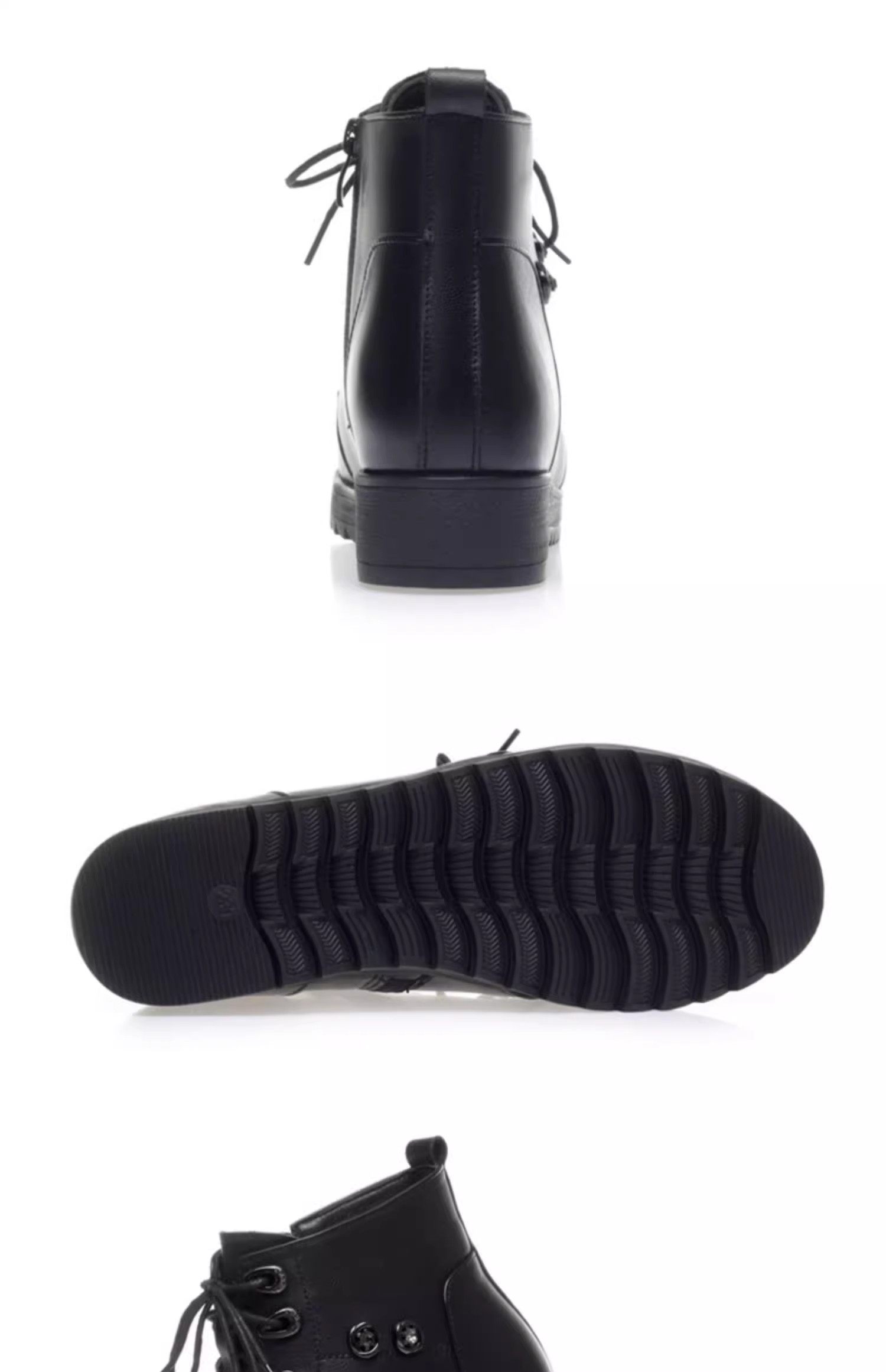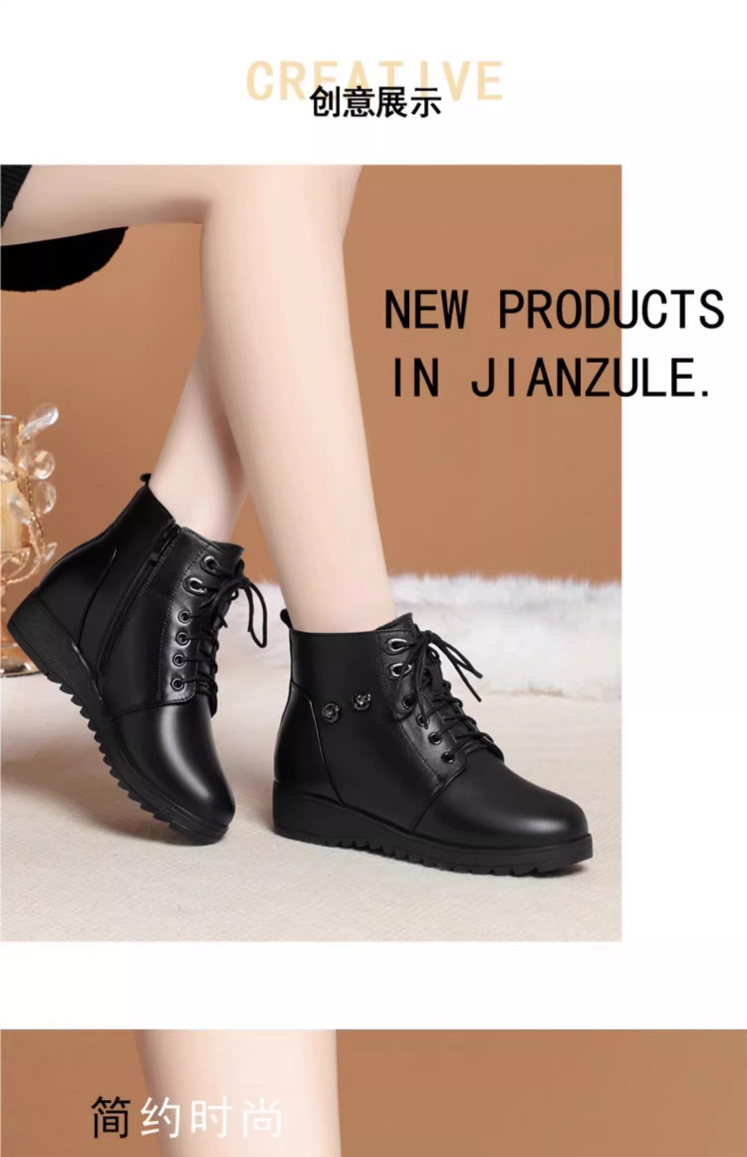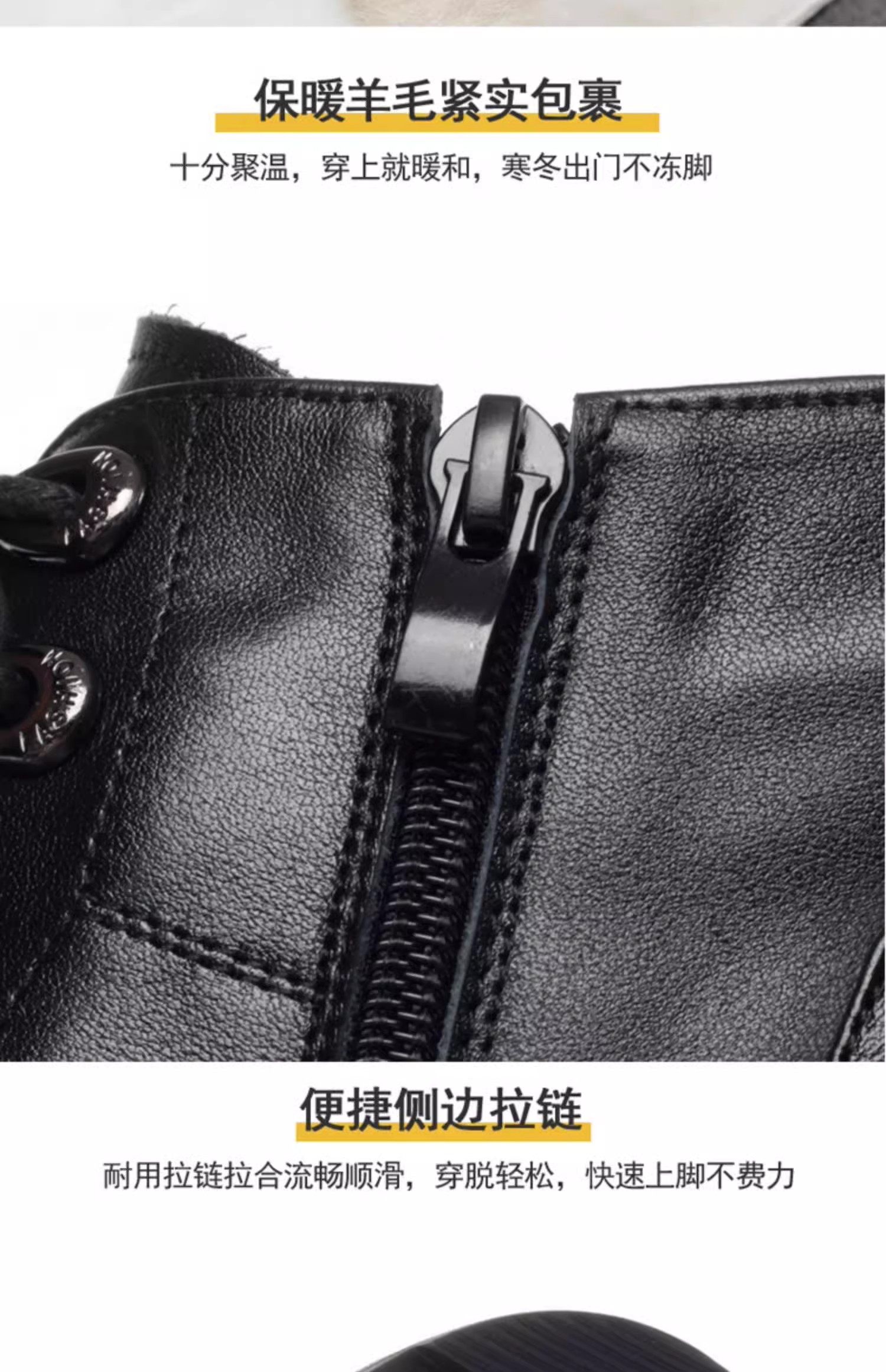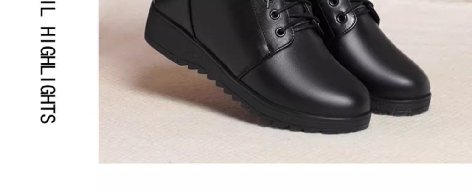 2025 Winter New Style Genuine Leather Short Boots for Women, Large Size Flat Mom Shoes, Soft Sole Fleece-Lined Cotton Shoes, Martin Boots, Leather Shoes