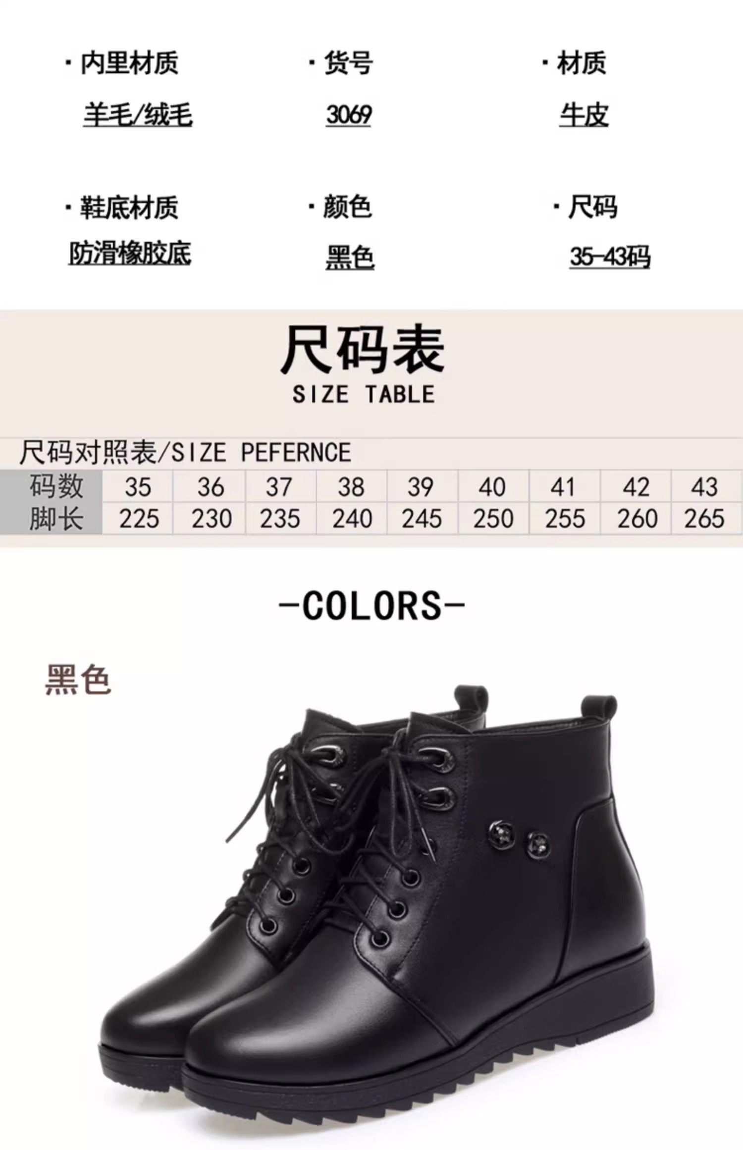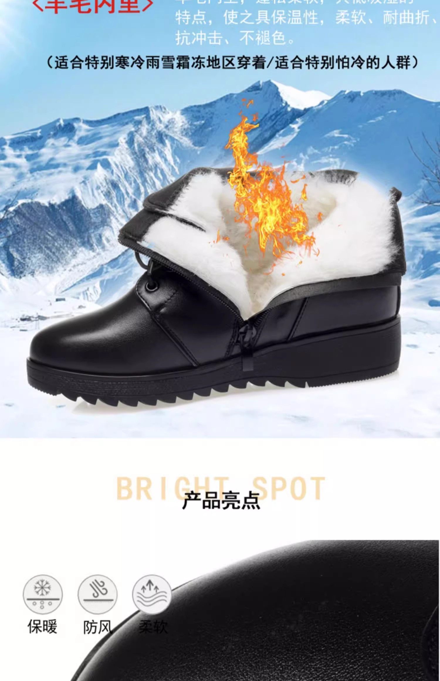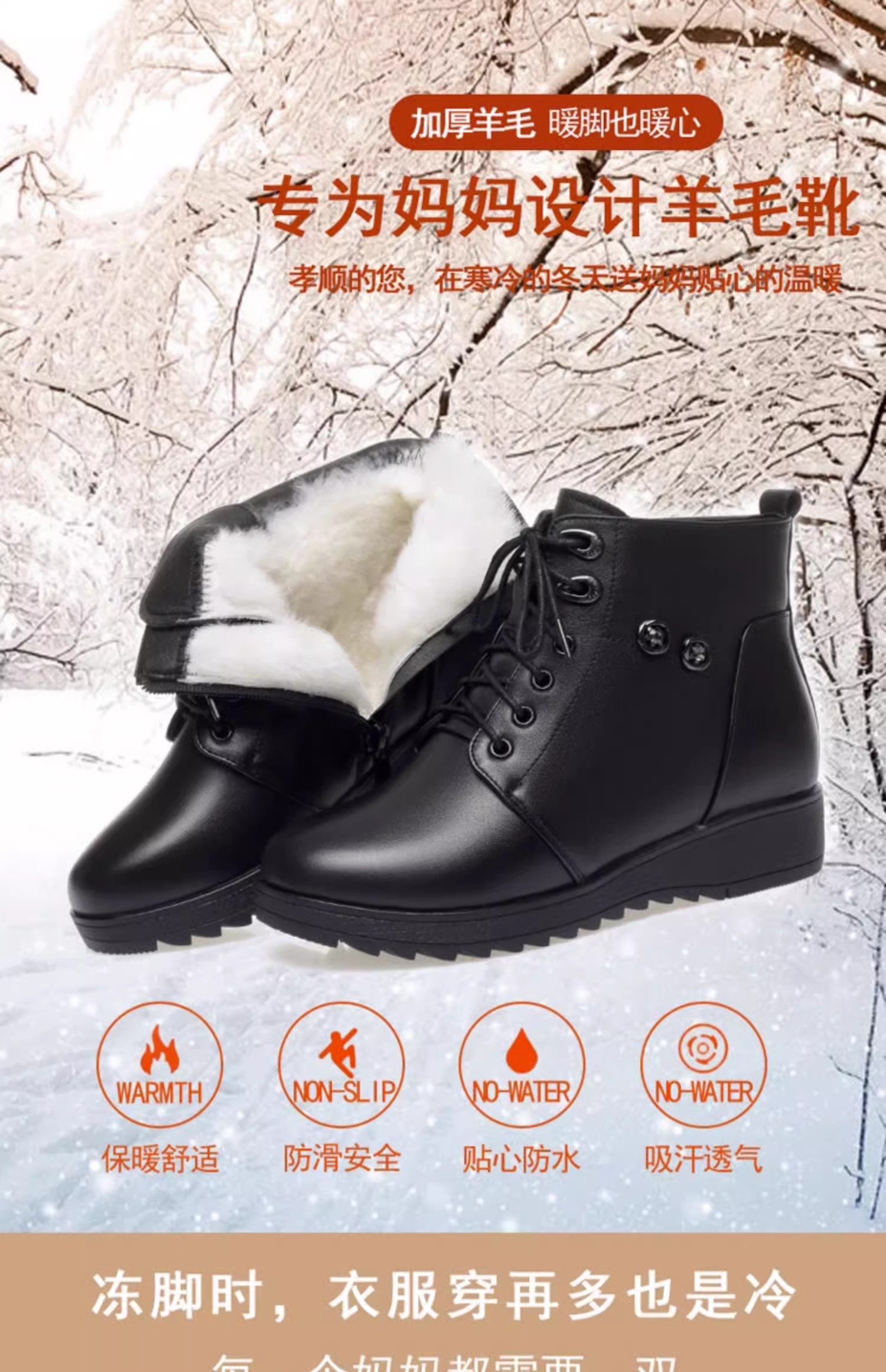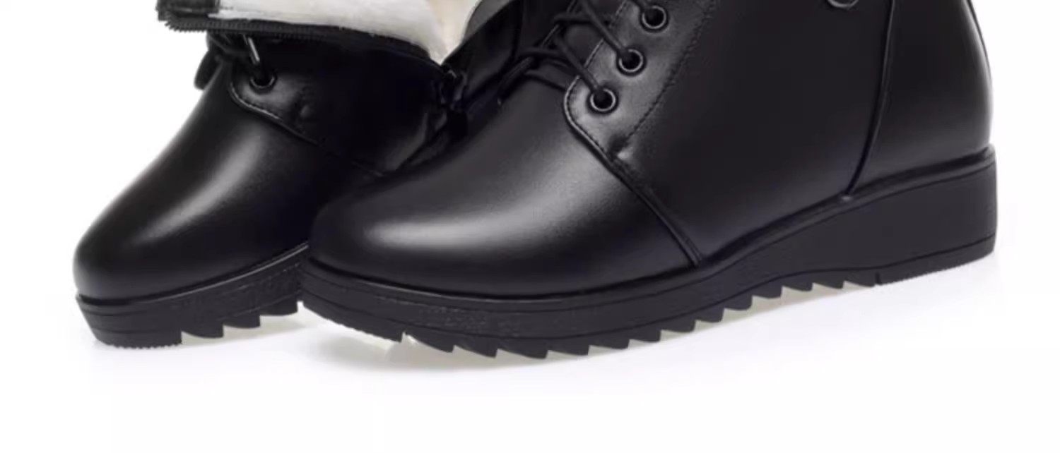 2025 Winter New Style Genuine Leather Short Boots for Women, Large Size Flat Mom Shoes, Soft Sole Fleece-Lined Cotton Shoes, Martin Boots, Leather Shoes