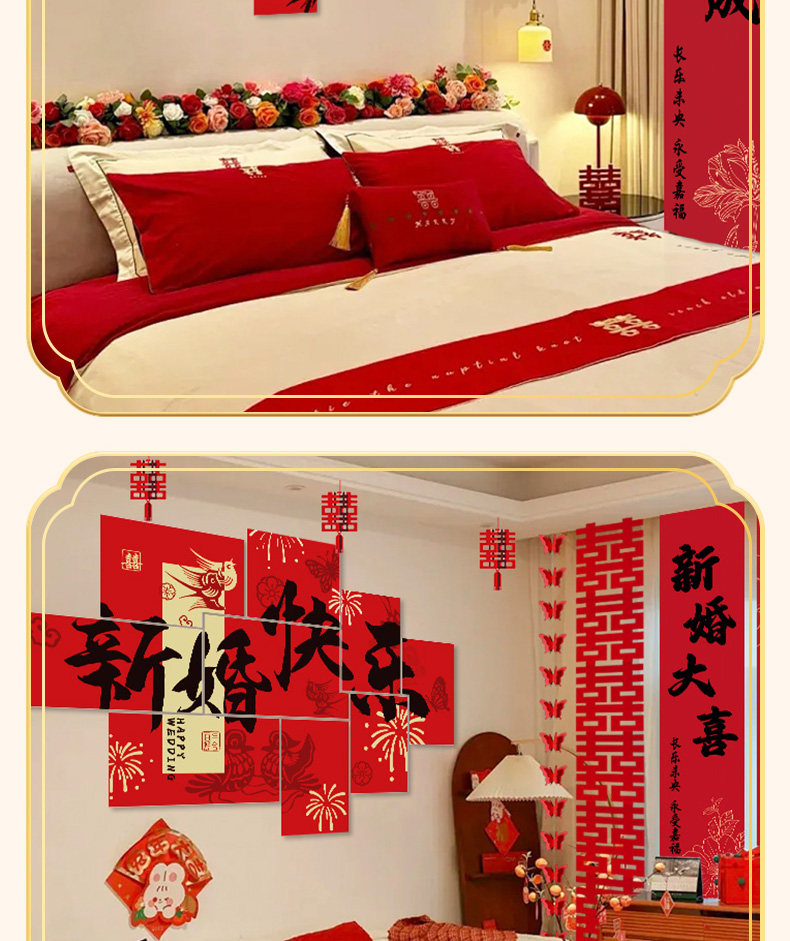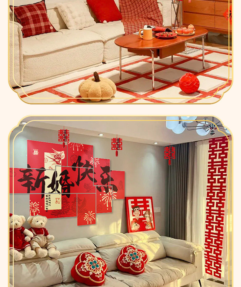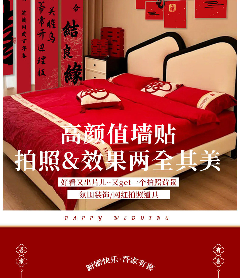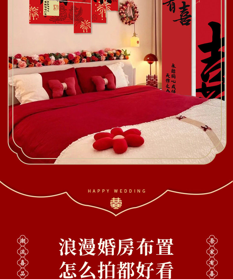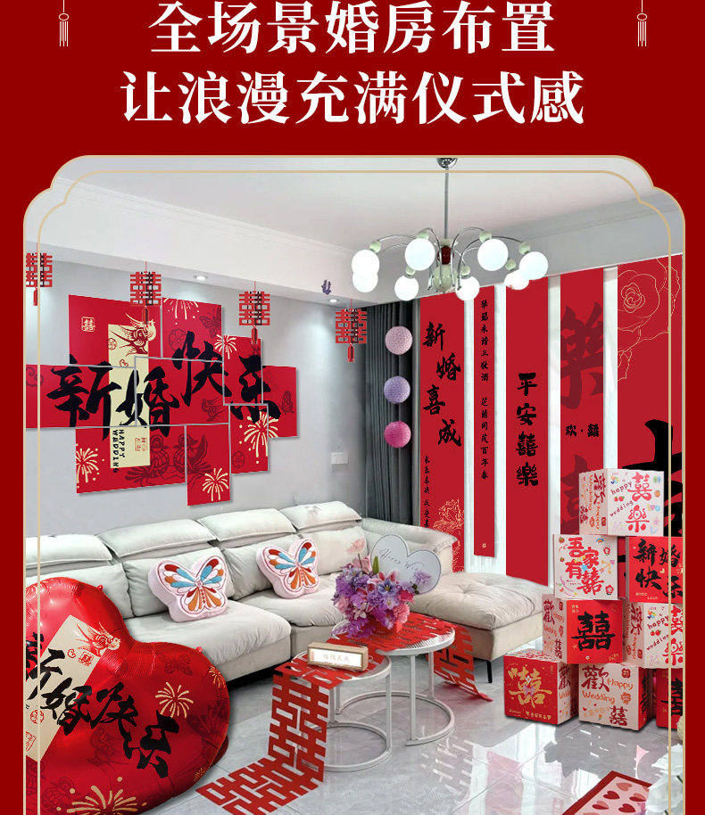 Wedding Decoration, Wedding Room Decoration, New House, Living Room, Sofa, Bedroom, Bedside, Double Happiness Character, Wedding Supplies for the Bride and Groom