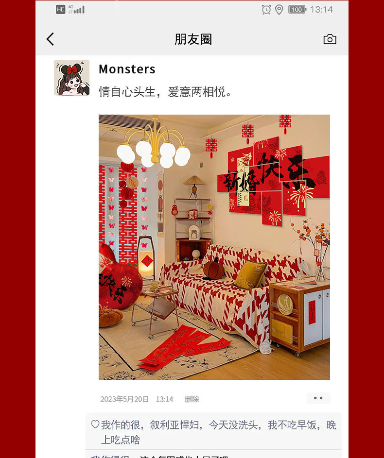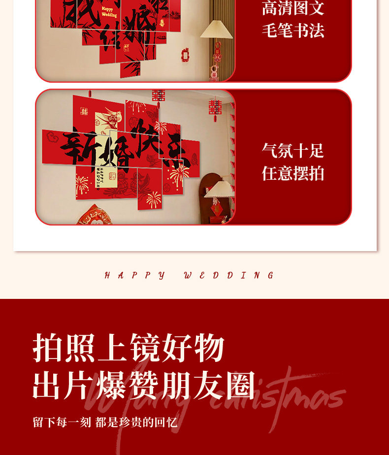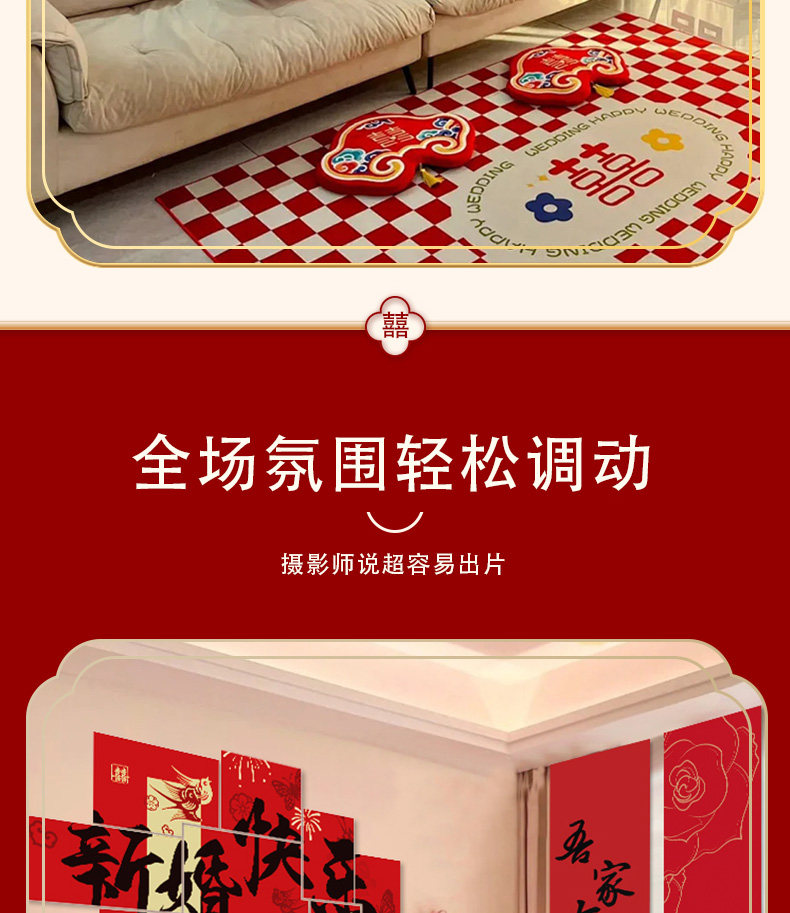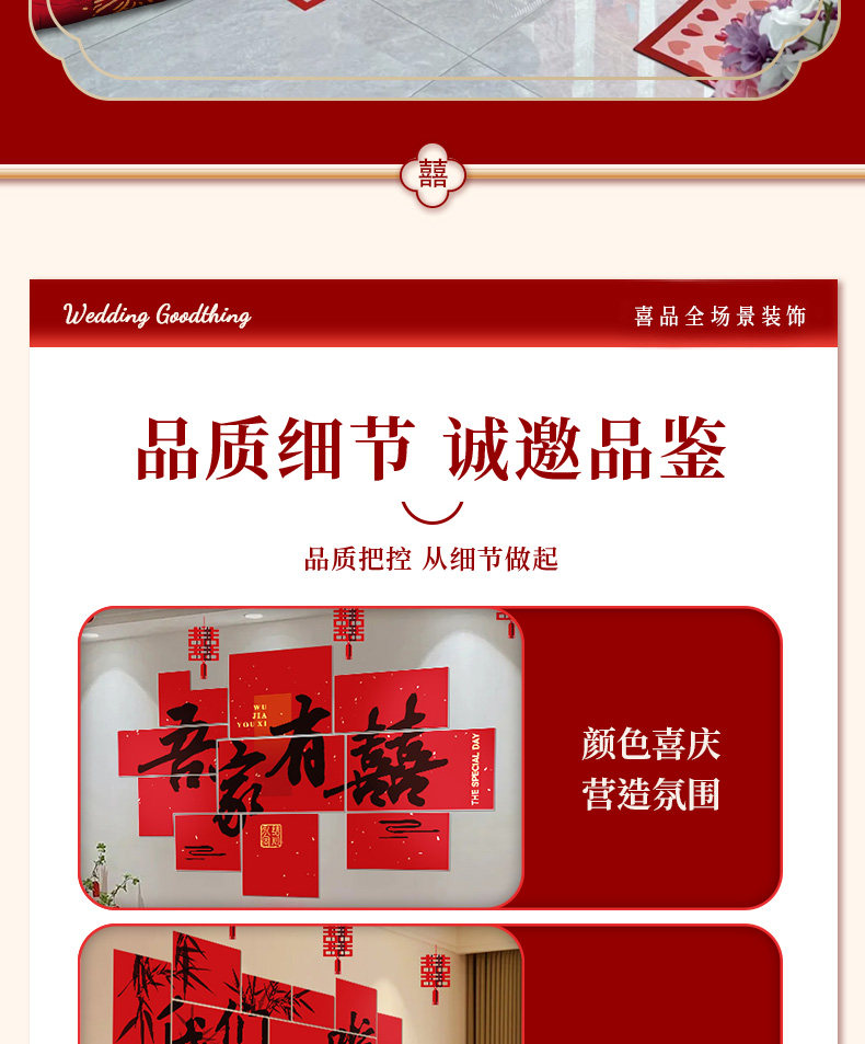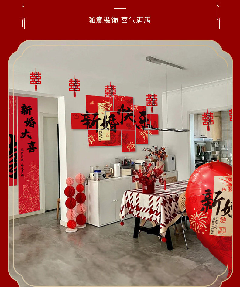 Wedding Decoration, Wedding Room Decoration, New House, Living Room, Sofa, Bedroom, Bedside, Double Happiness Character, Wedding Supplies for the Bride and Groom