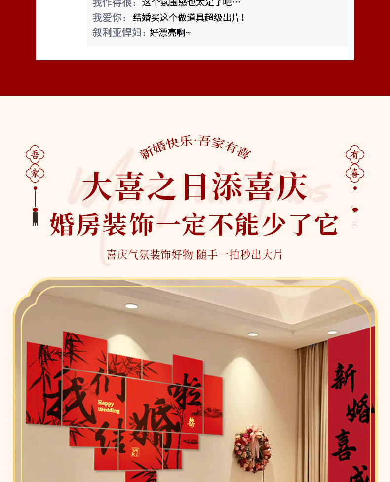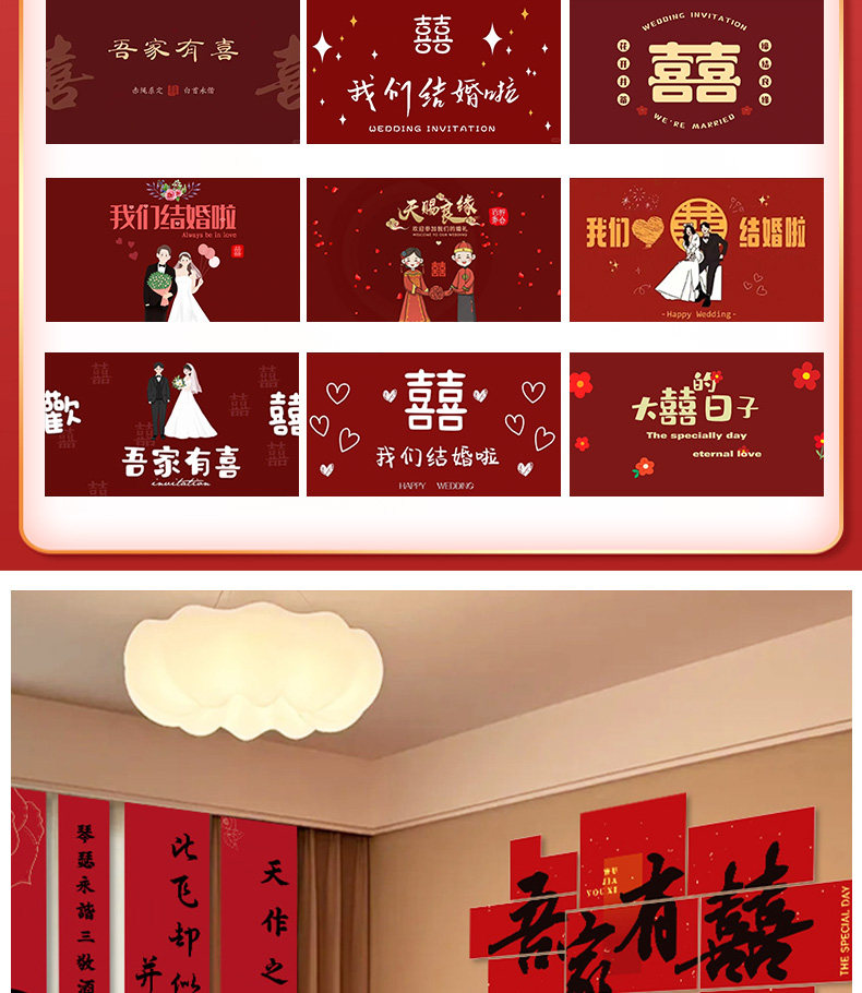 Color Classification Bedroom Decoration Set 1 My Family Is Beautiful,Bedroom Decoration Set 2: Happy Wedding,Bedroom Decoration Set Three: We Are Getting Married,Bedroom Decoration Set Four: My Family Is Happy,Bedroom Decoration Set Five: We Are Getting Married,Bedroom Decor Set Six: the Ultimate in Romance,Living Room Decoration Set Seven: Happy Wedding,Living Room Decor Set Eight: "Double Happiness" for Our Home,Living Room Decor Set Nine: We'Re Married!,Living Room Decor Set Ten: Auspicious Blessings,Living Room Decoration Set 11: We Are Getting Married,Living Room Decor Set Twelve: the Ultimate Romantic Getaway