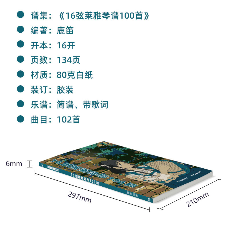 100 Lyra-Klavierpartituren für 16 Saiten, einfache Notation, Einzelnotenversion und harmonische Version, fortgeschrittenes Lehrbuch für Anfänger