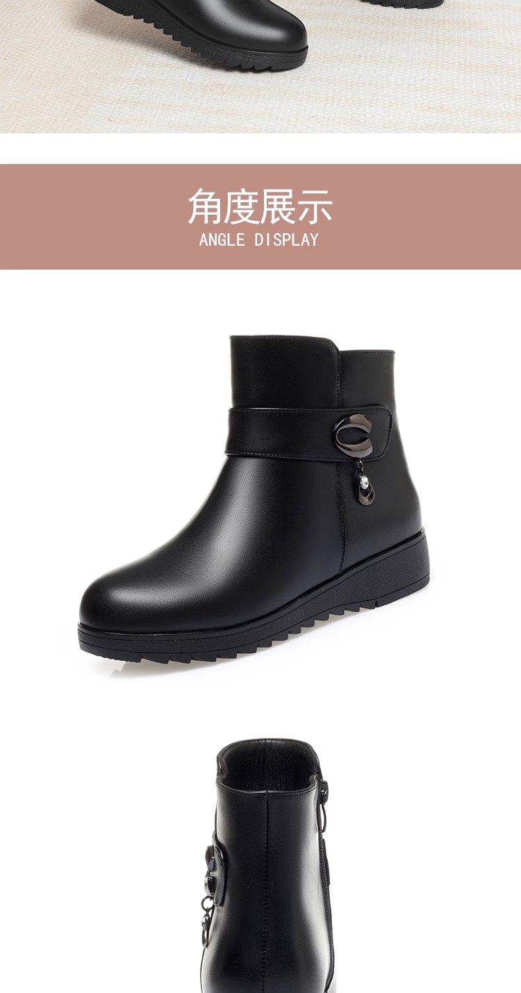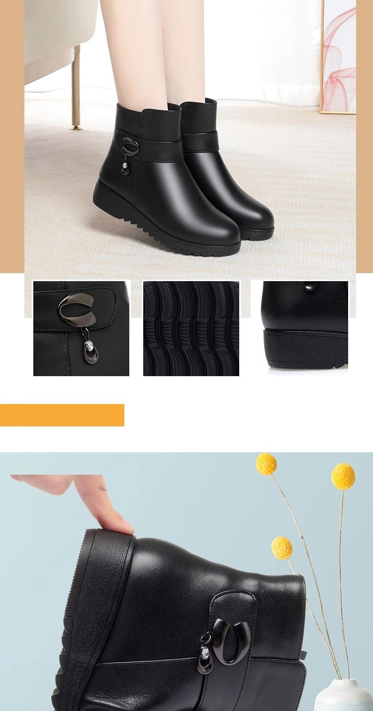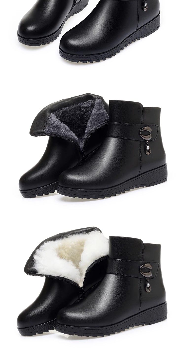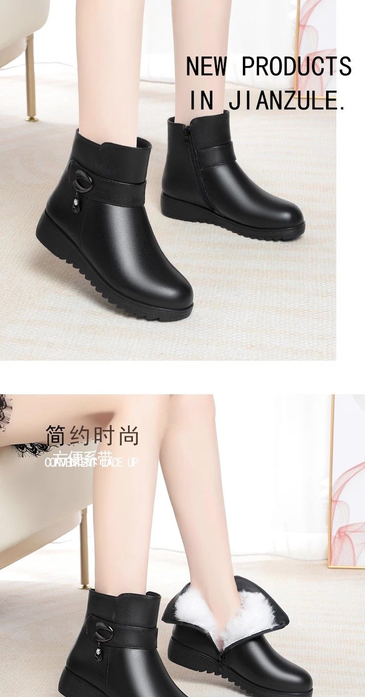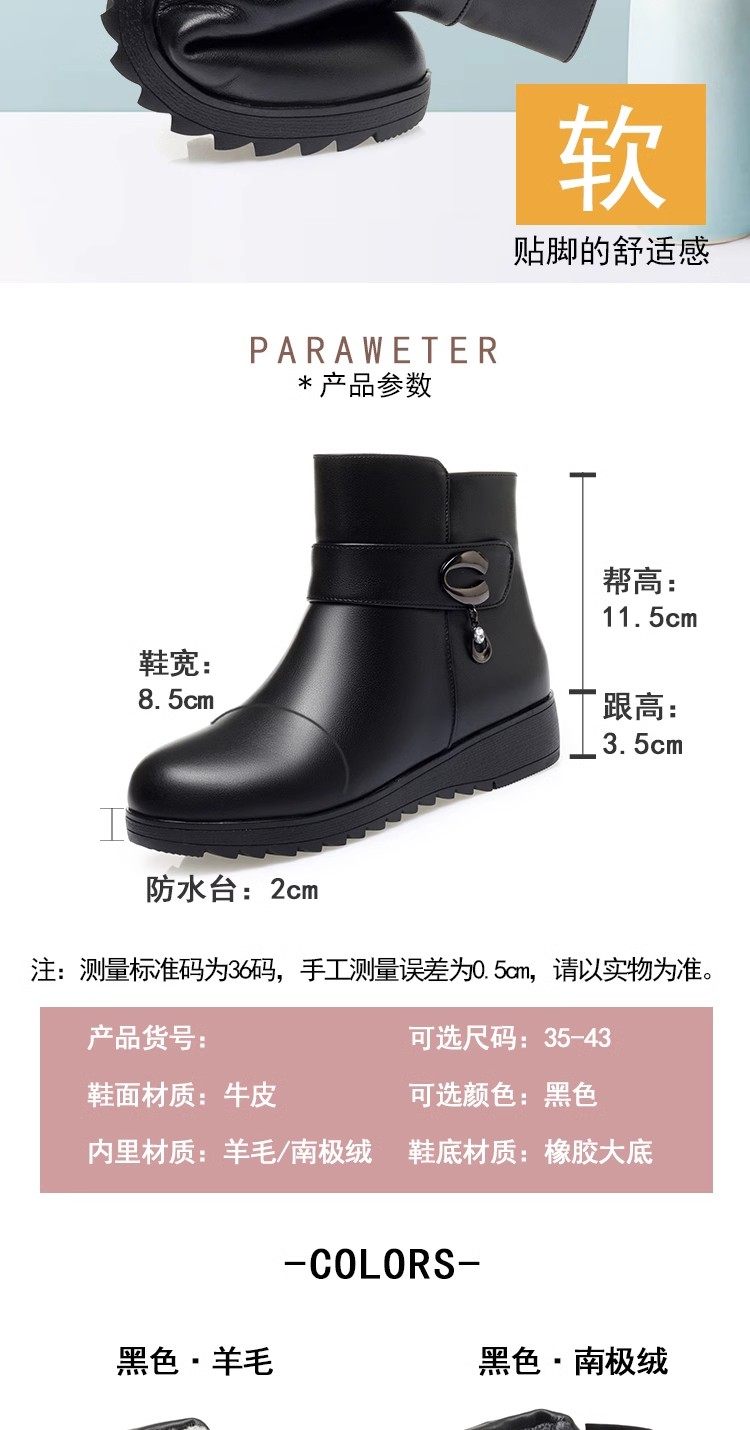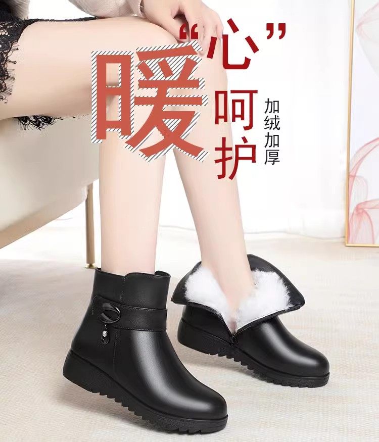 真皮短靴女冬季妈妈棉鞋加绒加厚羊毛中老年防滑软底靴子保暖皮鞋