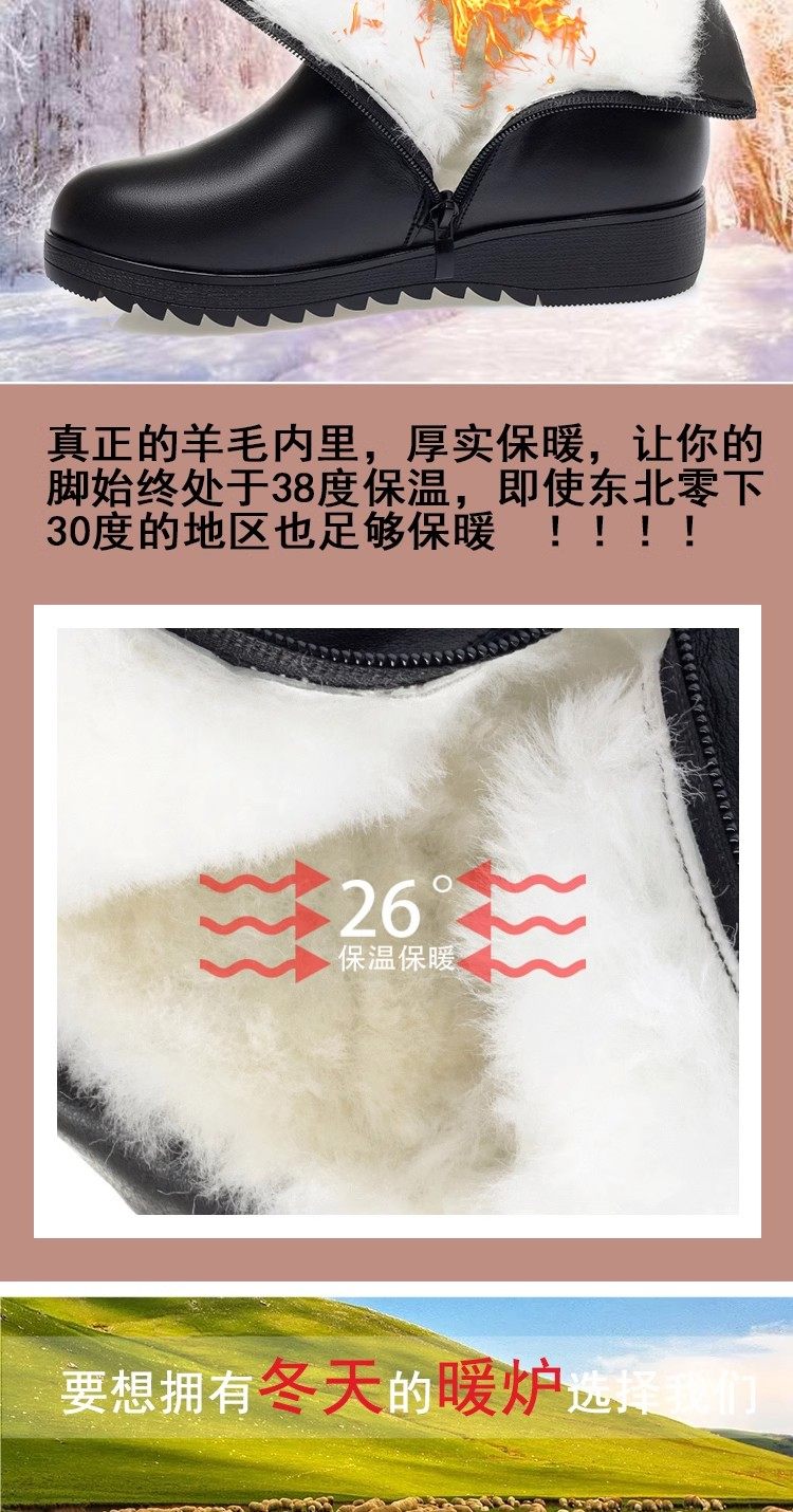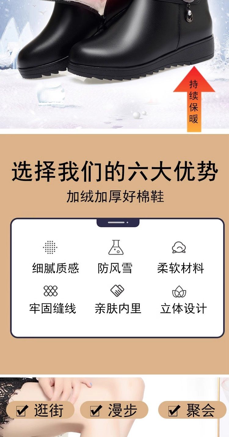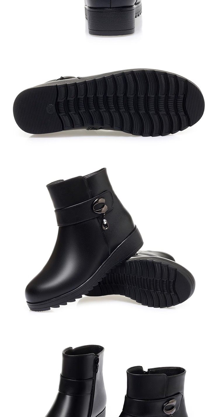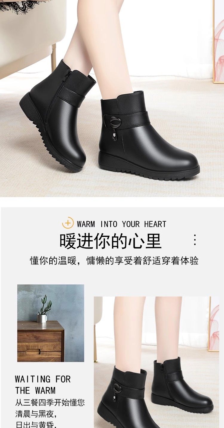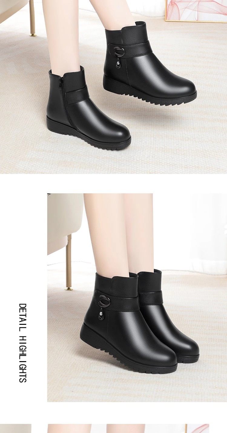 真皮短靴女冬季妈妈棉鞋加绒加厚羊毛中老年防滑软底靴子保暖皮鞋
