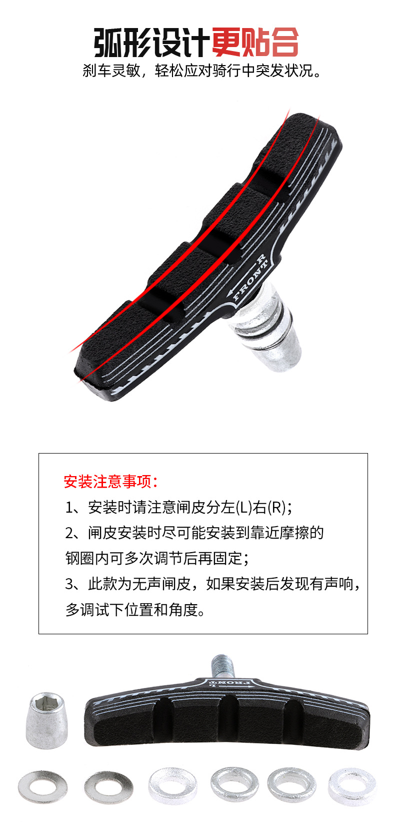 自行车刹车片V刹车皮橡胶刹车块耐磨闸皮公路山地车单车配件大全