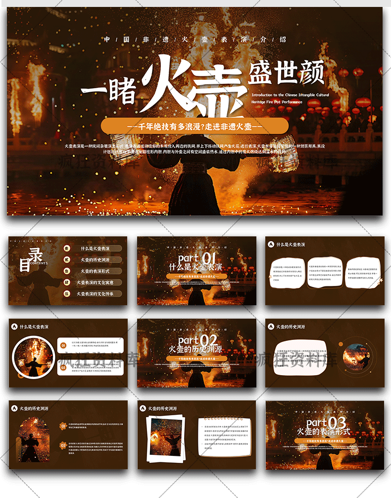 Modèle PPT de pot à feu du patrimoine culturel immatériel produit fini introduction à l'héritage culturel traditionnel introduction à la science didacticiels culturels promotion des connaissances