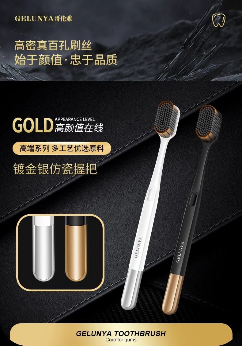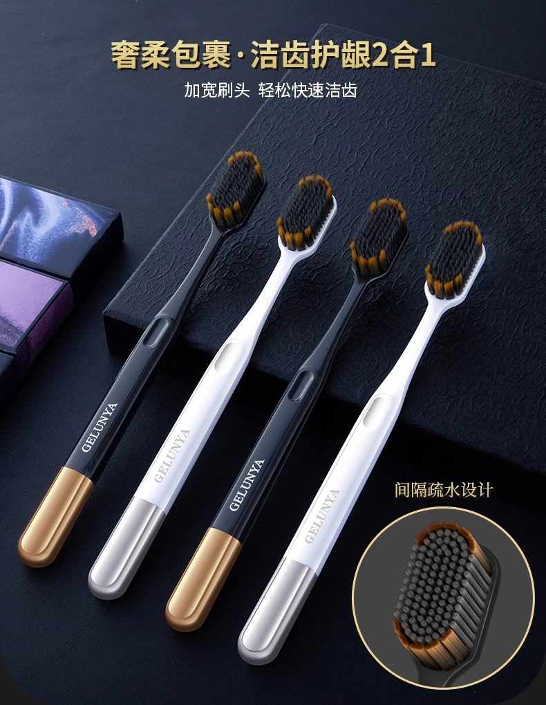 牙刷软毛成人高档轻奢家用细丝高密百孔宽头情侣家庭装男女士专用