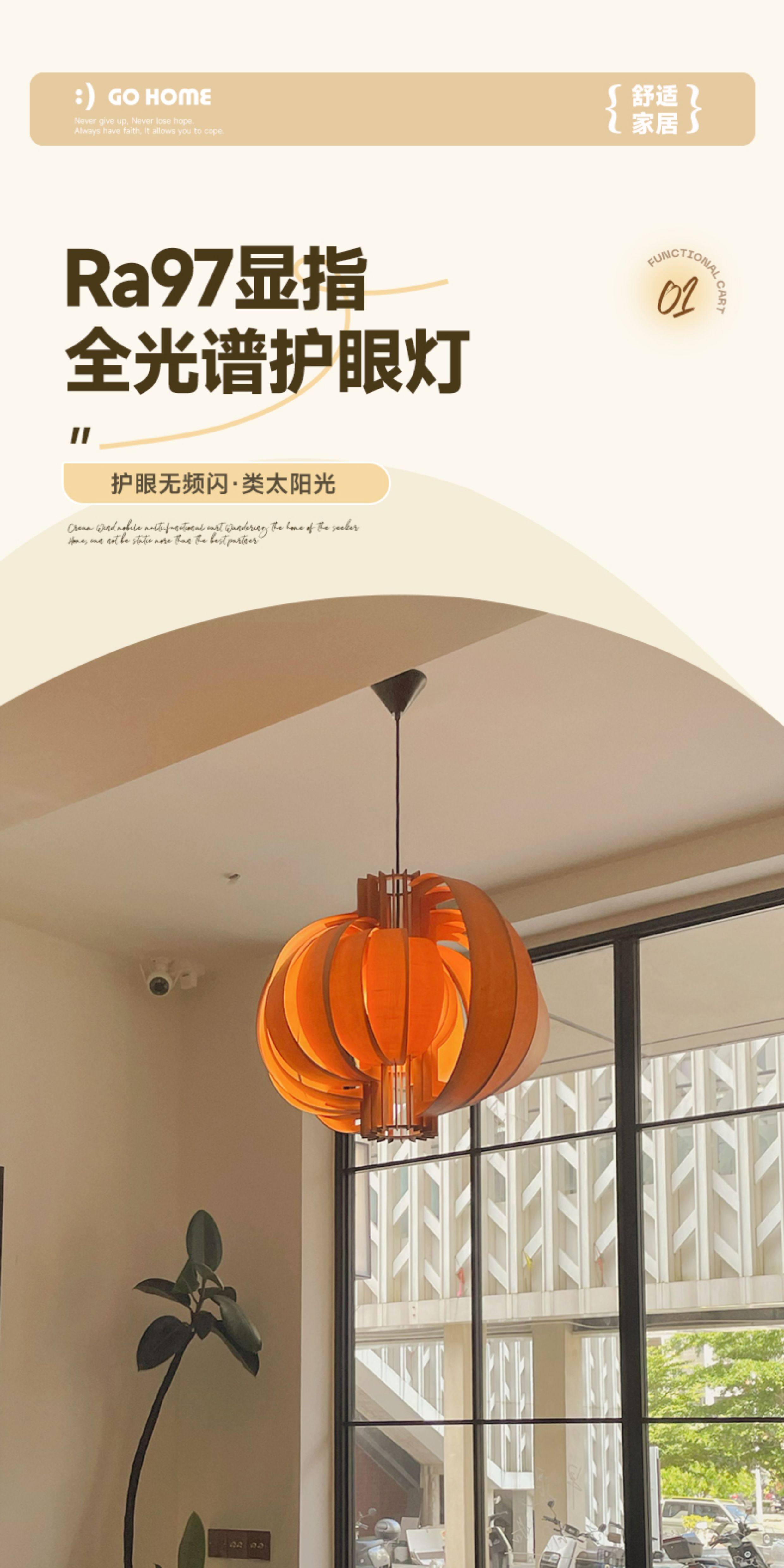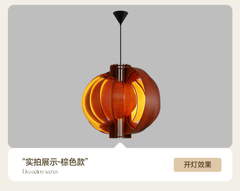 Guigeng Lighting Nanyang Vintage Wood Style Moon Pendant Lamp Vintage Restaurant Study Bedroom Bar Pumpkin Lamp