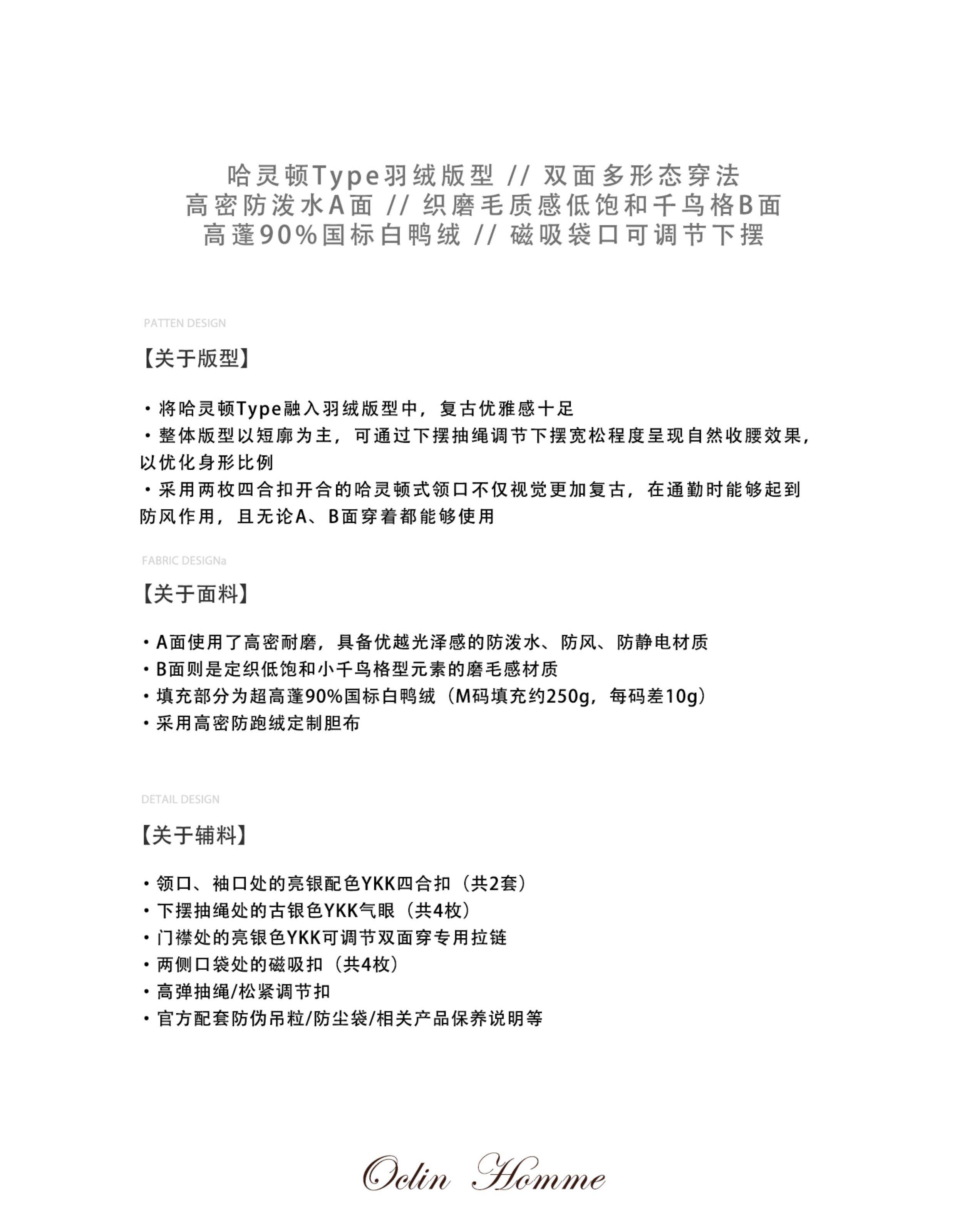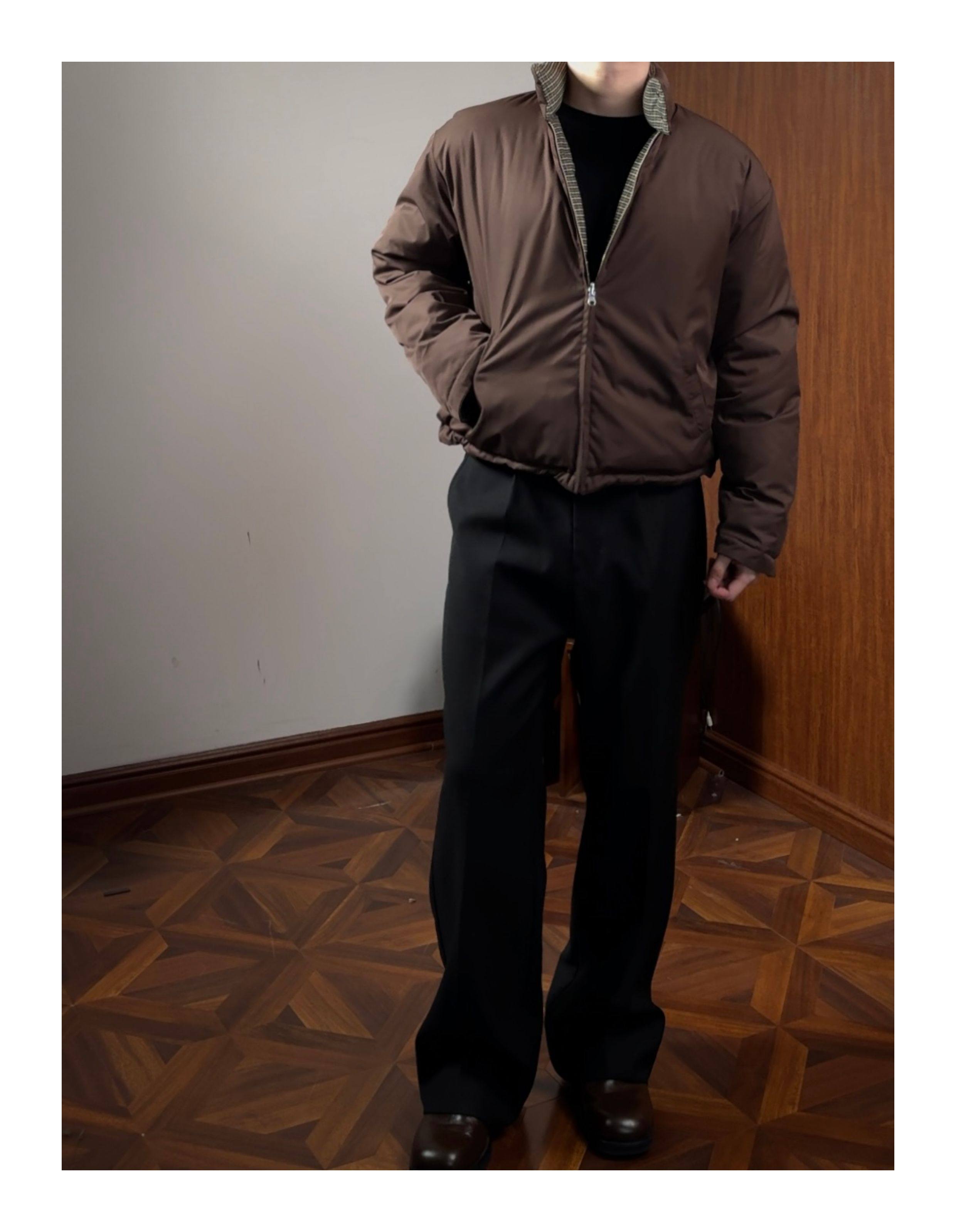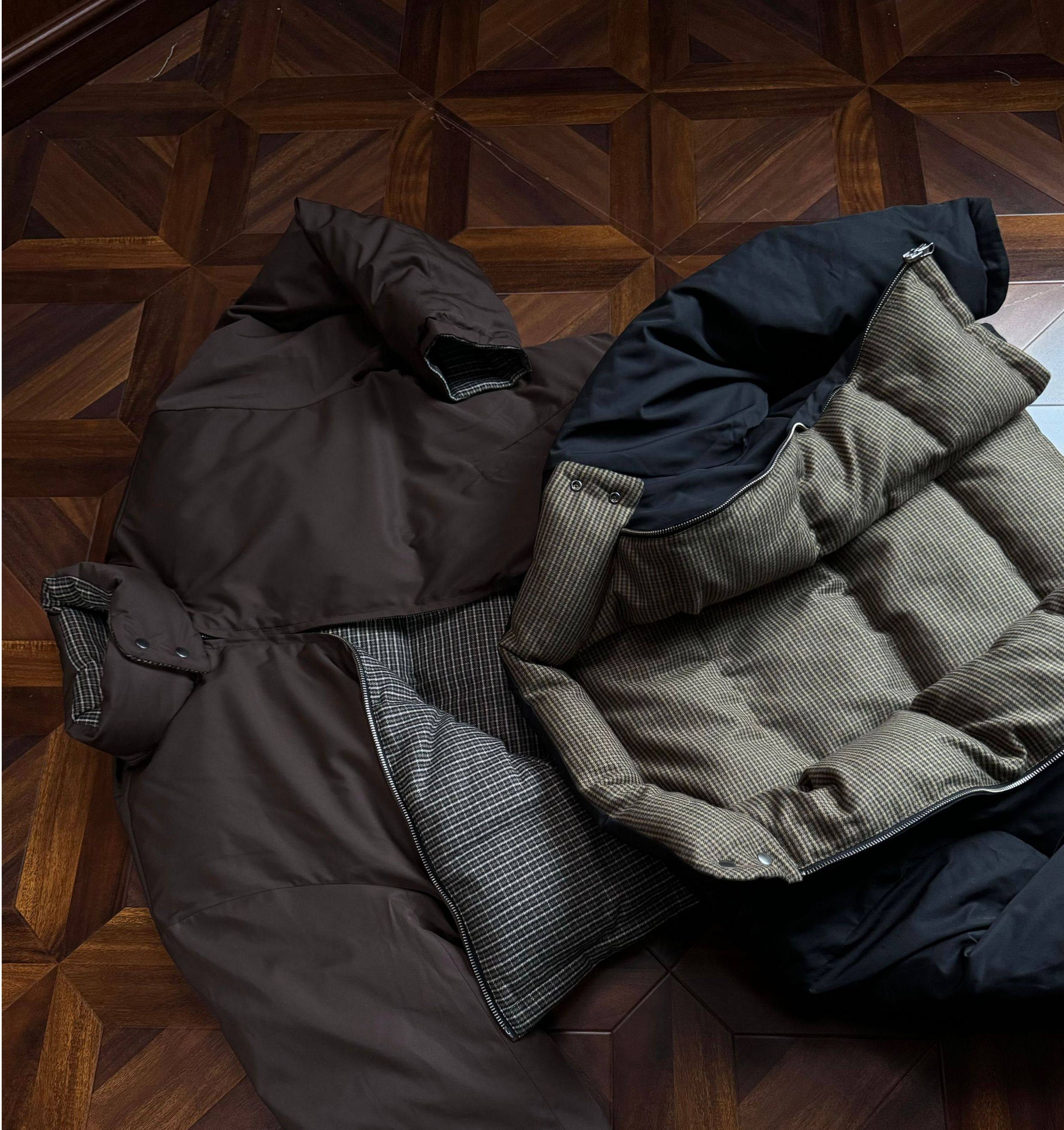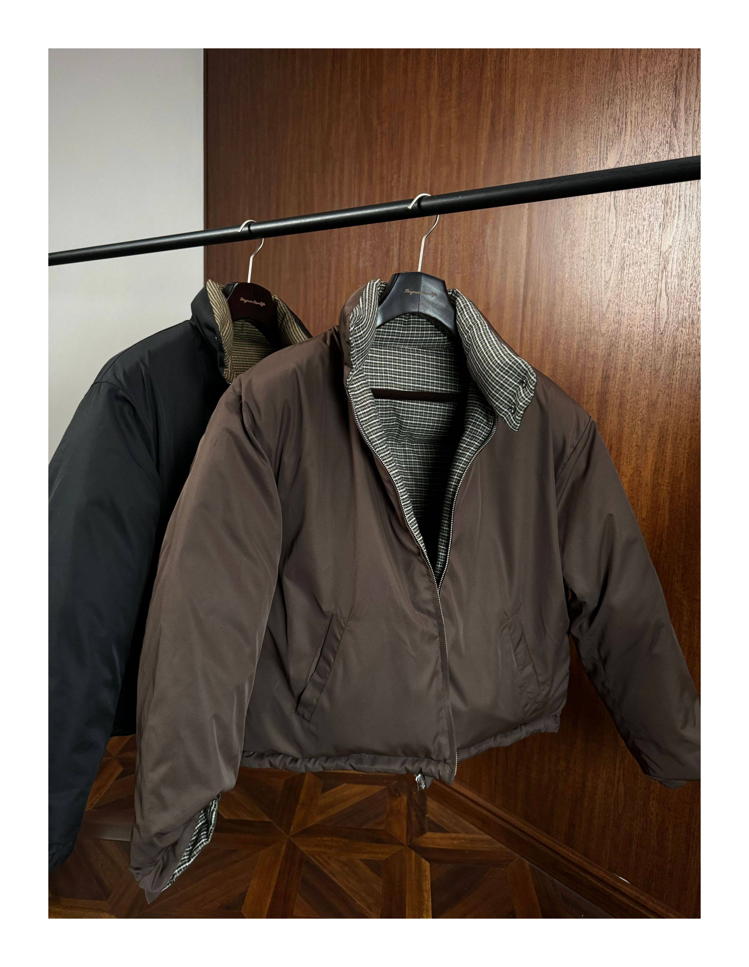 Oclin Houndstooth Reversible Harrington down Jacket, Short and Wide, Multi-Form, Water-Repellent, Brushed Feel, 90% White Duck down
