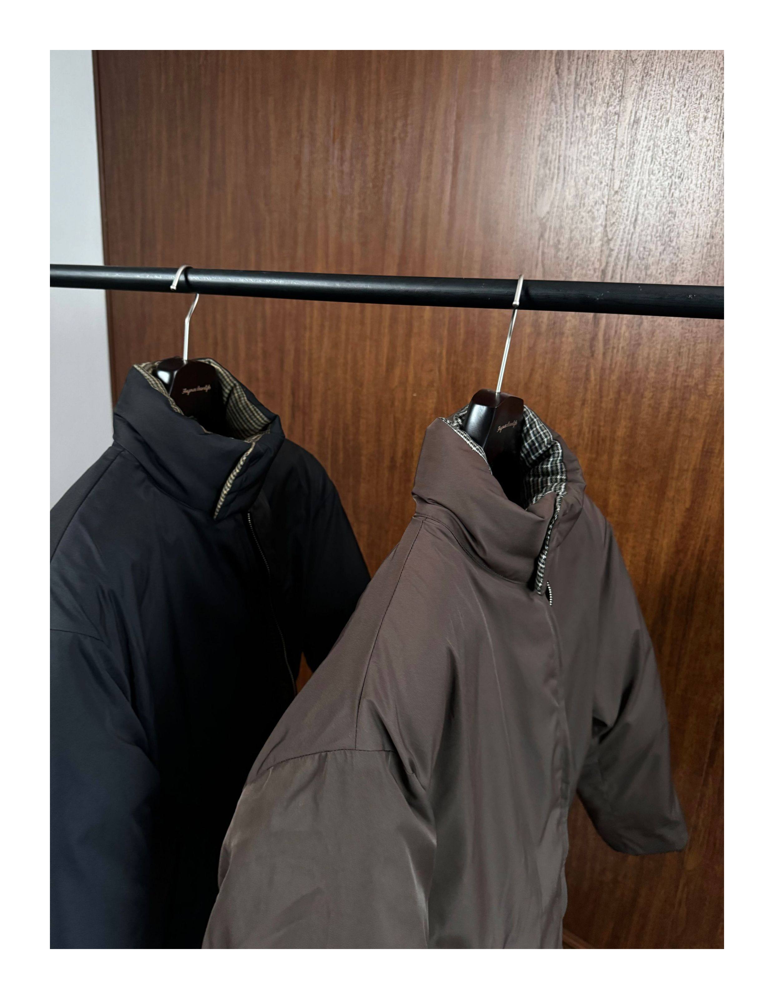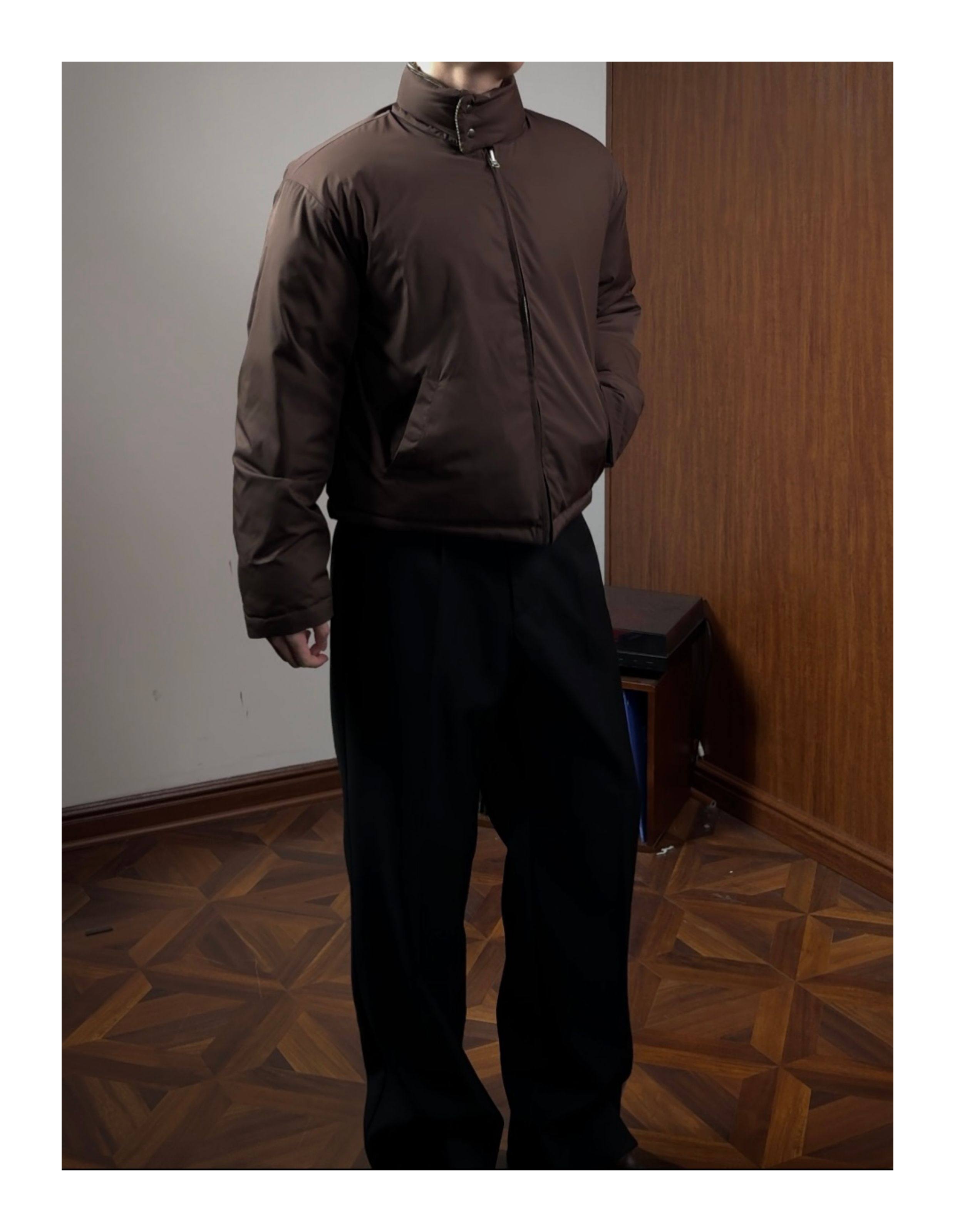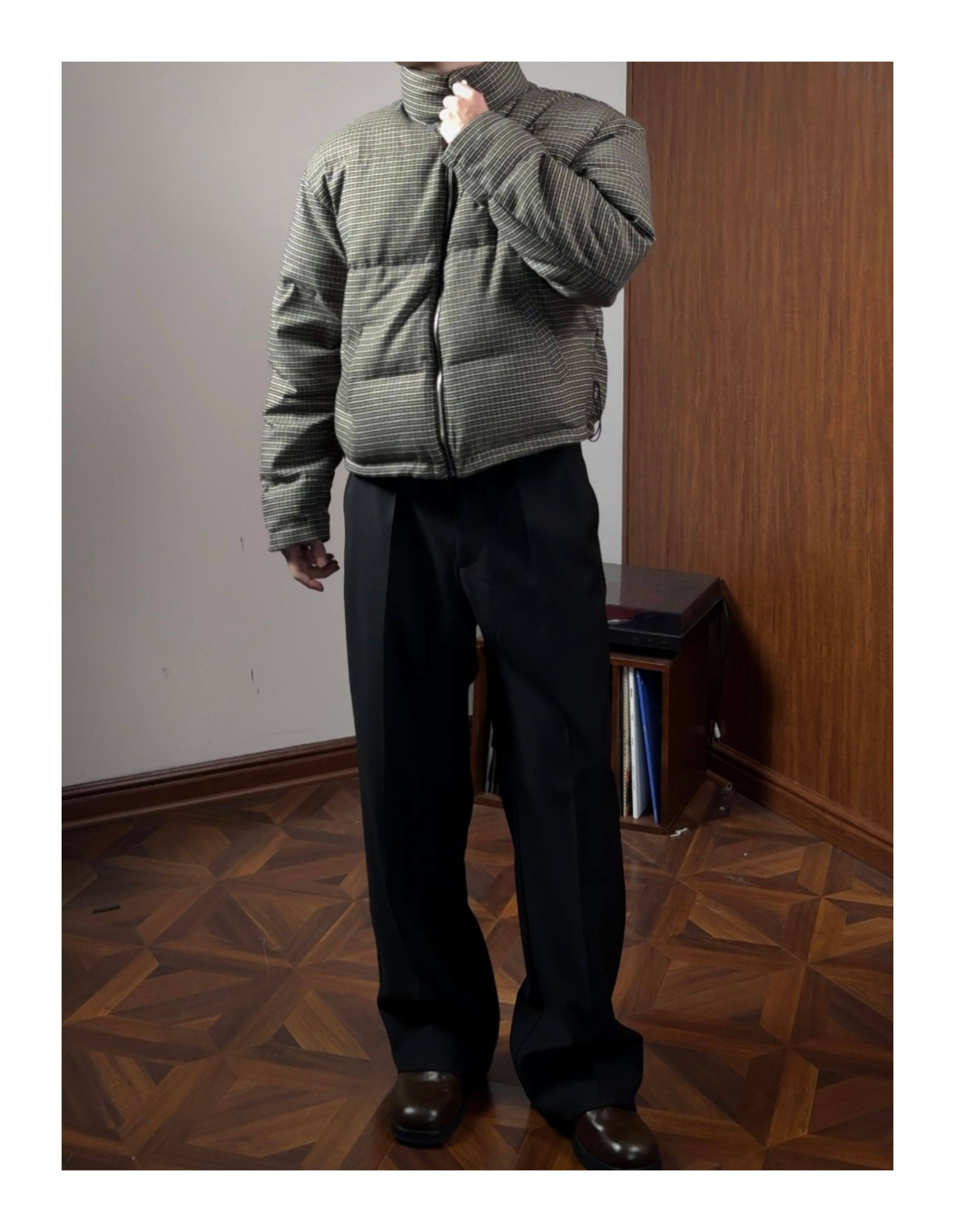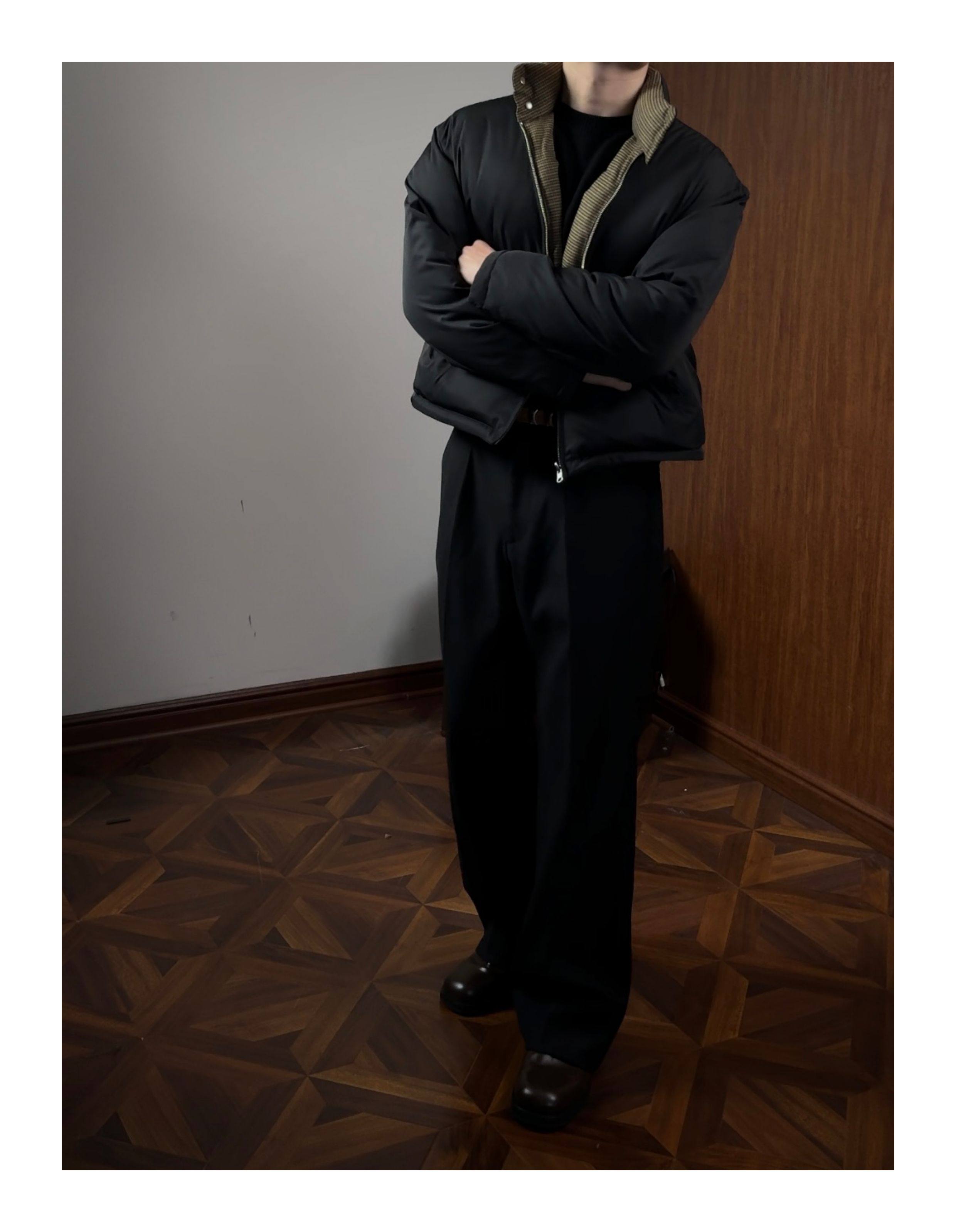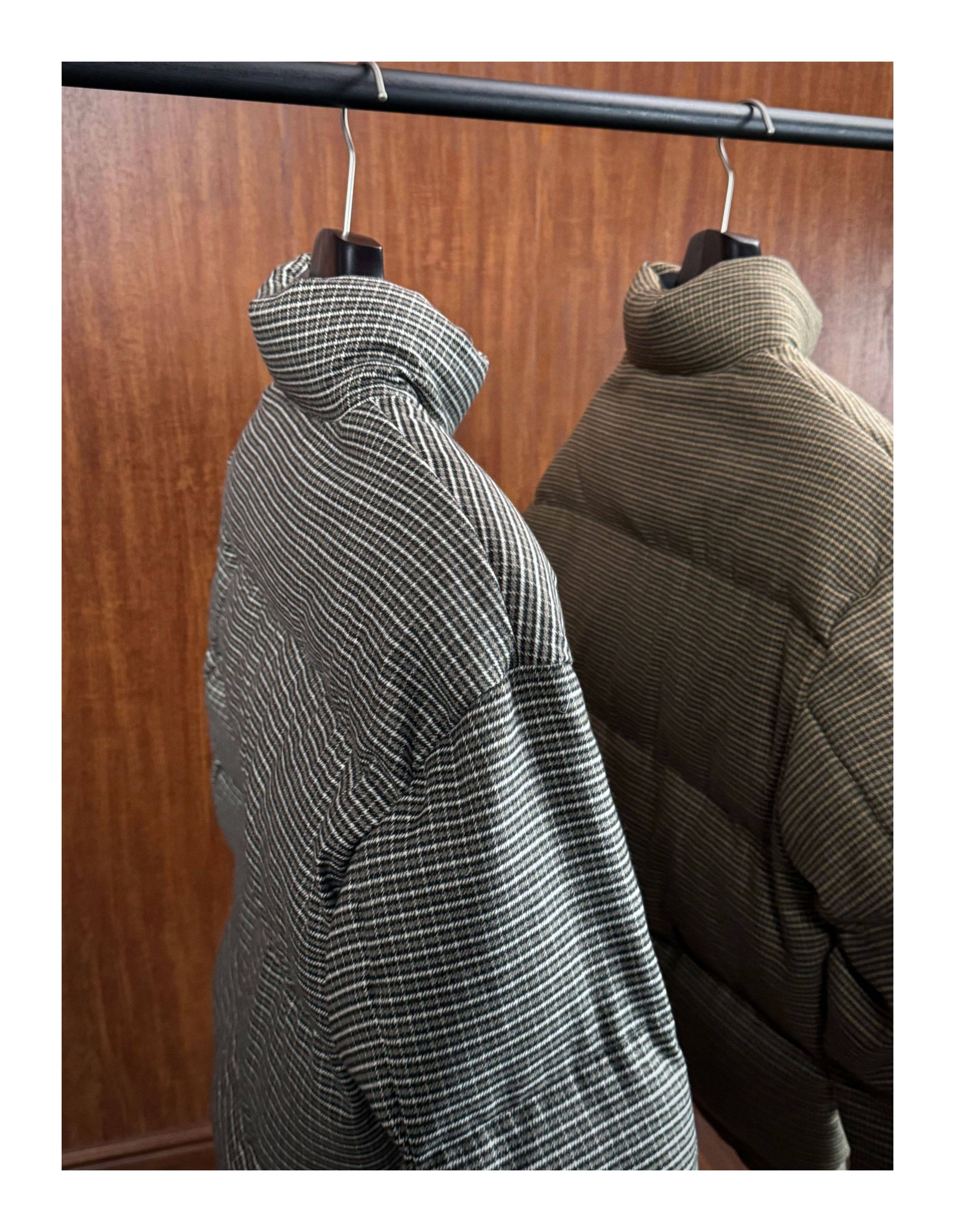 Oclin Houndstooth Reversible Harrington down Jacket, Short and Wide, Multi-Form, Water-Repellent, Brushed Feel, 90% White Duck down