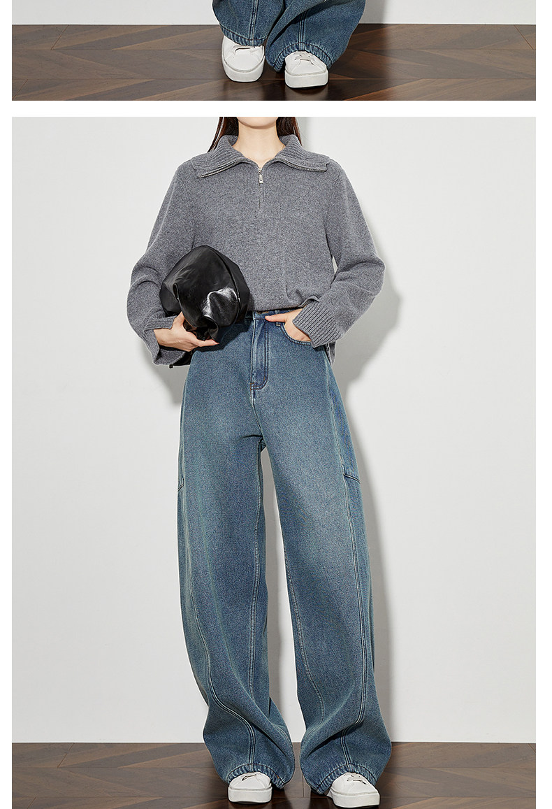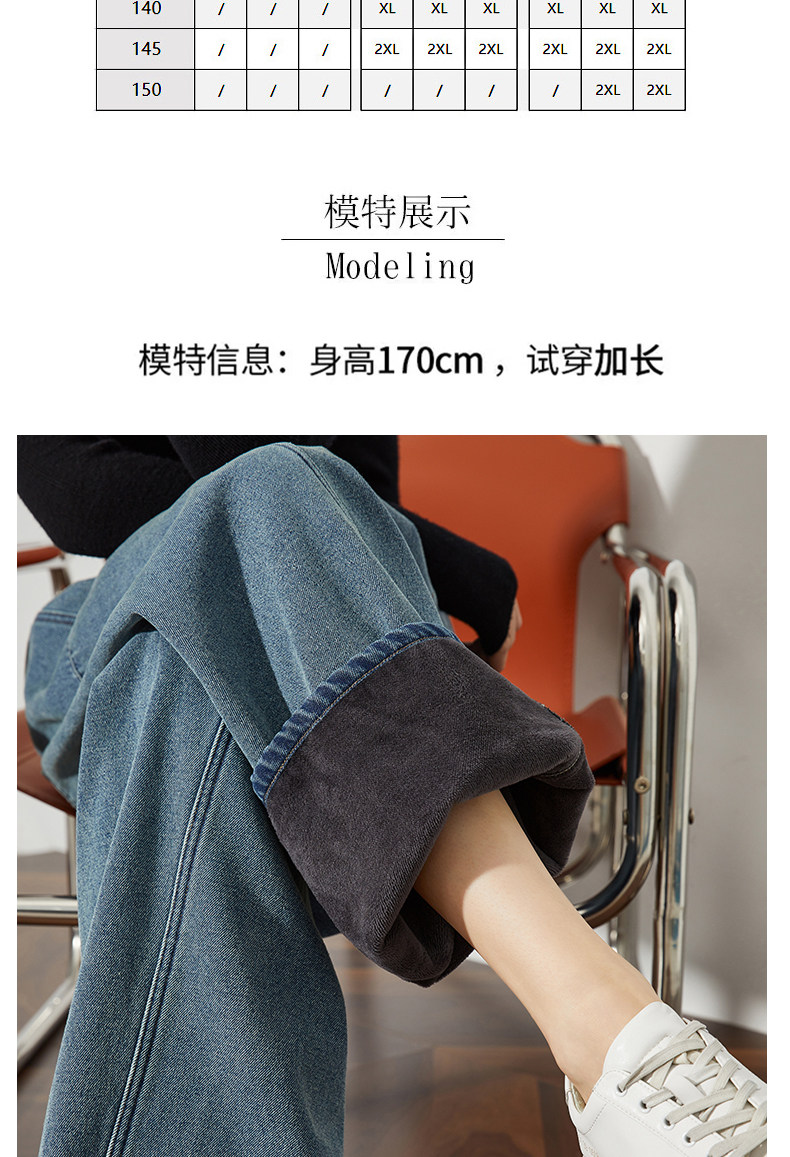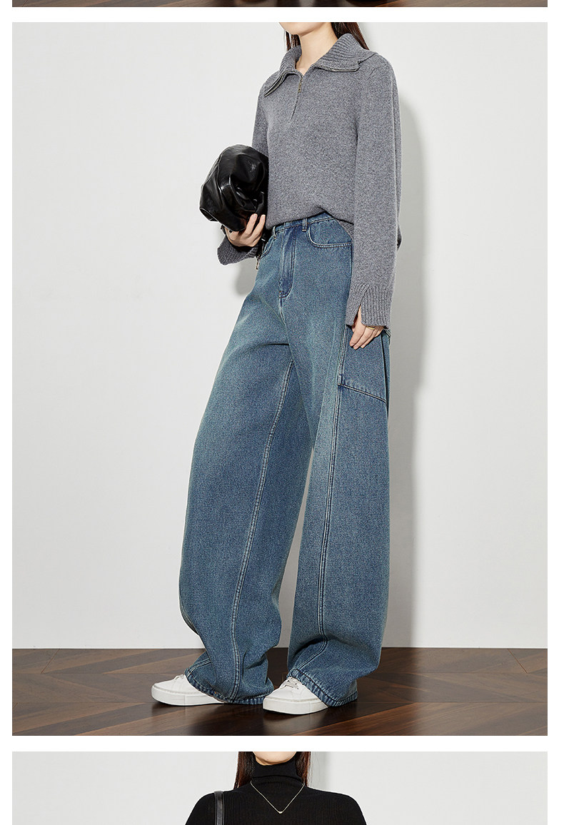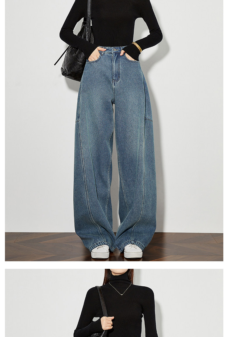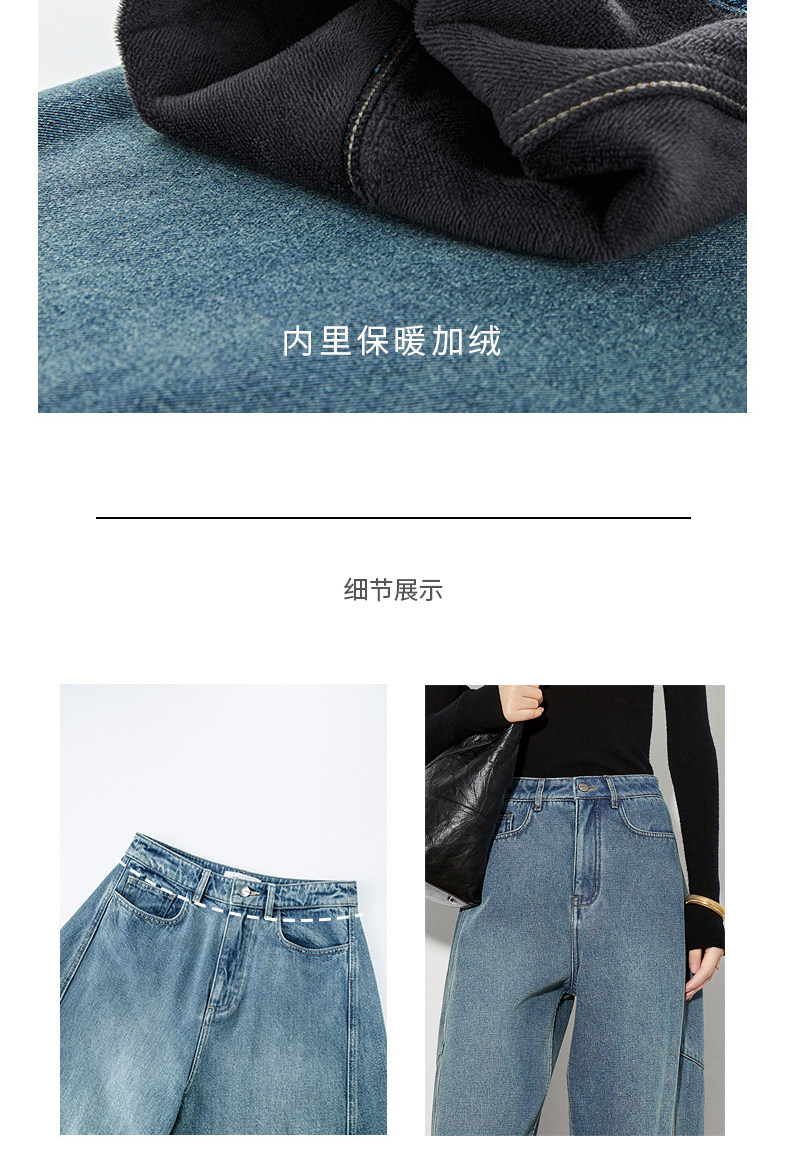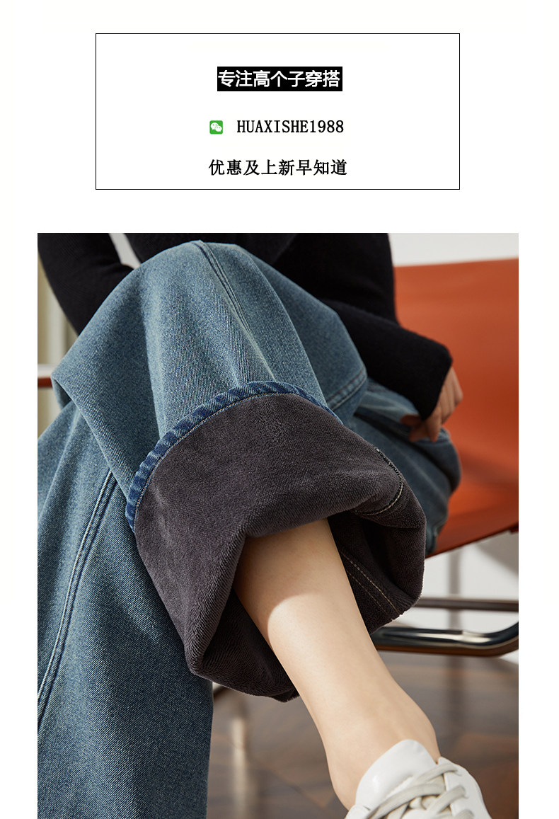 FAESSLIN弯刀牛仔裤女秋冬款加绒加厚高腰阔腿裤高个子宽松镰刀裤