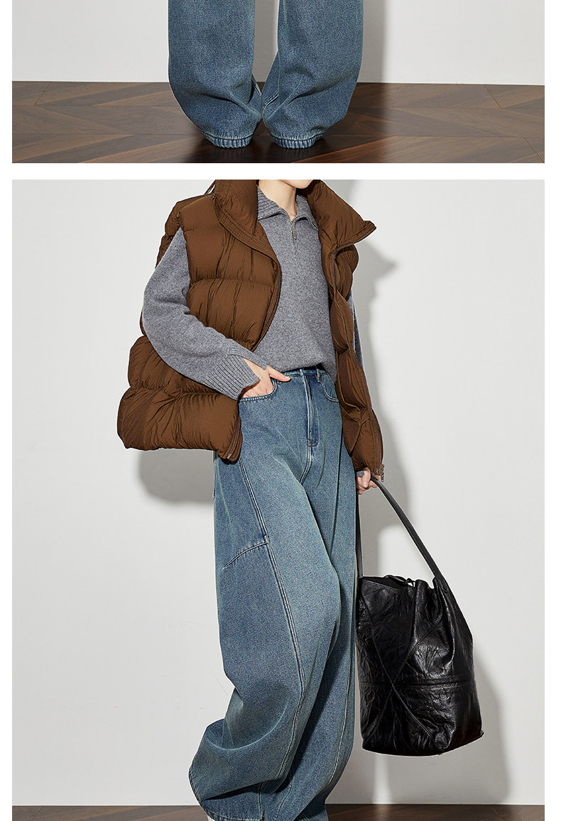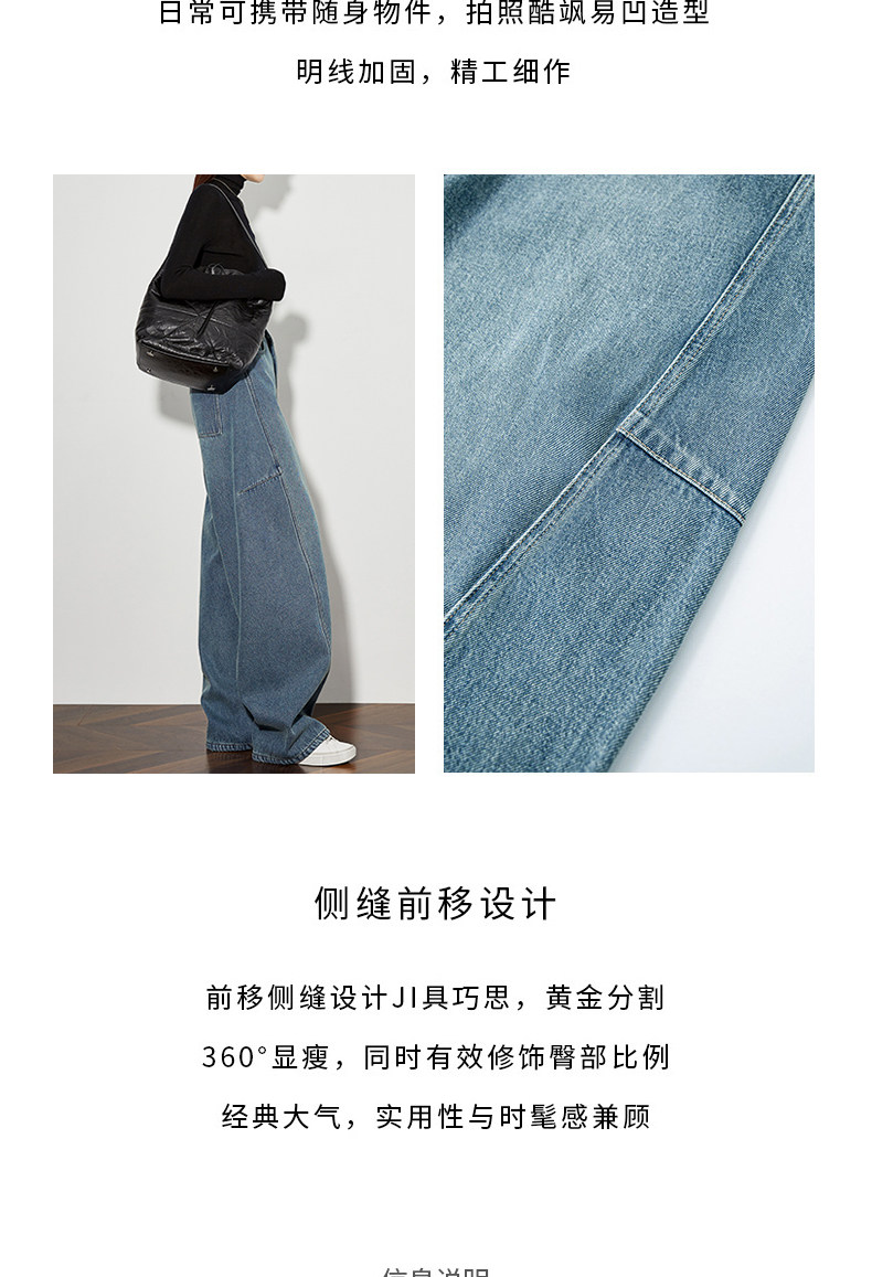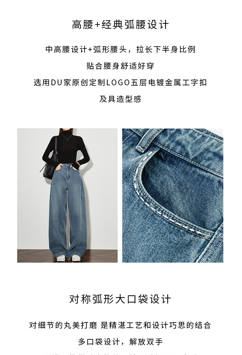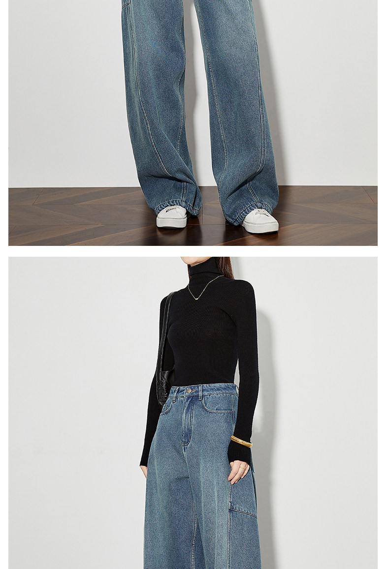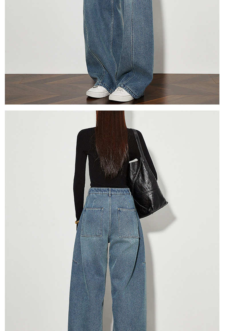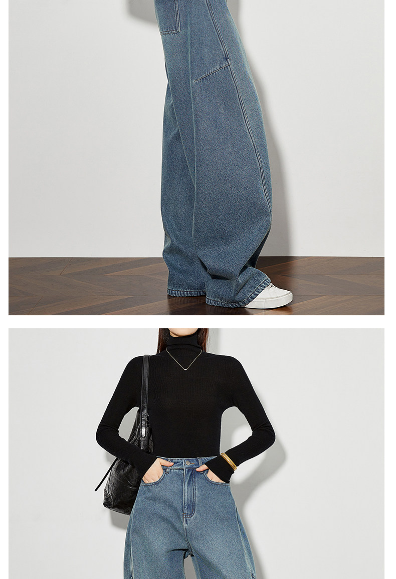 FAESSLIN弯刀牛仔裤女秋冬款加绒加厚高腰阔腿裤高个子宽松镰刀裤