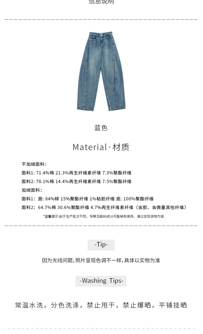 颜色分类 【秋款】蓝色正常版裤长103cm,【秋款】蓝色加长版裤长108cm,【秋款】蓝色超长版裤长113cm,【加绒】蓝色正常版裤长103cm,【加绒】蓝色加长版裤长108cm,【加绒】蓝色超长版裤长113cm