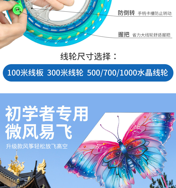 颜色分类 幻彩蝴蝶+100米大线板,幻彩蝴蝶+300米高端线轮,幻彩蝴蝶+500米升级水晶轮,幻彩蝴蝶(仅风筝)