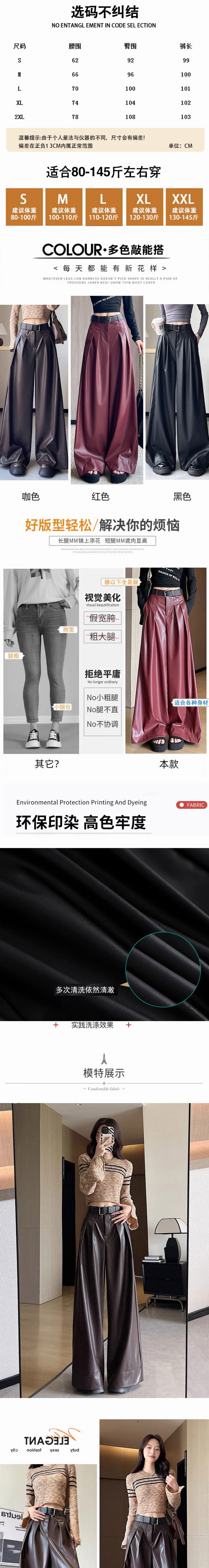 酒红色PU皮裤女春秋新款高腰垂感西装阔腿裤直筒宽松休闲拖地裙裤