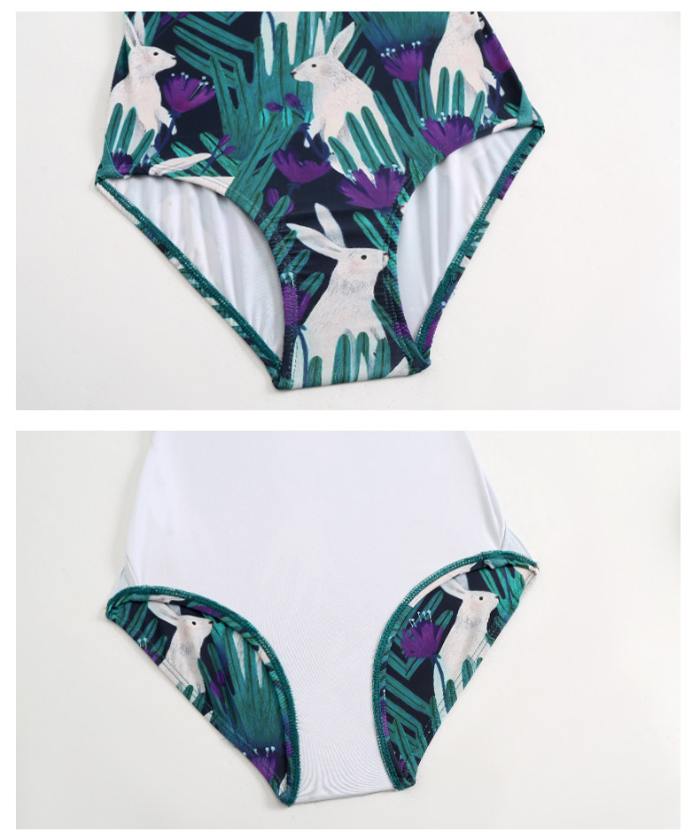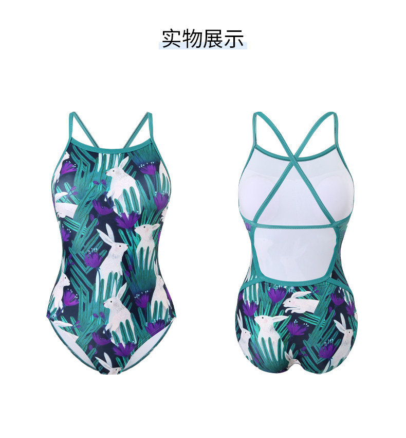 贝浩龙2024新款高级感游泳馆竞速训练连体泳衣三角绿色兔子网红