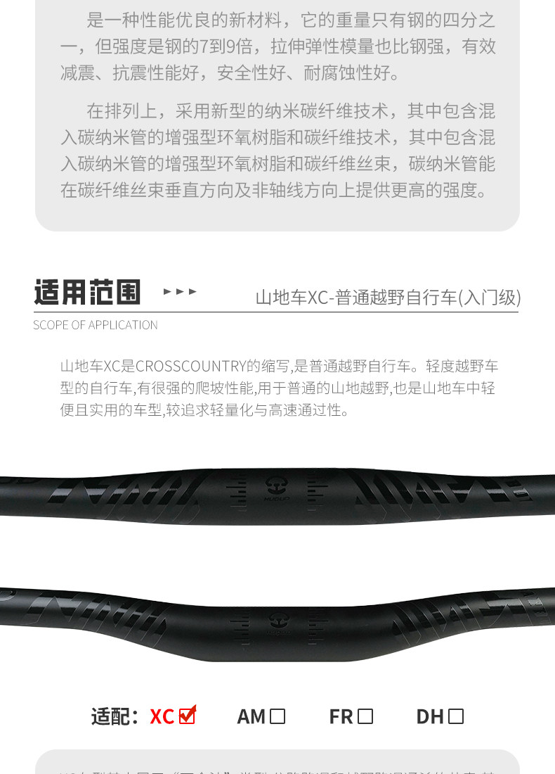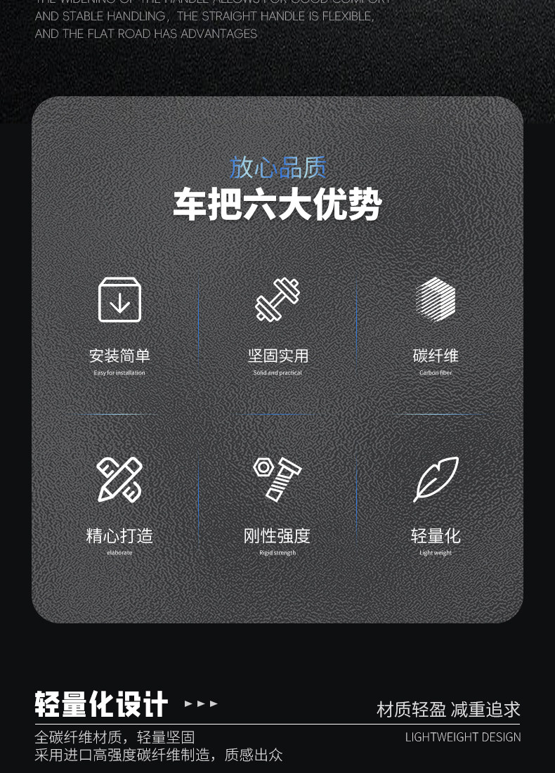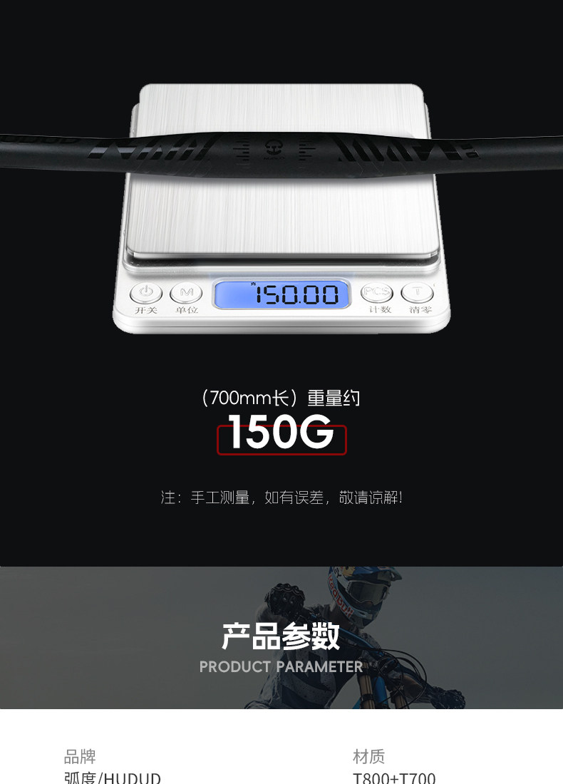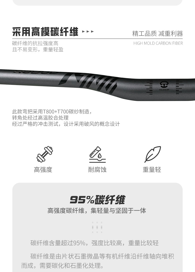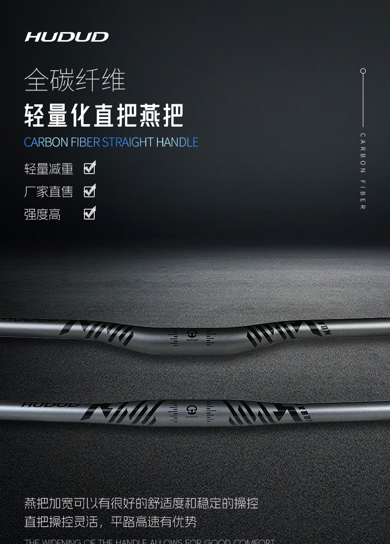 Hudud弧度山地车全碳纤维直把小燕把横把手超轻车把手580640780mm
