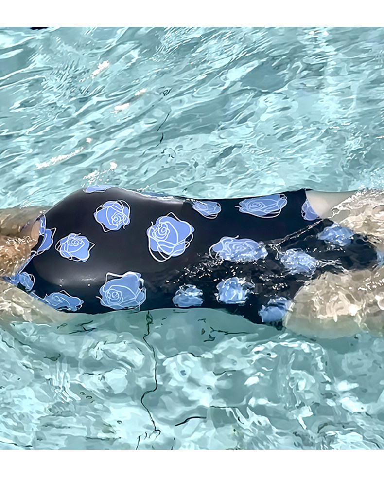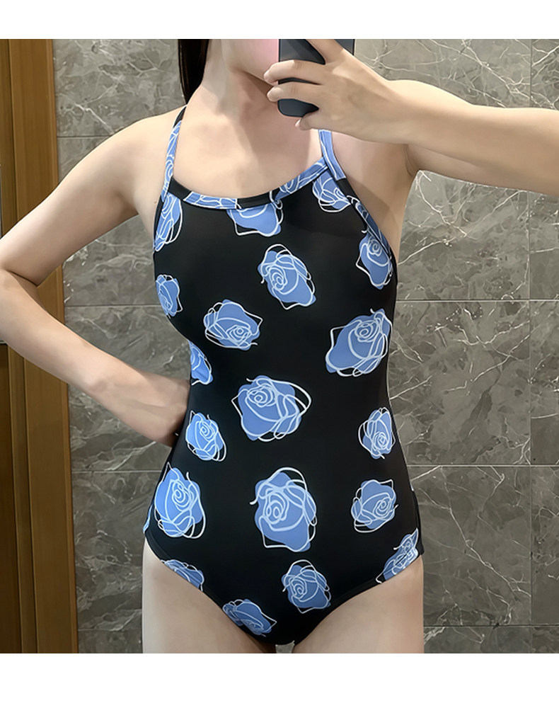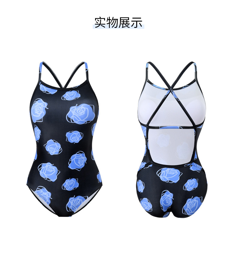 贝浩龙蓝色玫瑰女孩2024新款竞速泳衣高级感游泳馆专用竞技泳装