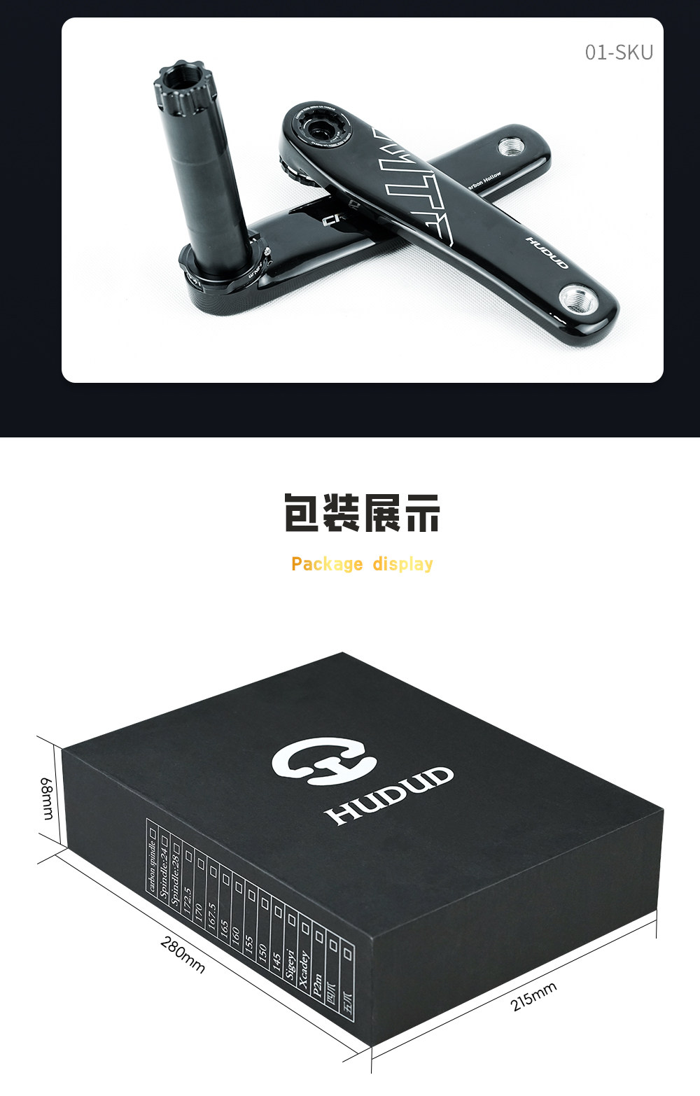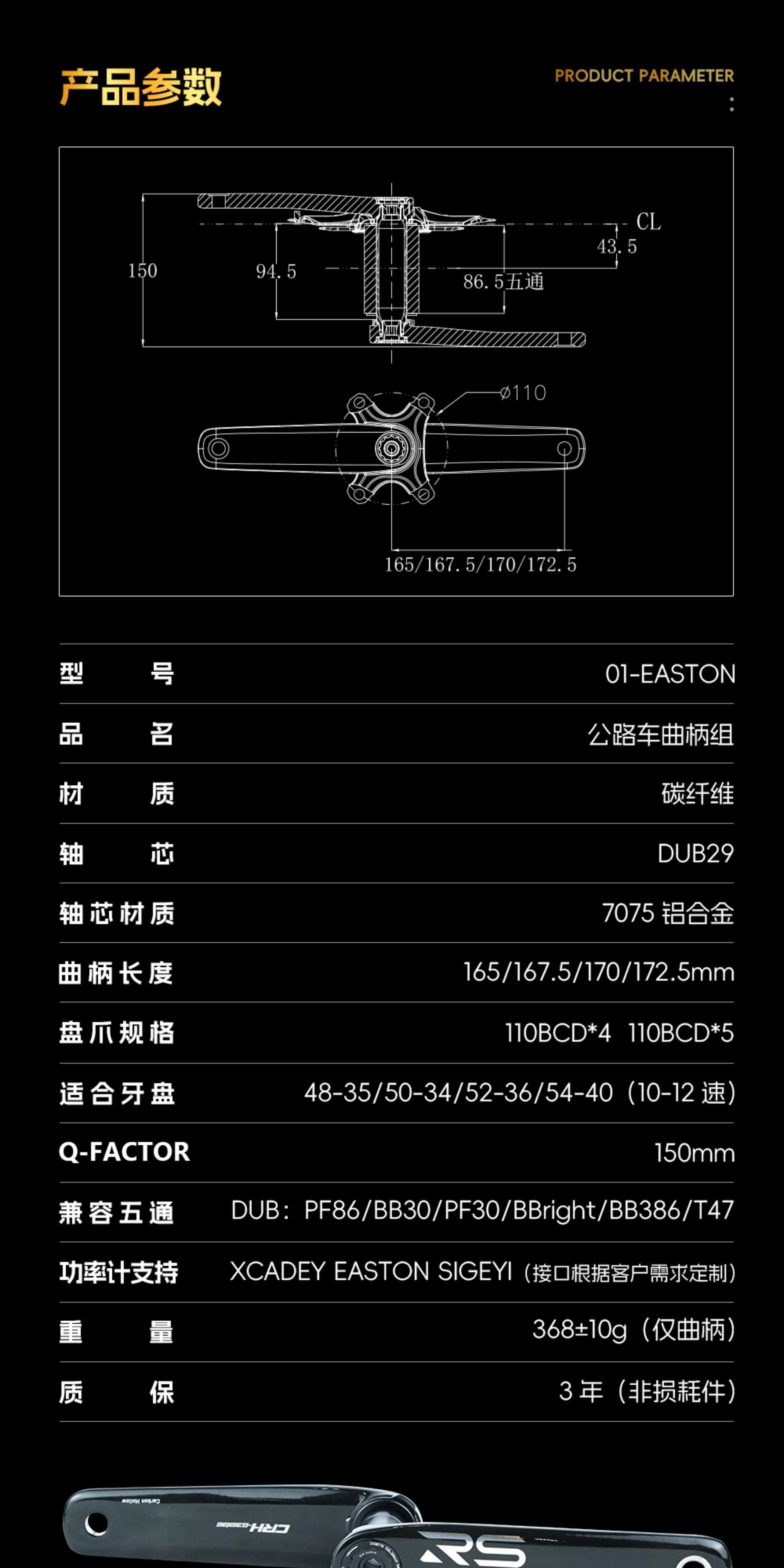 Hudud-manivela de fibra de carbono para bicicleta de carretera, enlace de velocidad EASTON, 3 clavos, 8 clavos, interfaz relámpago, eje DUB24