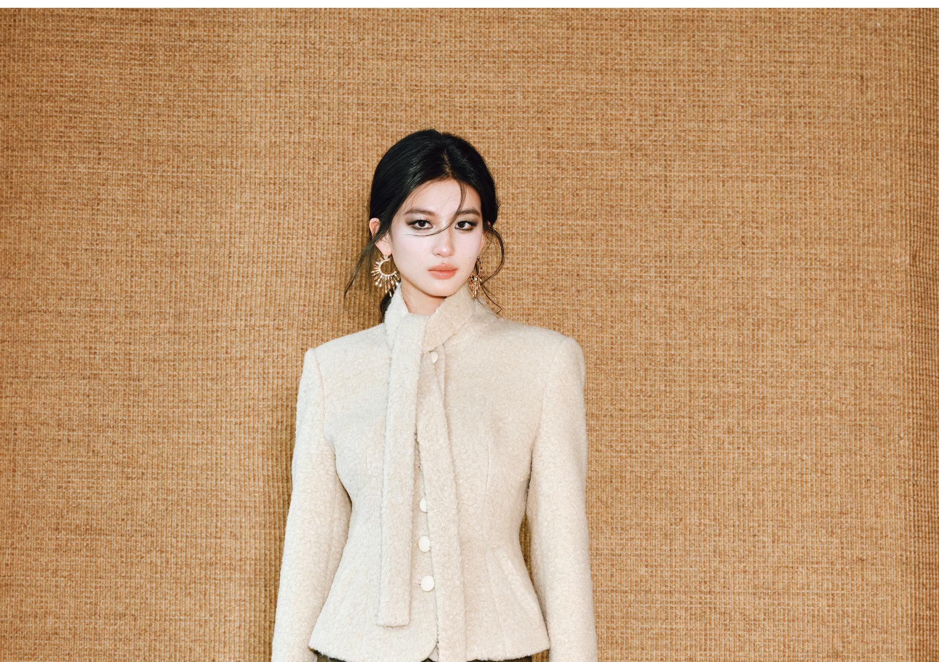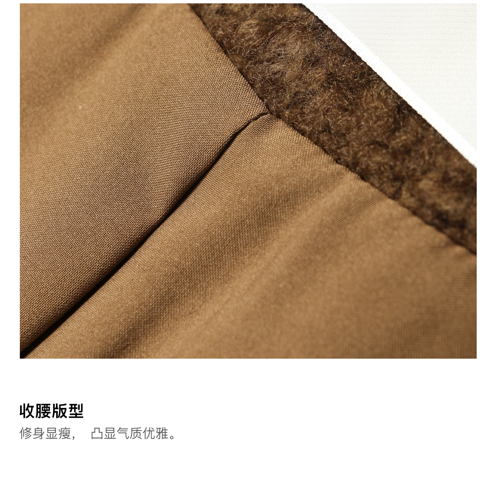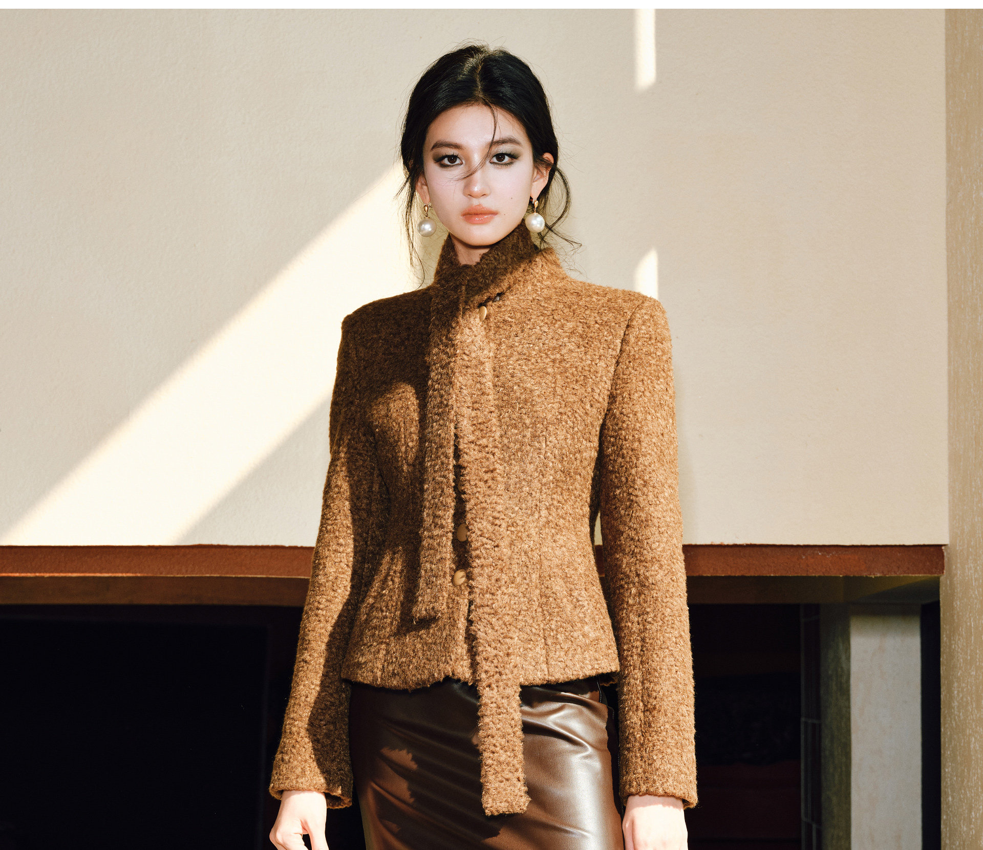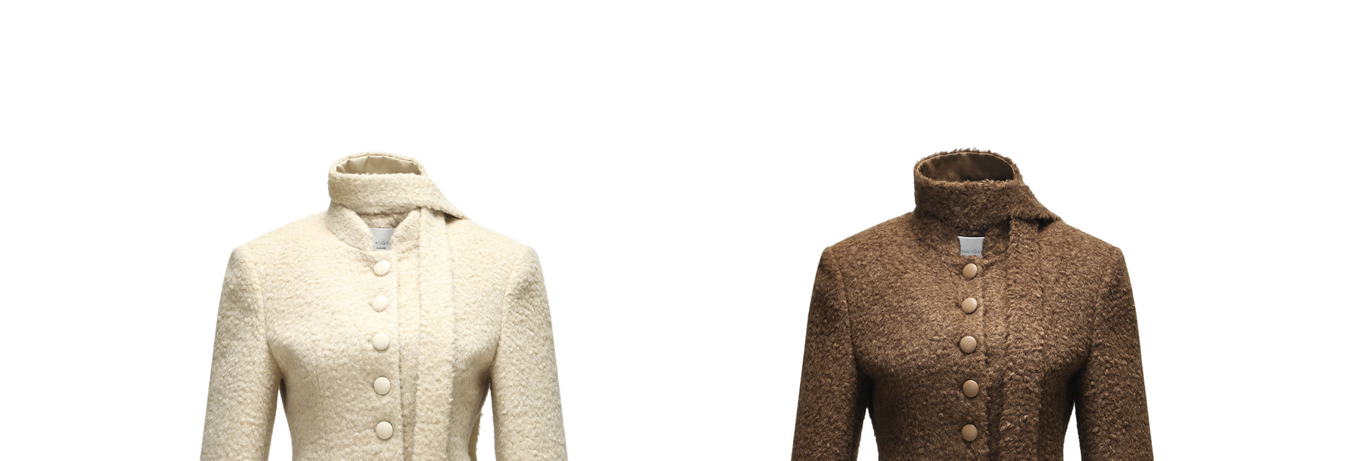 Wangxo|Silk-Like Curly Texture Woolen Fabric|Warm Ribbon Stand Collar Waist-Cinching Straight Shoulder Elegant Short Coat