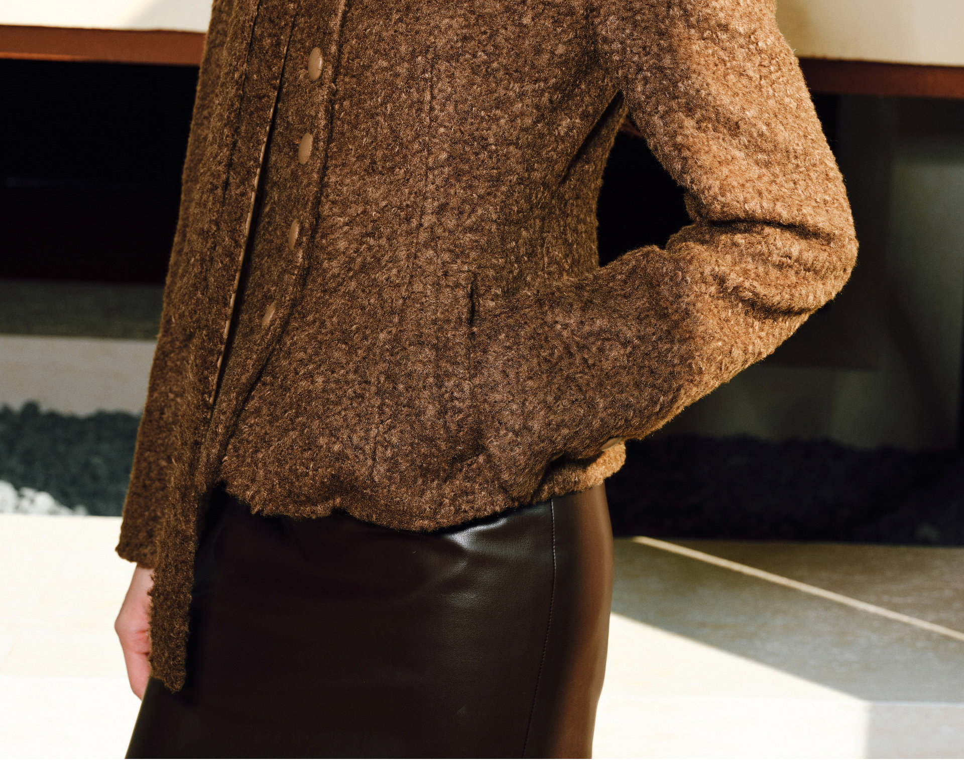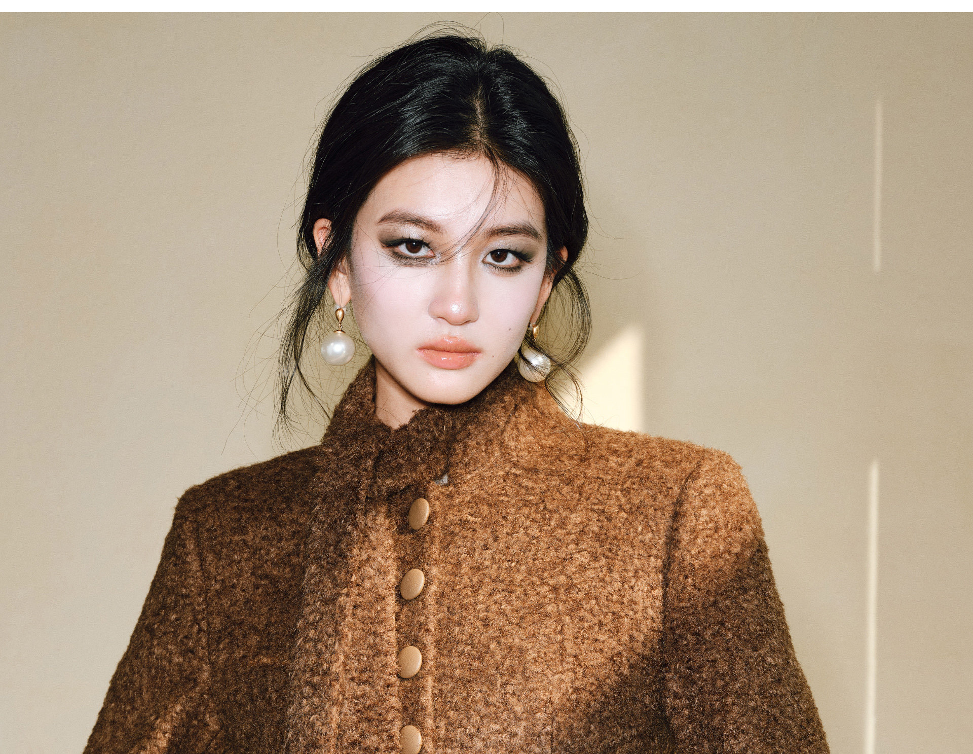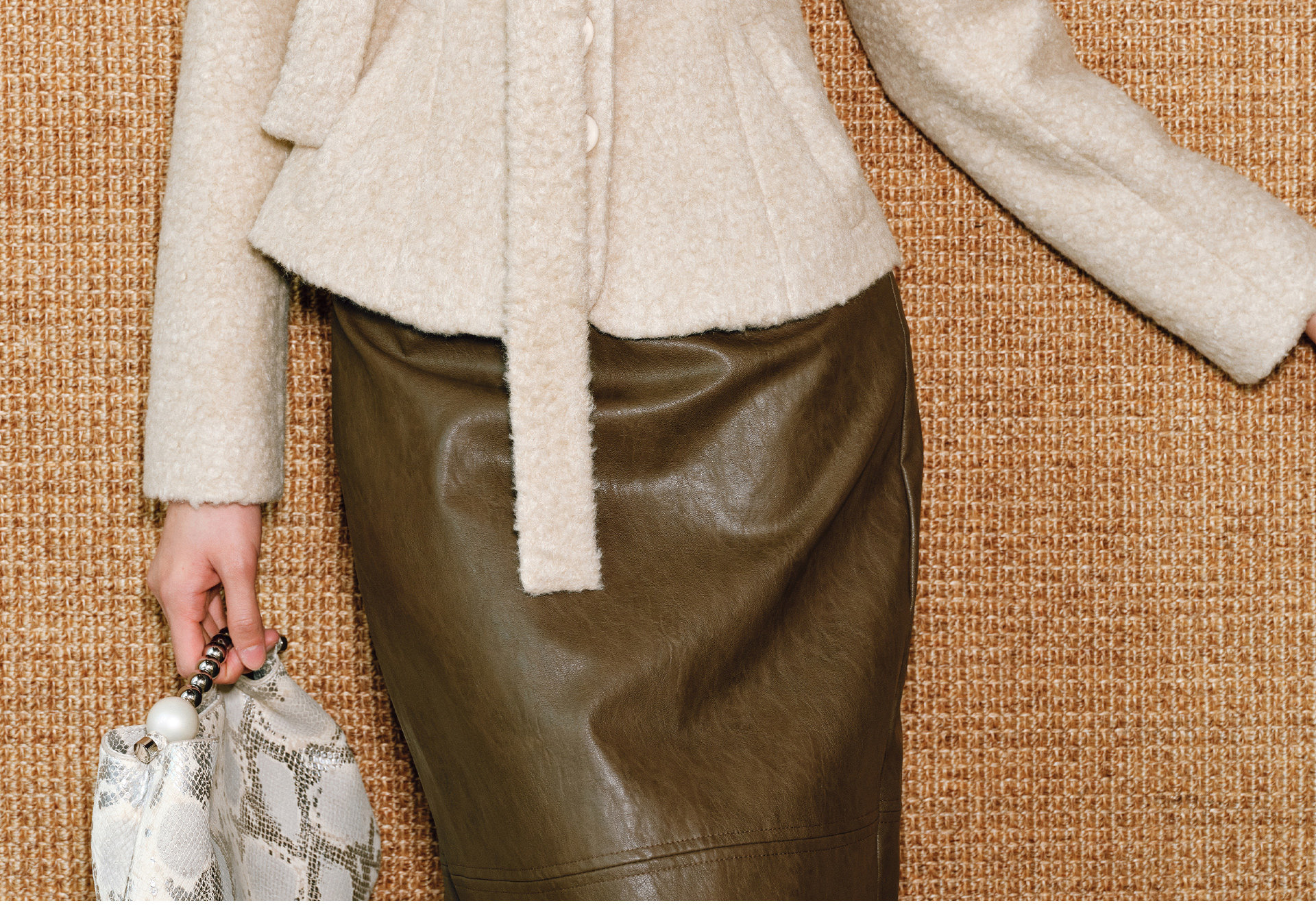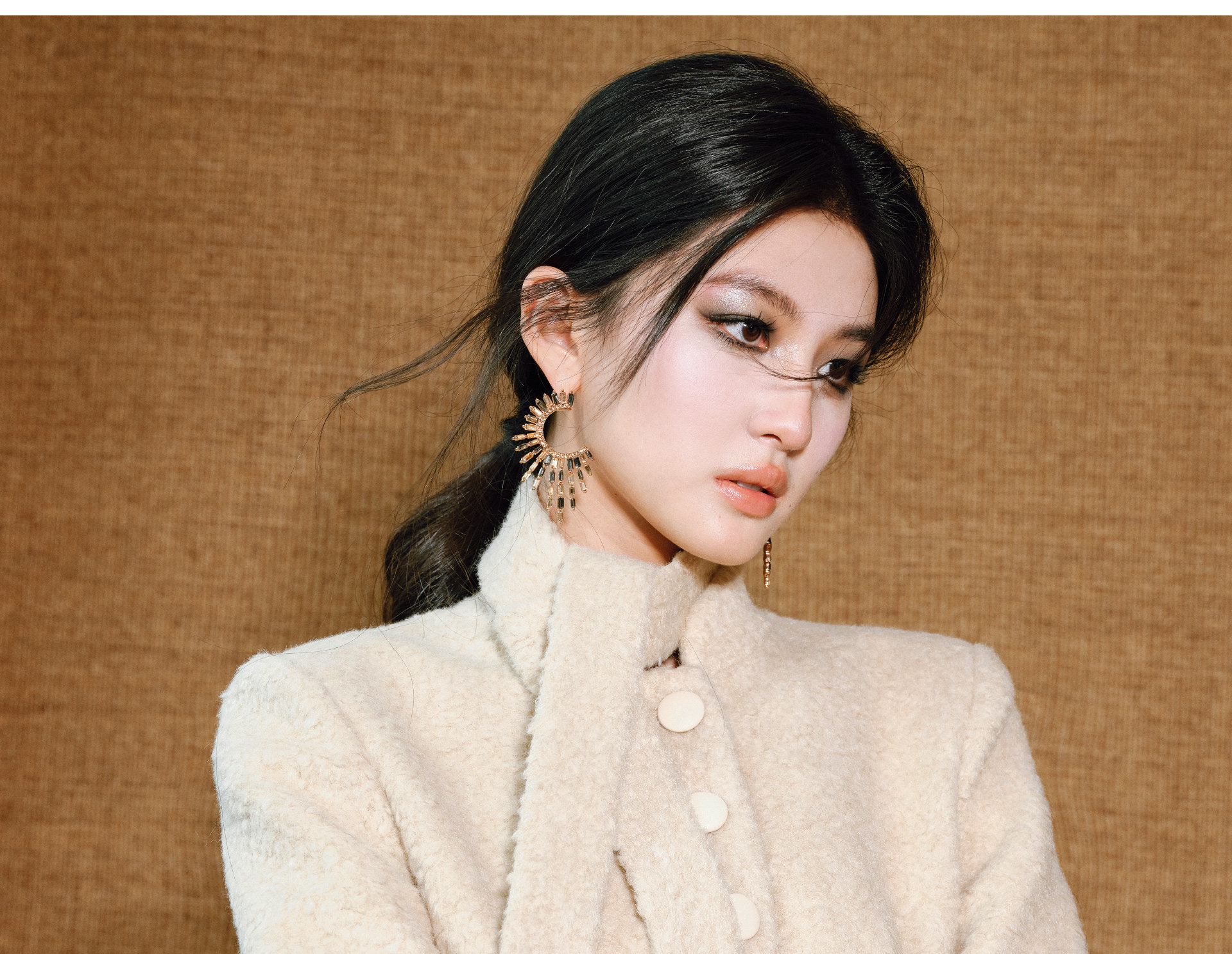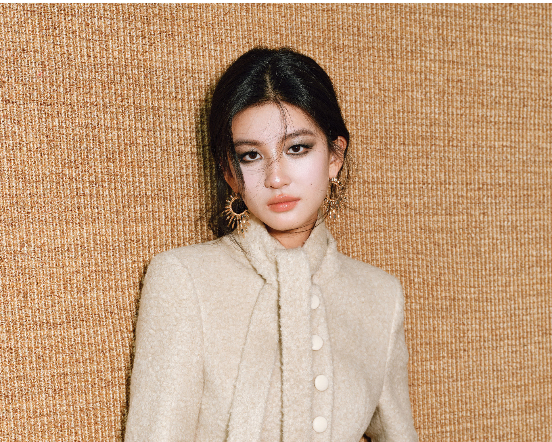 Wangxo|Silk-Like Curly Texture Woolen Fabric|Warm Ribbon Stand Collar Waist-Cinching Straight Shoulder Elegant Short Coat
