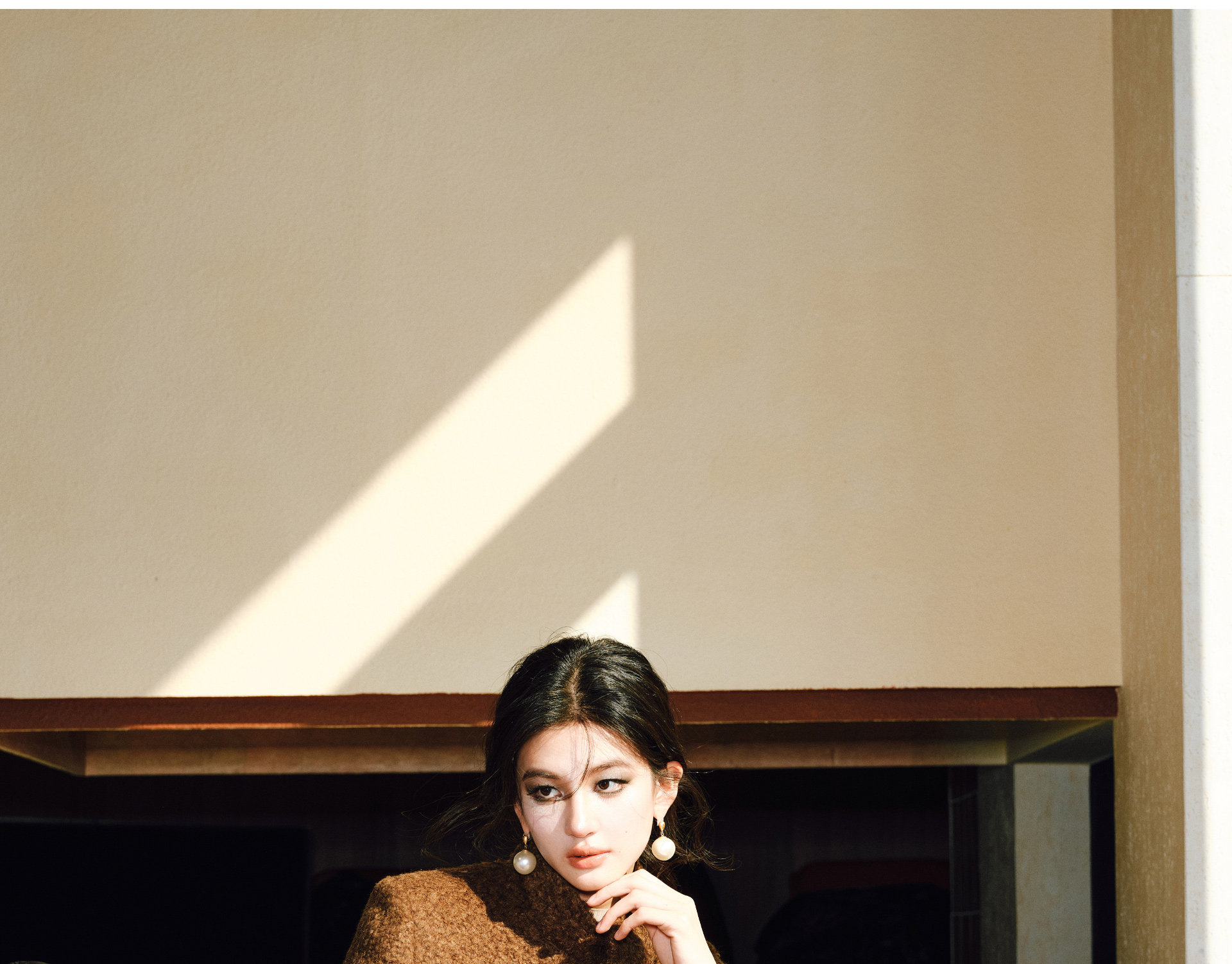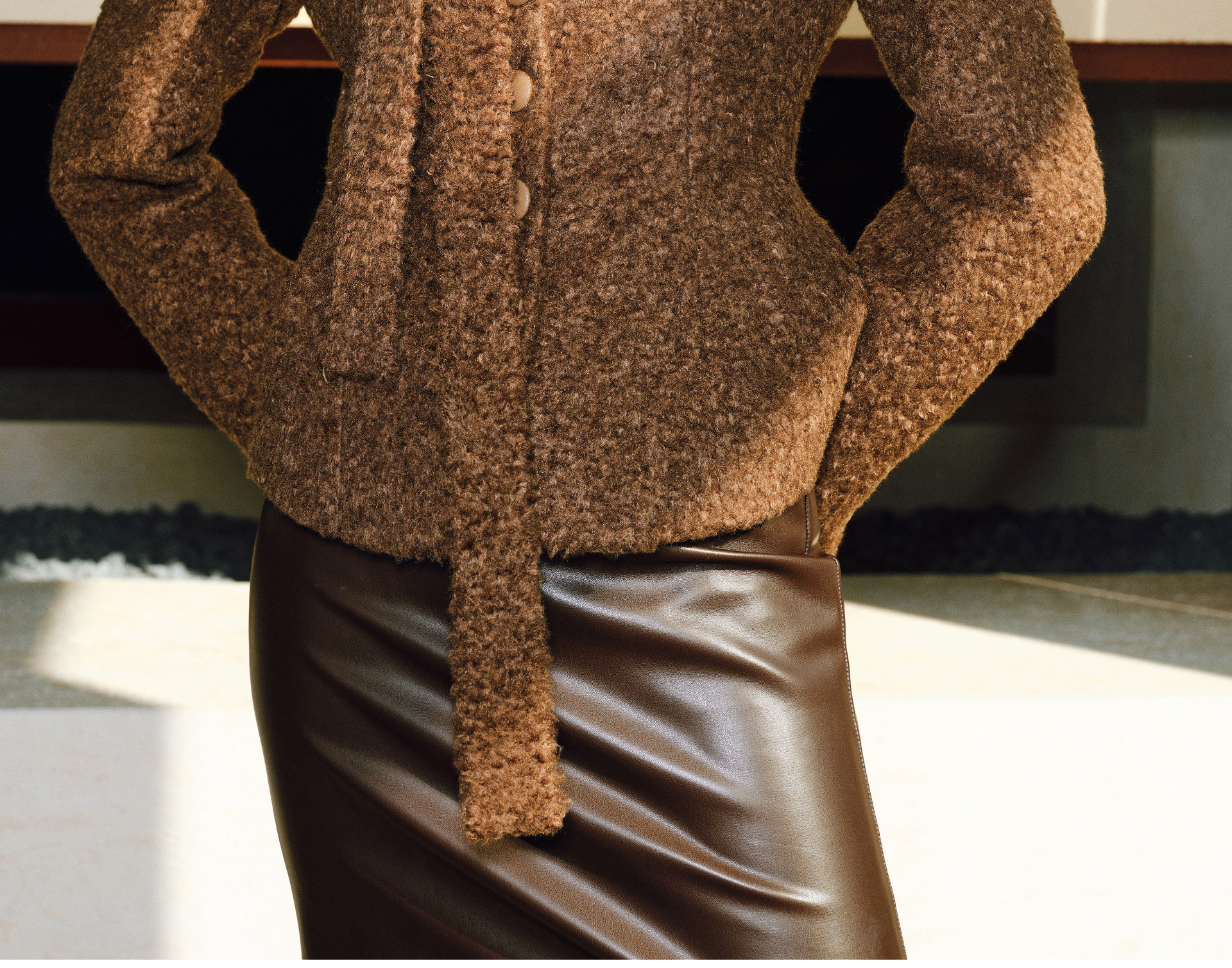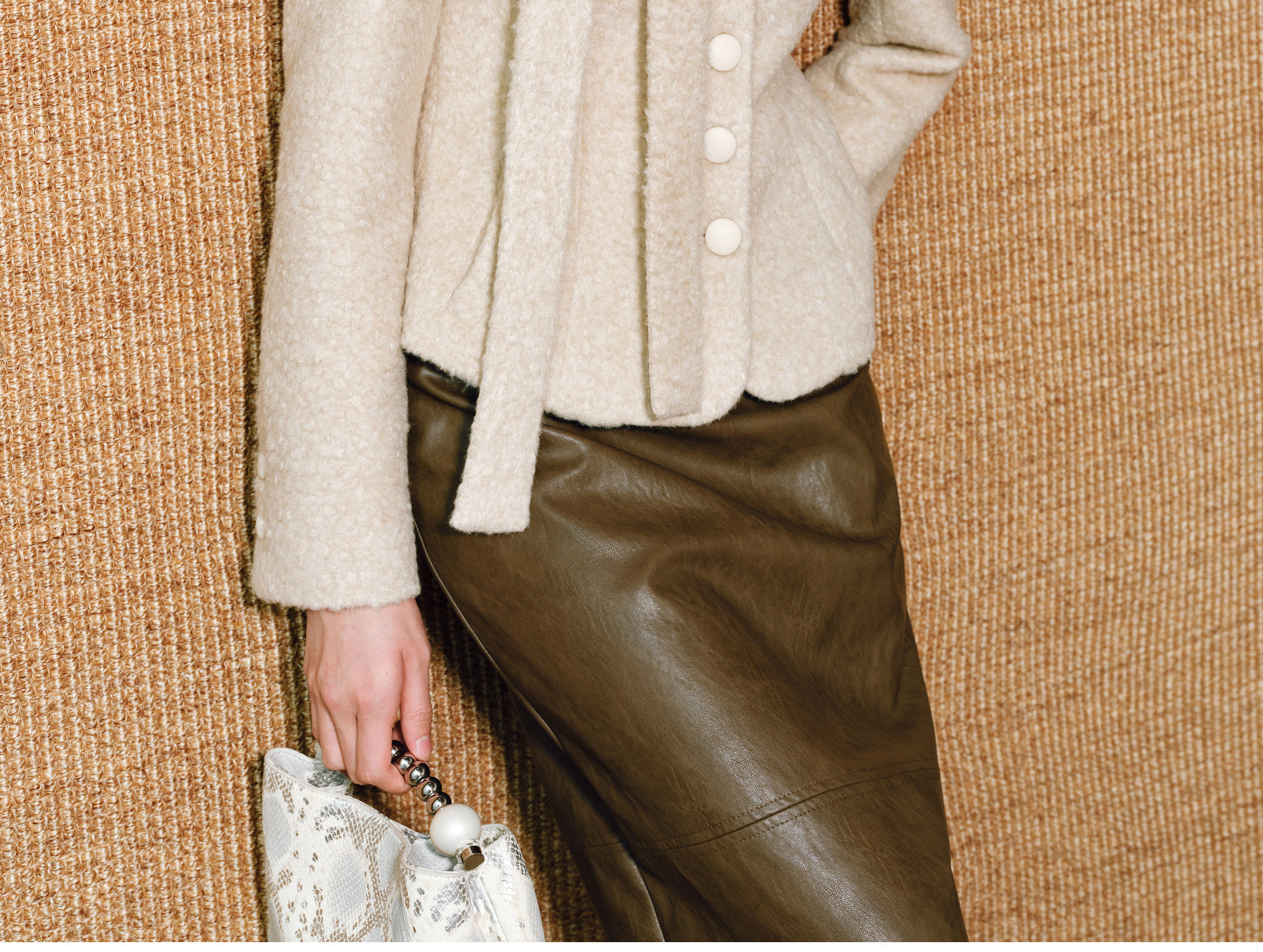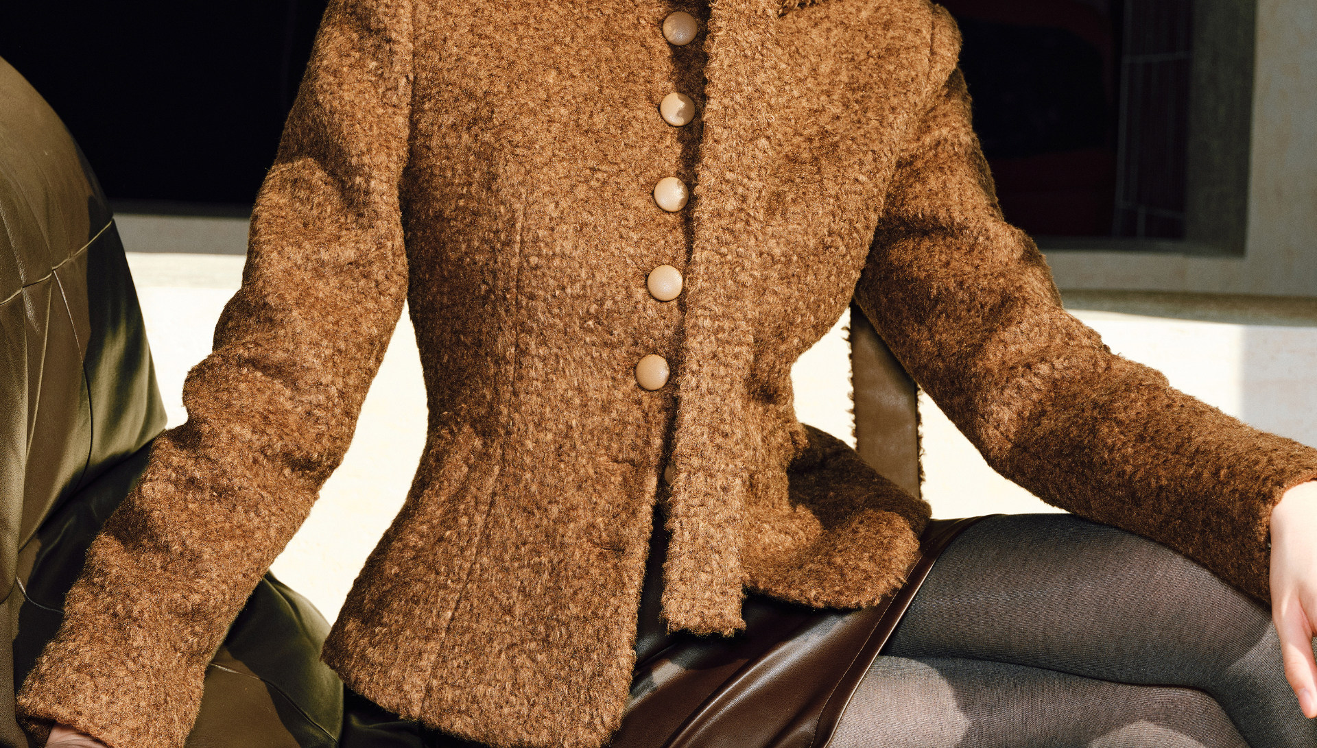 Wangxo|Silk-Like Curly Texture Woolen Fabric|Warm Ribbon Stand Collar Waist-Cinching Straight Shoulder Elegant Short Coat