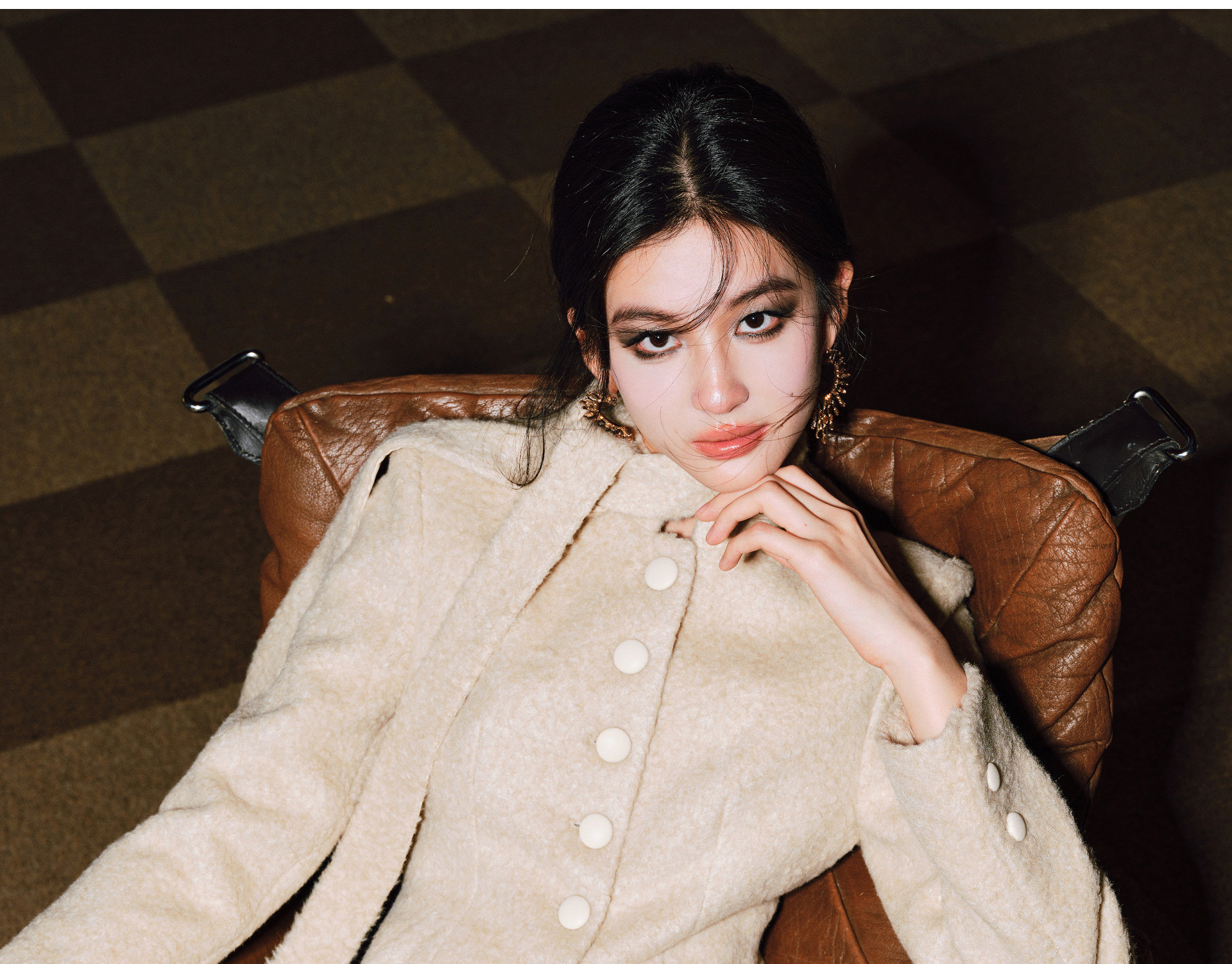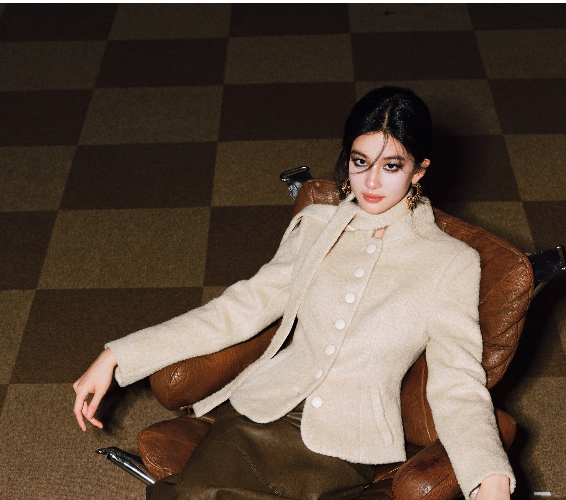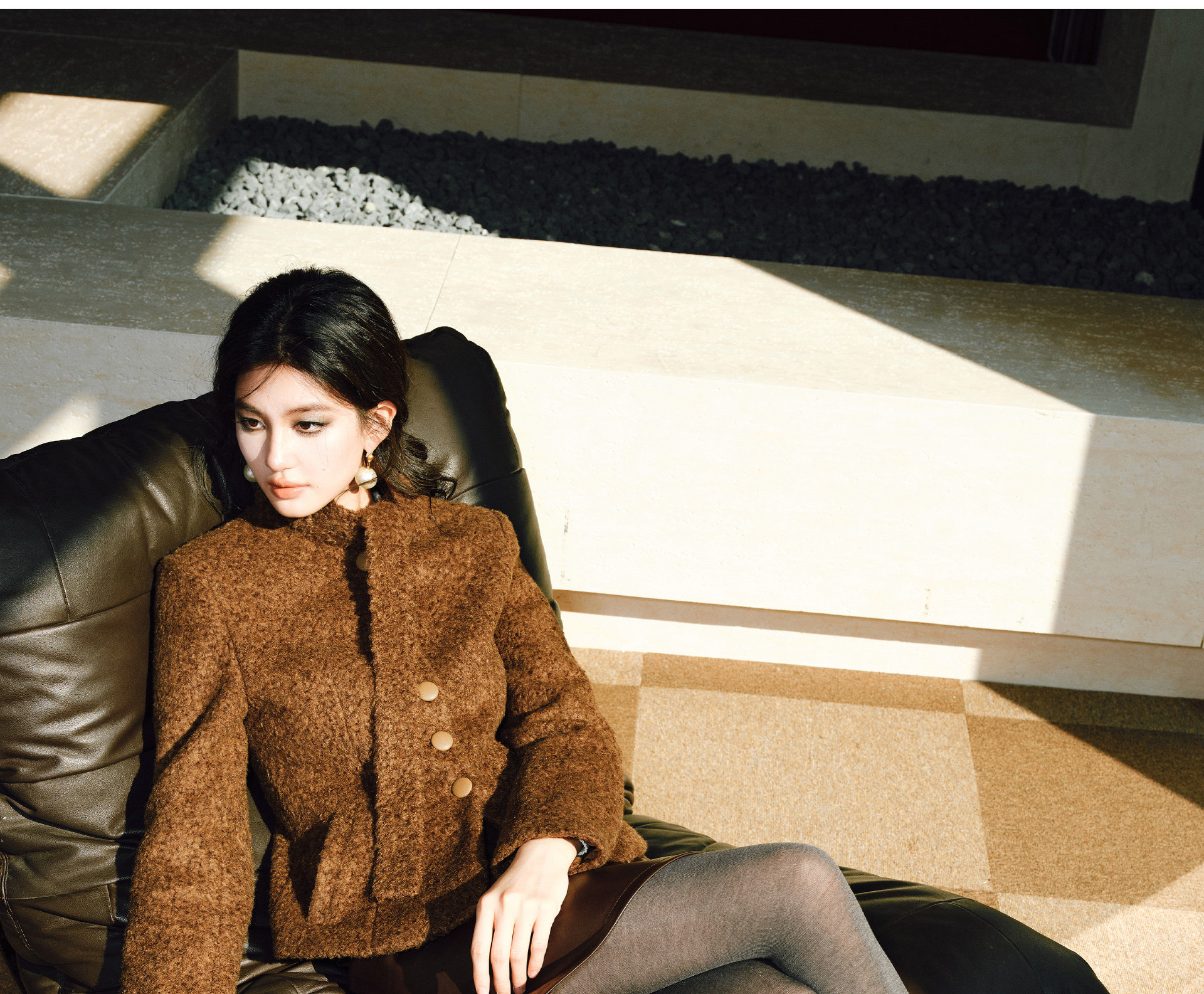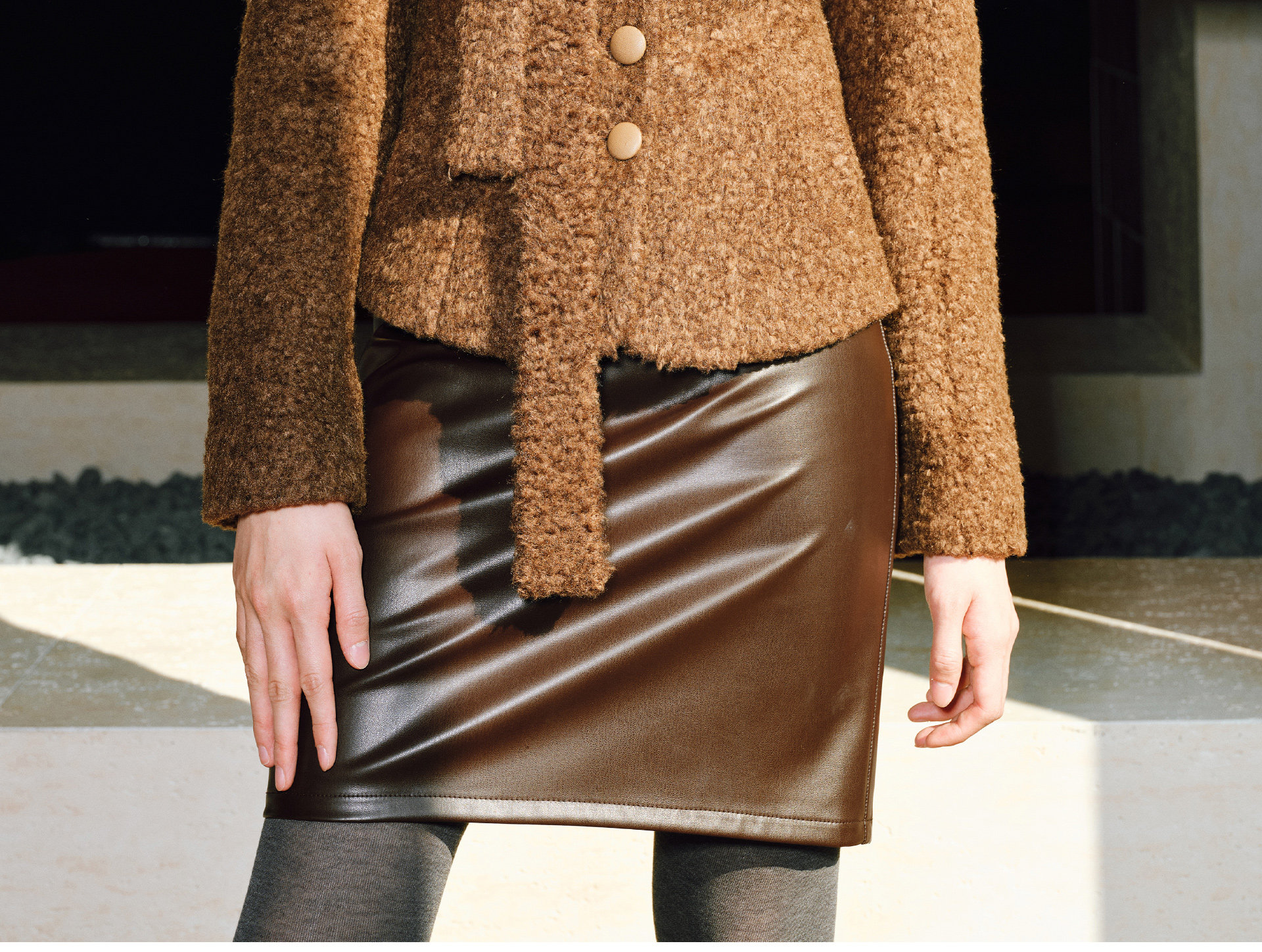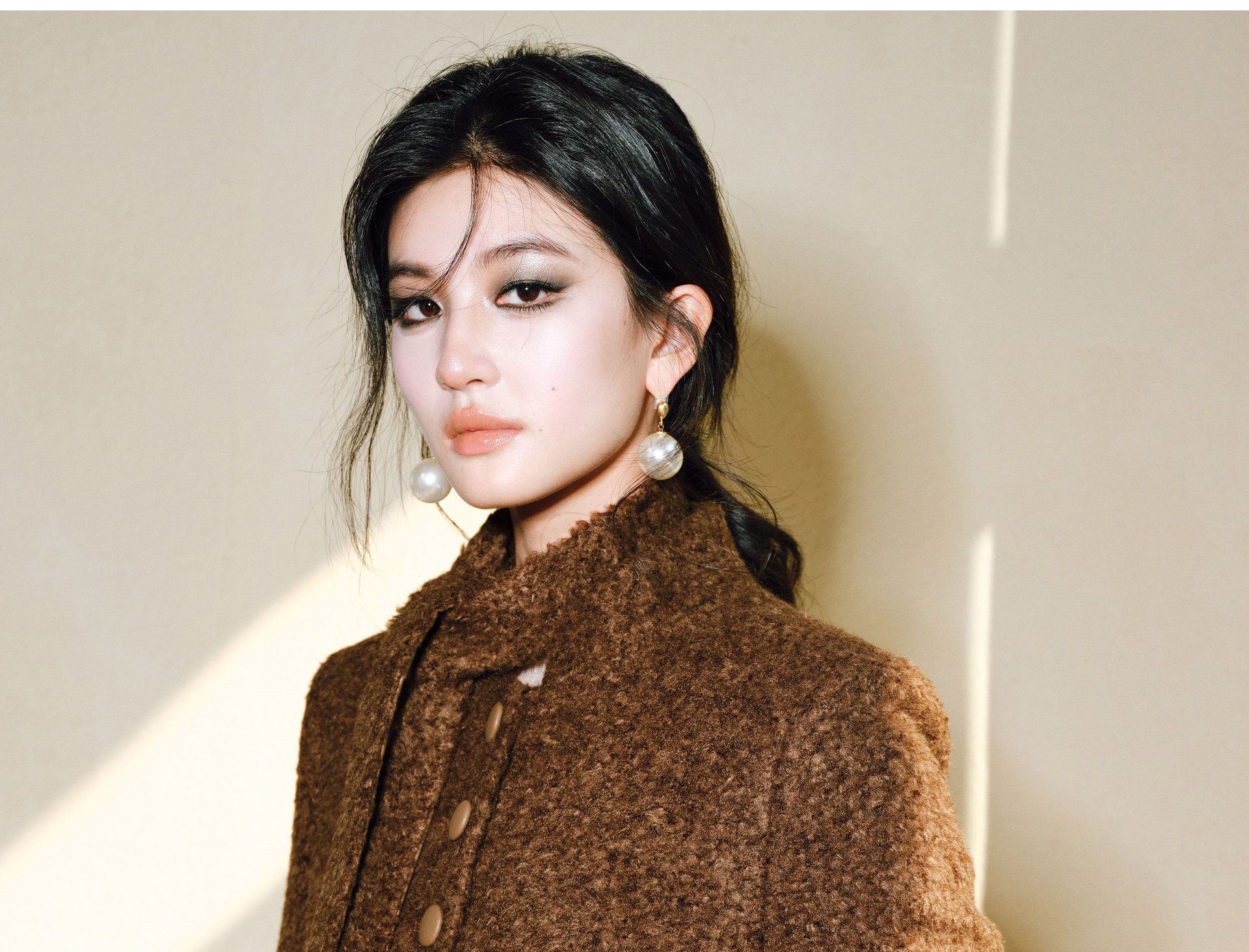 Wangxo|Silk-Like Curly Texture Woolen Fabric|Warm Ribbon Stand Collar Waist-Cinching Straight Shoulder Elegant Short Coat