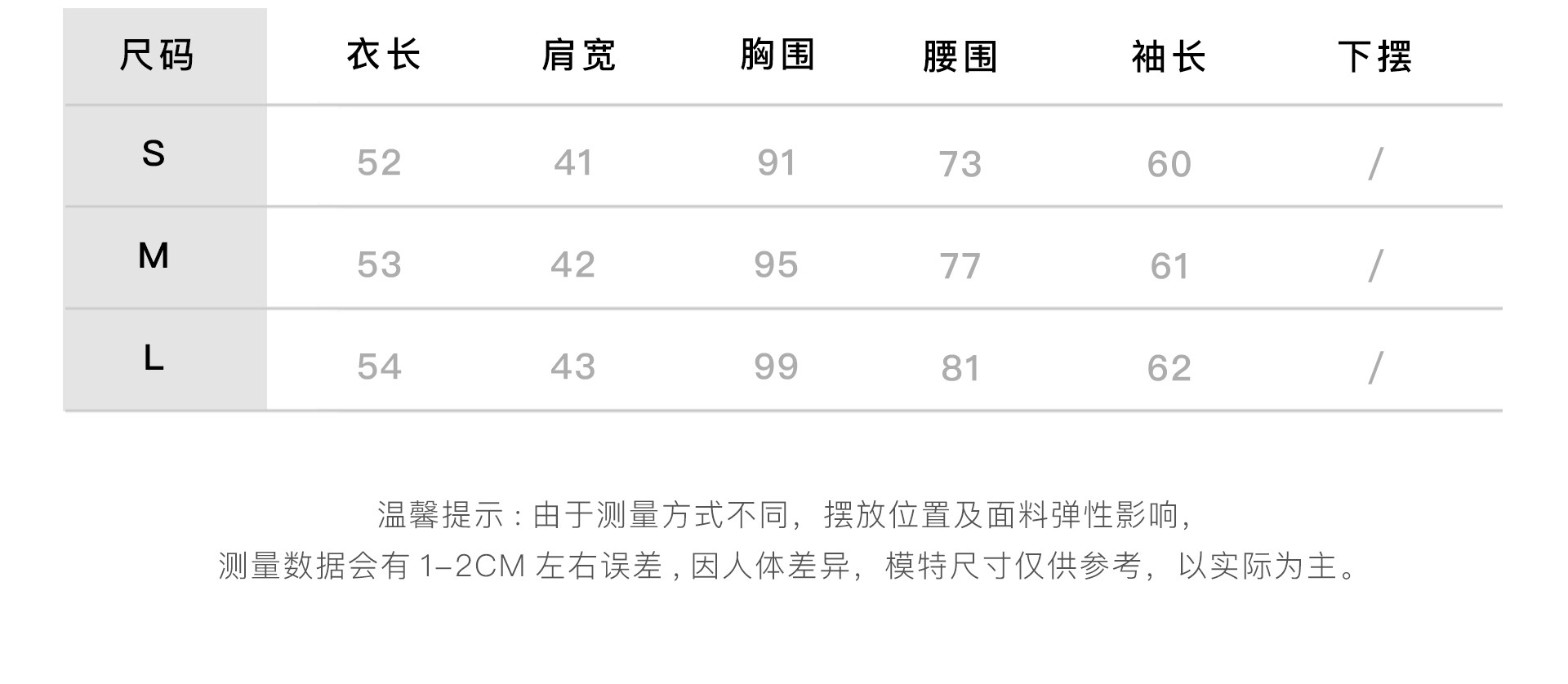 Size (cm) 42 44 46 48 50