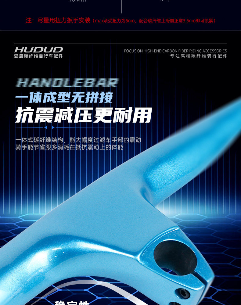 Hudud Arc Mountain Bike Handlebar Full Carbon Fiber One-Piece Straight Handlebar Horizontal Handlebar Vertical Bicycle High Lightweight Accessories