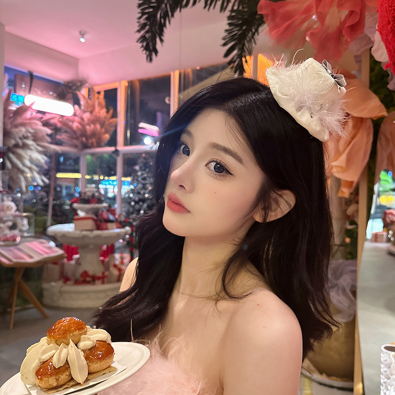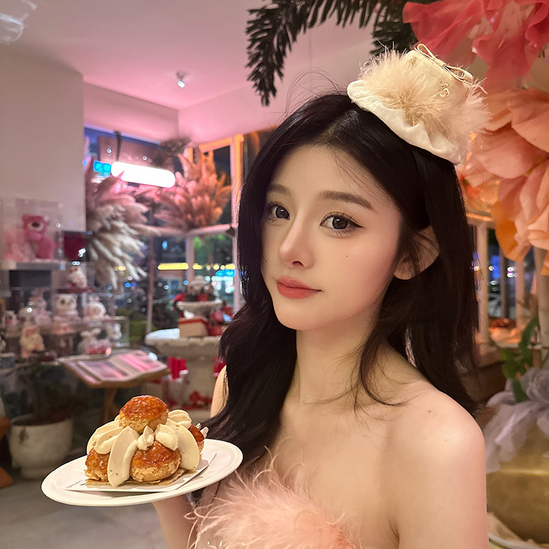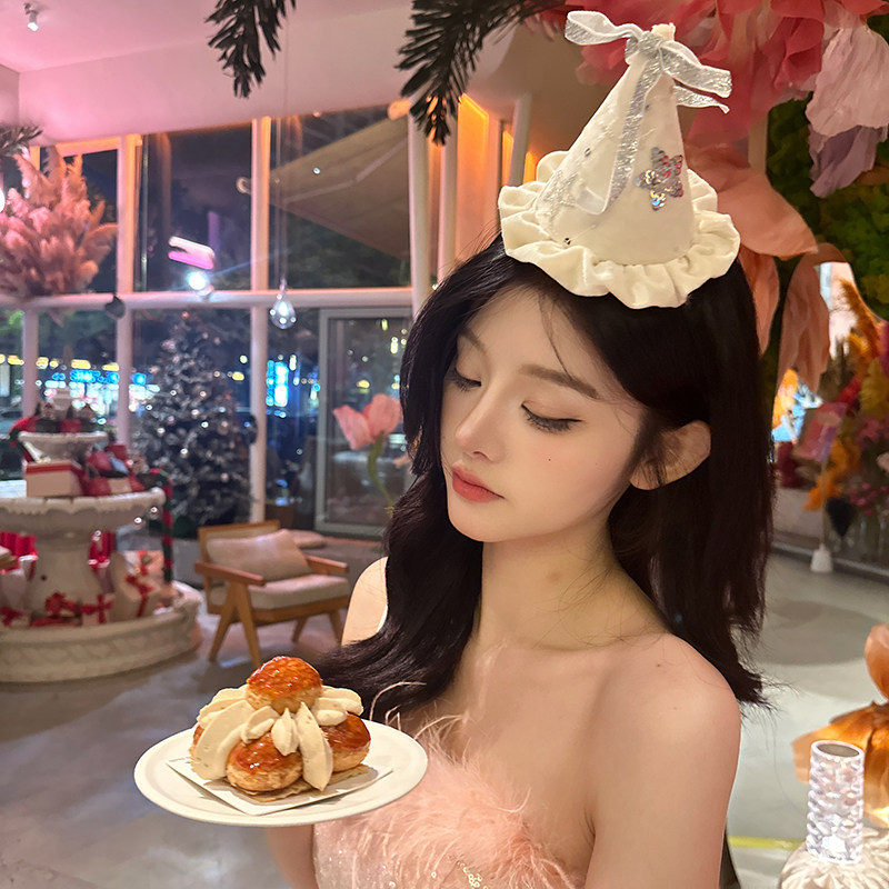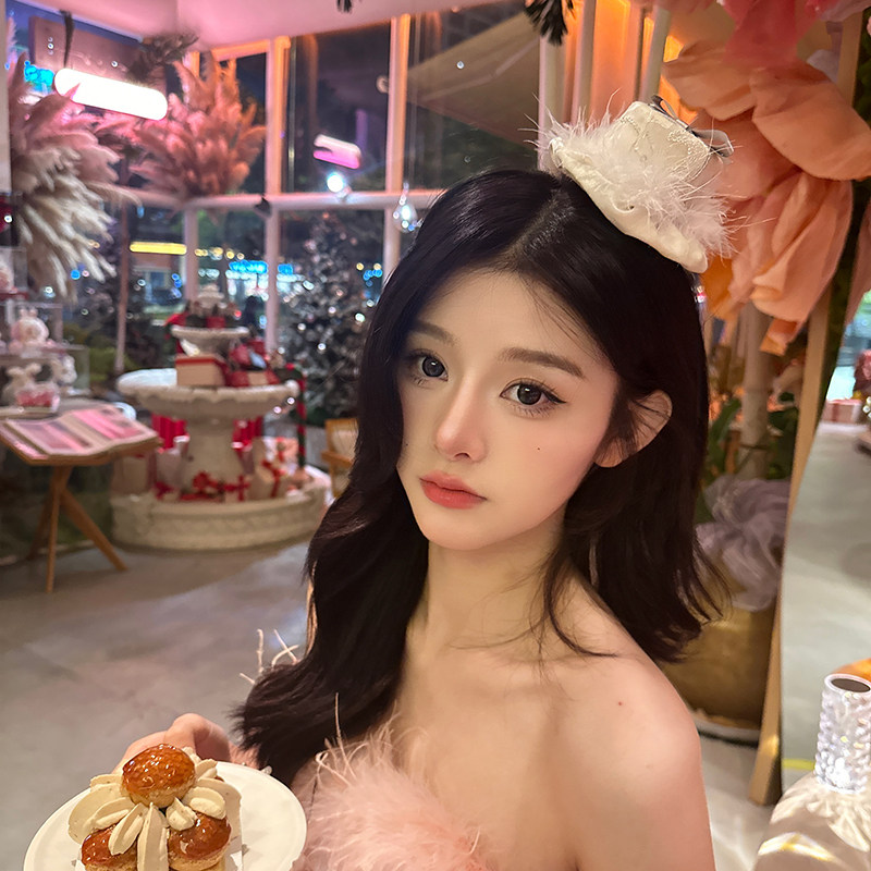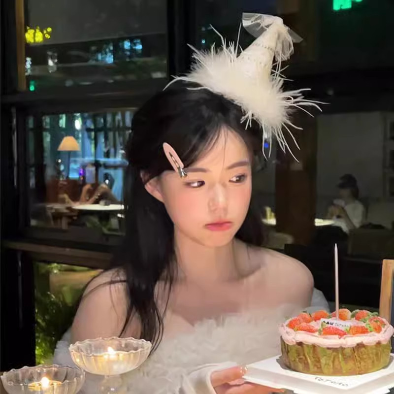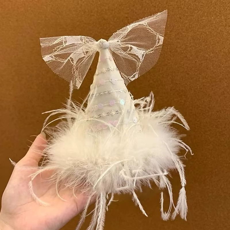 愿望成真蝴蝶结羽毛生日蛋糕发夹女法式褶皱边夹侧边夹头饰发饰