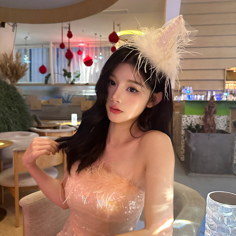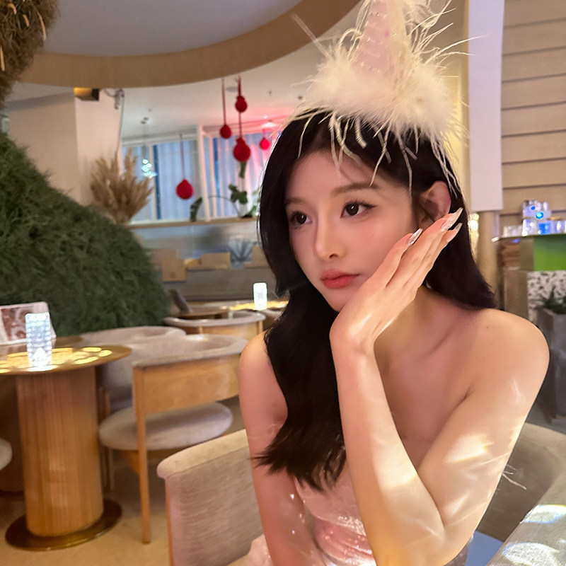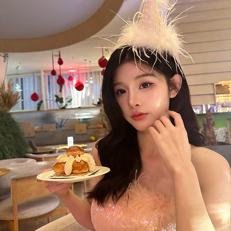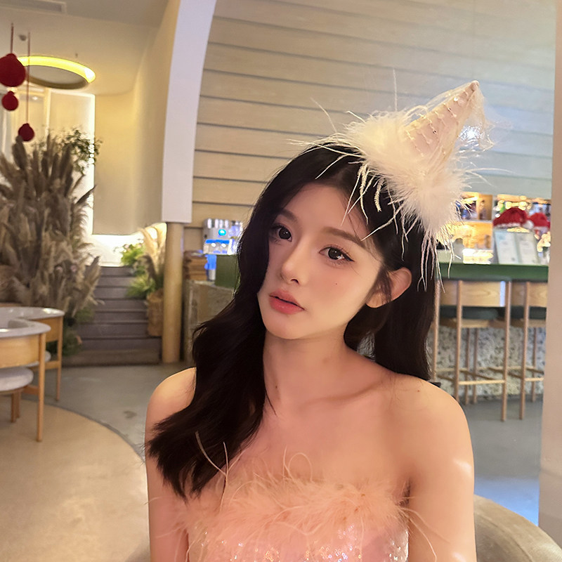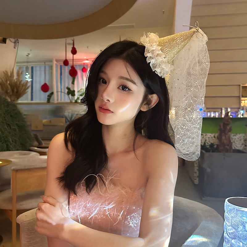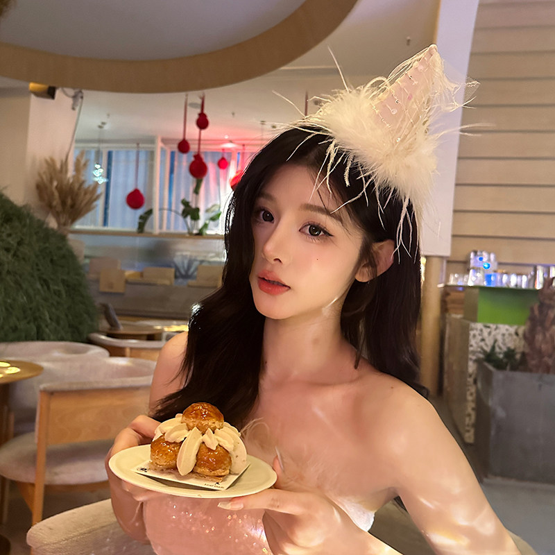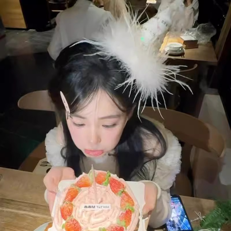 愿望成真蝴蝶结羽毛生日蛋糕发夹女法式褶皱边夹侧边夹头饰发饰