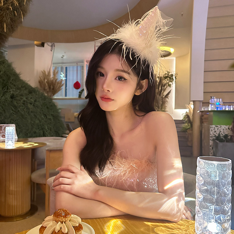 颜色分类 奶白亮片羽毛生日帽发夹,金色蝴蝶结网纱生日帽发夹,米白羽毛蝴蝶结生日帽发夹,米白亮片五角星生日帽发夹,白色小帽子生日帽发夹,米色小帽子生日帽发夹