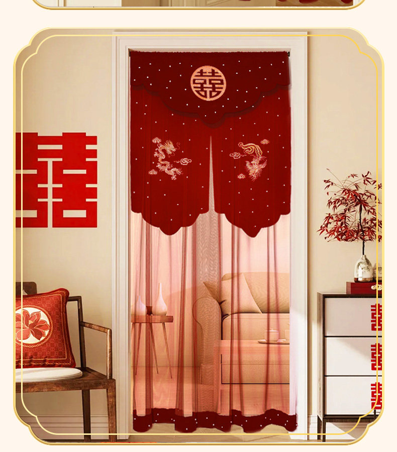 颜色分类 绒布刺绣门帘【喜上枝头】带免打孔伸缩杆,绒布刺绣门帘【龙凤呈祥】带免打孔伸缩杆