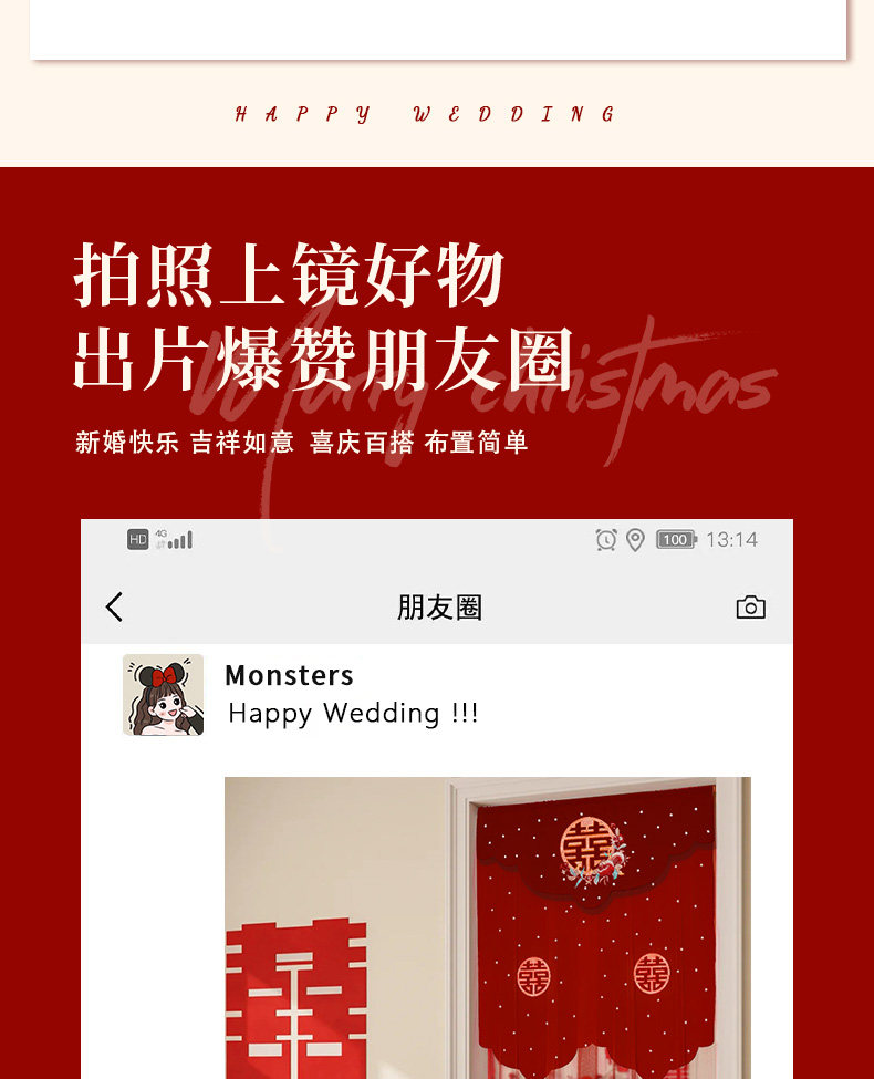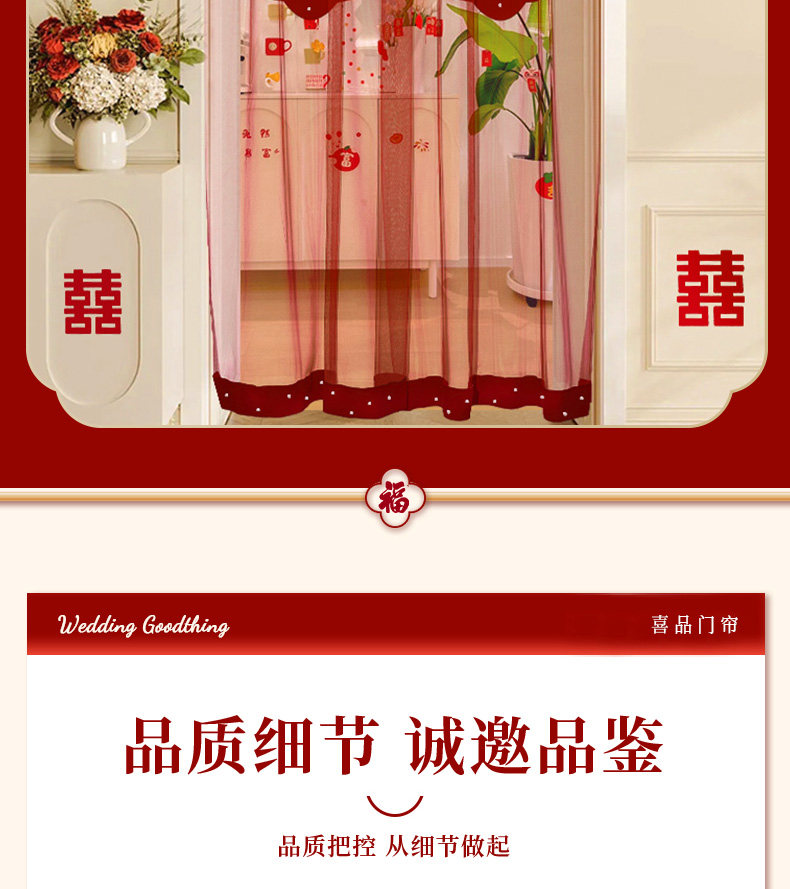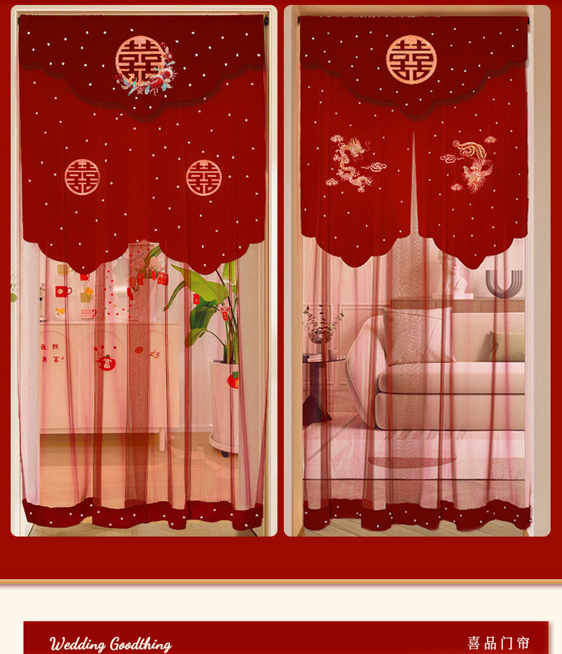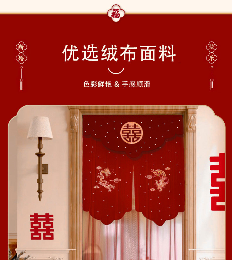 结婚红色喜帘门帘婚房卧室免打孔刺绣喜字挂帘客厅装饰布置全套
