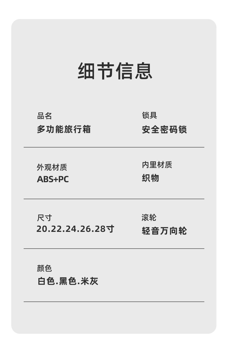 Размер 20inch (бесплатная замена в случае повреждения в течение одного года + пожизненная гарантия + страховка груза),22inch (бесплатная замена в случае повреждения в течение одного года + пожизненная гарантия + страховка груза),24inch (бесплатная замена в случае повреждения в течение одного года + пожизненная гарантия + страховка груза),26inch (бесплатная замена в случае повреждения в течение одного года + пожизненная гарантия + страховка груза)