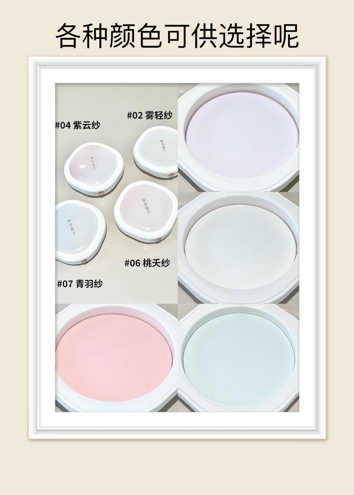Color Classification 02 Mist Gauze-Not Picky about Skin Color[Good Complexion Style-Transparent Matte],04 Ziyun Yarn-Repair Yellow and Brighten[Good Complexion Model-Warm Soft Purple,06 Peach Blossom Veil - Enhance Your Complexion[Good Complexion Model-Warm Soft Pink],07 Qing Yu Sha - Redness Corrector[Good Complexion - Mint Green]