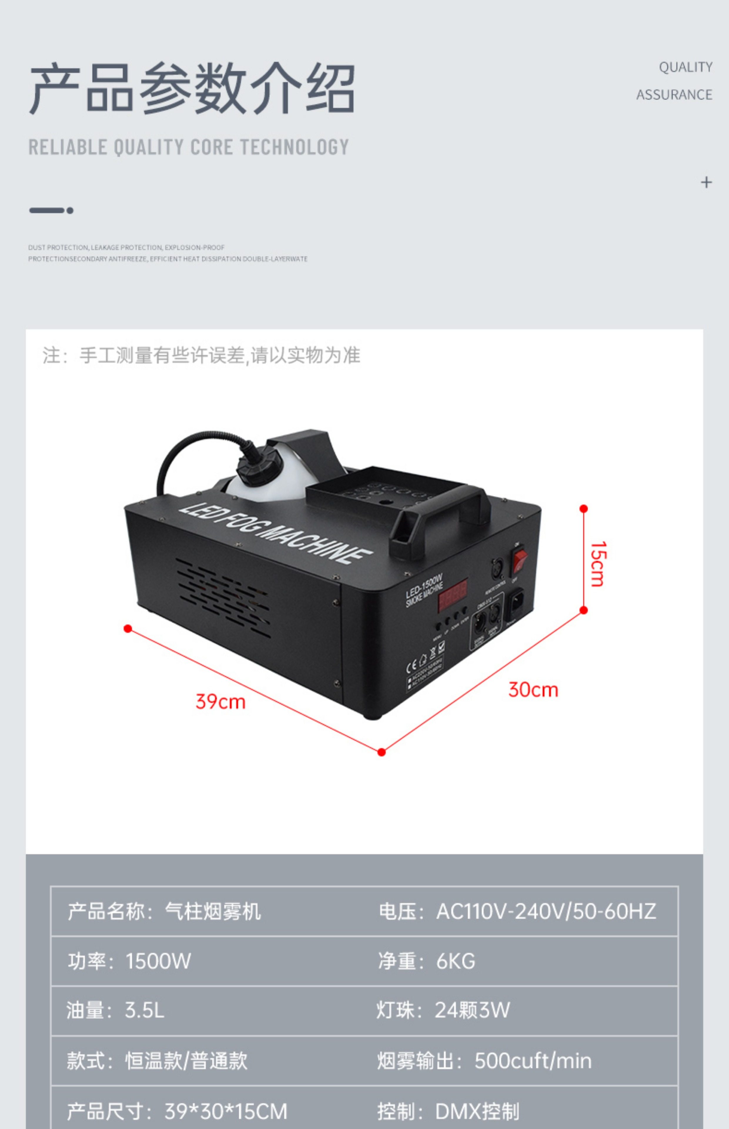 颜色分类 【普通版】1500W气柱烟雾机(赠送2瓶浓缩烟雾油),【恒温版】1500W气柱烟雾机(赠送2瓶浓缩烟雾油),【普通版】1500W七彩气柱烟雾机(赠送瓶浓缩烟雾油),【恒温版】1500W七彩气柱烟雾机(赠送2瓶浓缩烟雾油),【顶配版】24颗全彩气柱烟雾机/1500W(赠送2瓶浓缩烟雾油),【至尊版】24颗全彩恒温气柱烟雾机/3000W(赠送2瓶浓缩烟雾油),4.5升浓度超重烟雾油×2瓶,浓度超重烟雾油/1箱4瓶(1瓶4.5升)