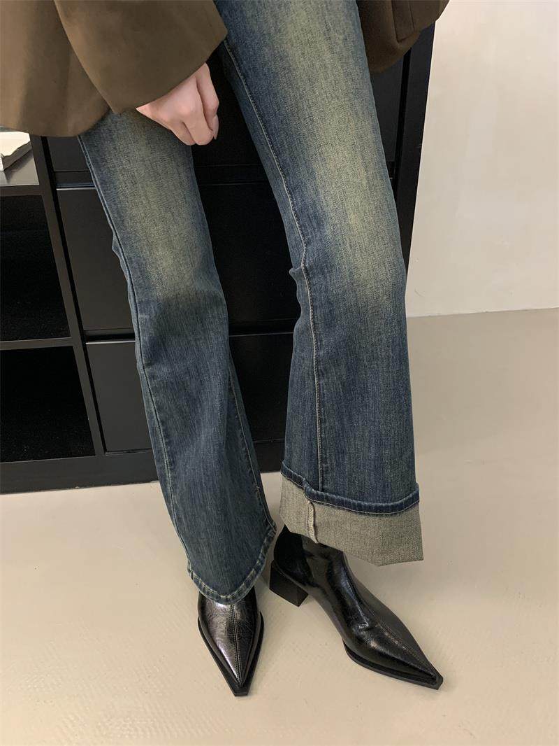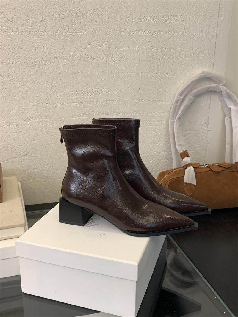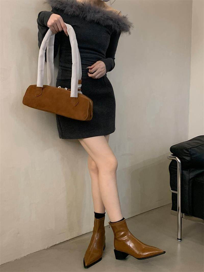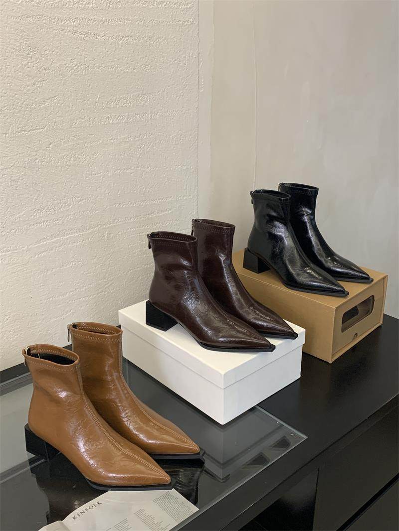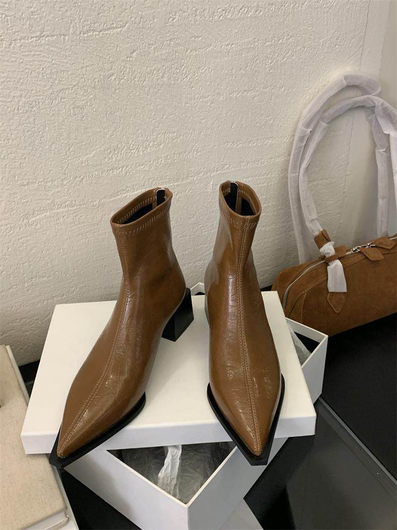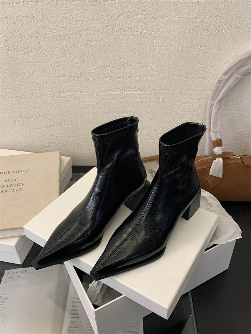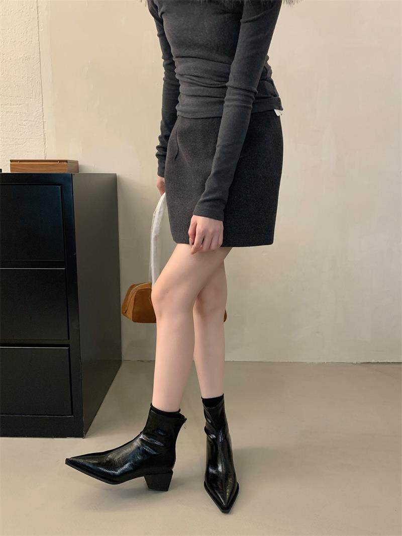 潮牌尖头欧美短靴女新款2025秋冬季时装粗跟瘦瘦靴小众设计马丁靴
