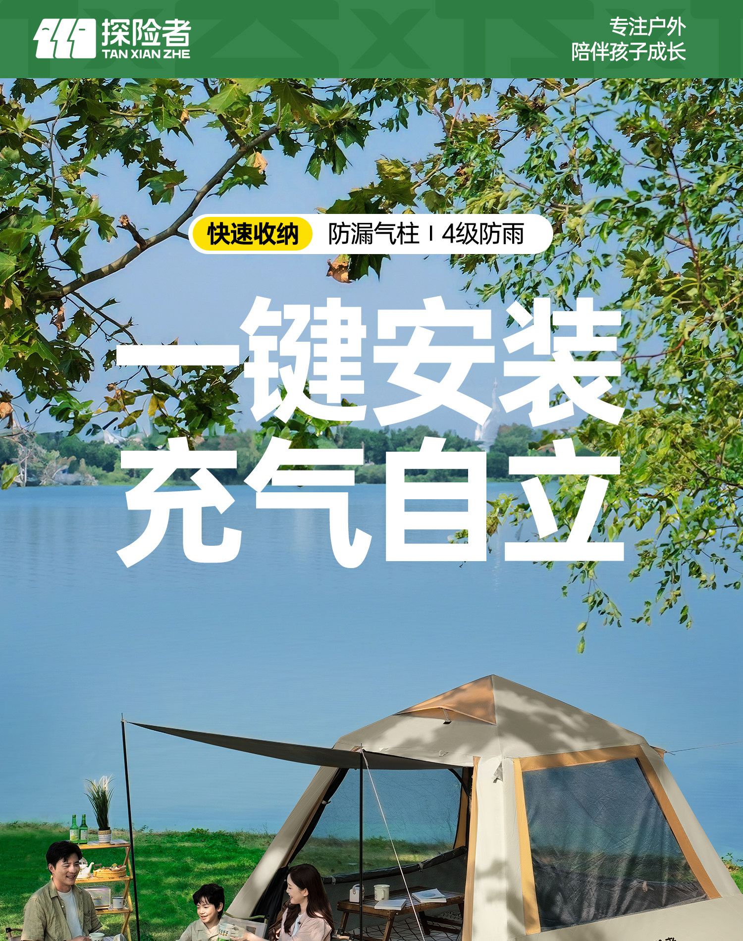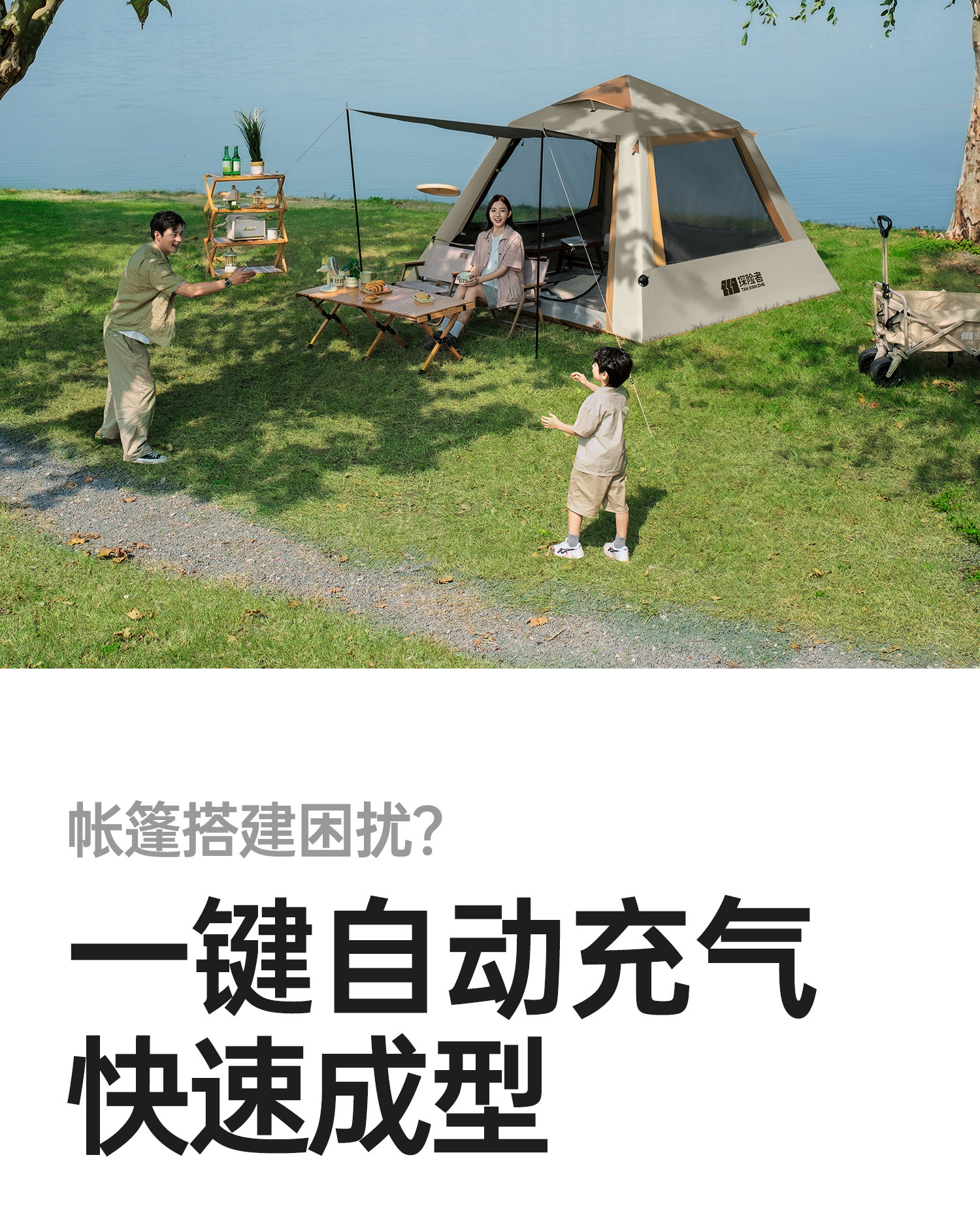 探险者自动充气帐篷户外便携式折叠野营过夜露营装备全套加厚防雨