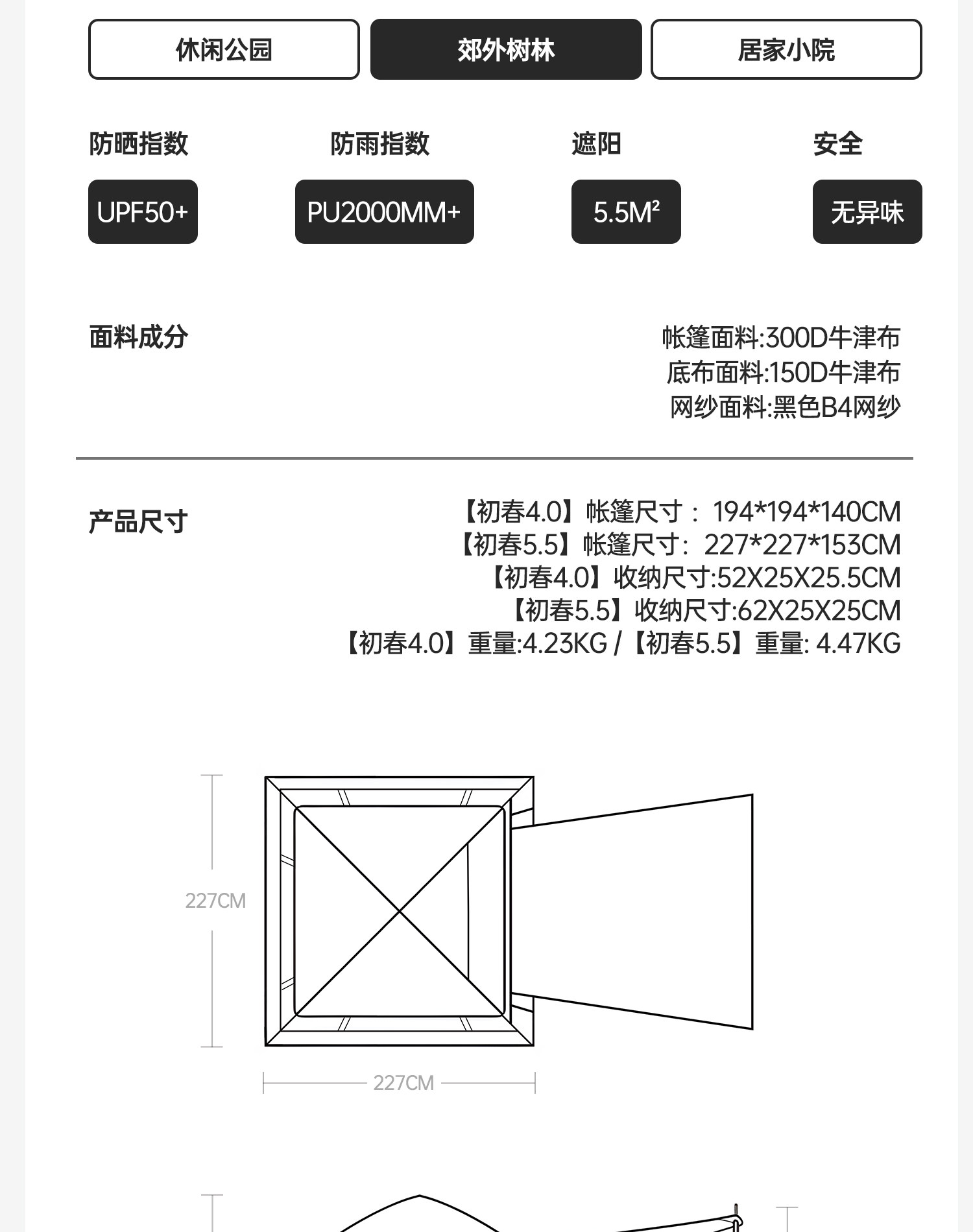 展开尺寸(长*宽*高 cm) 227*227*153cm