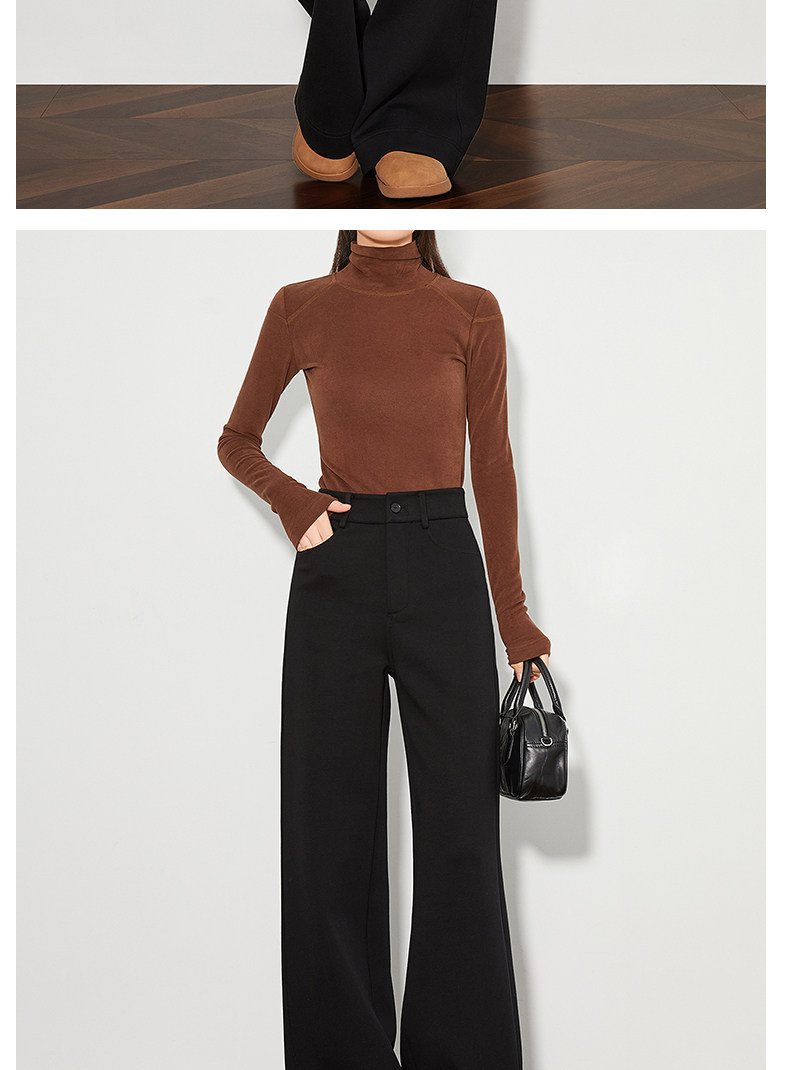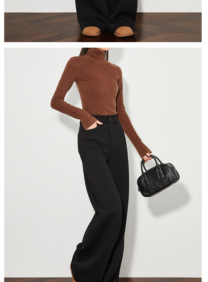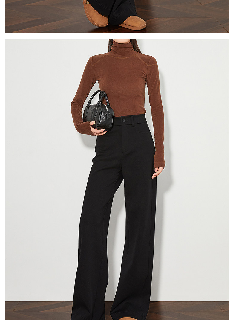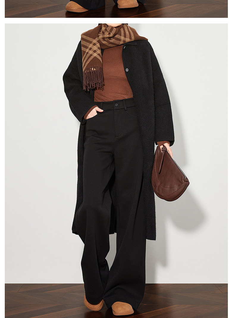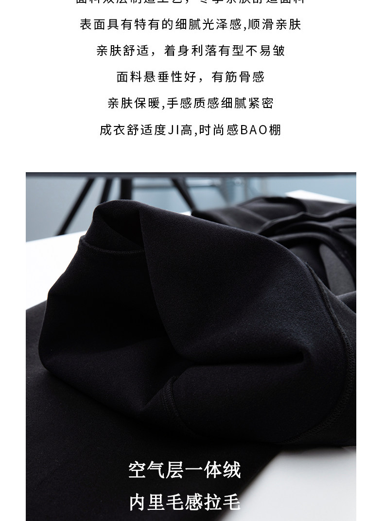 FAESSLIN【高级通勤】高腰黑色加绒休闲裤女冬加长拖地阔腿直筒裤