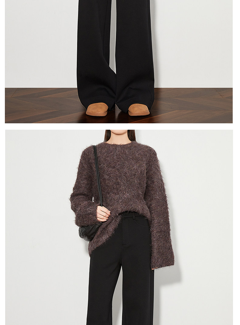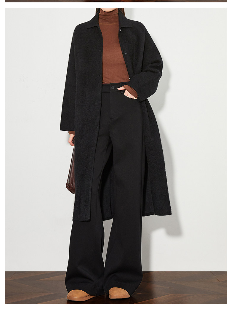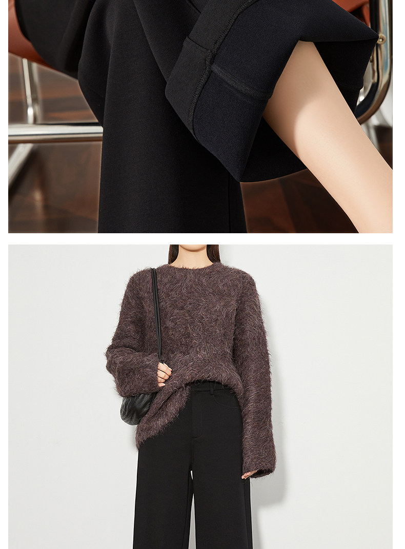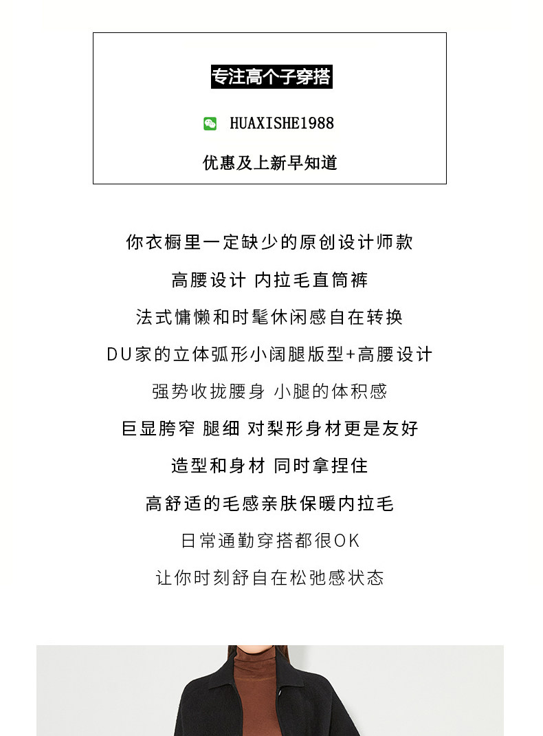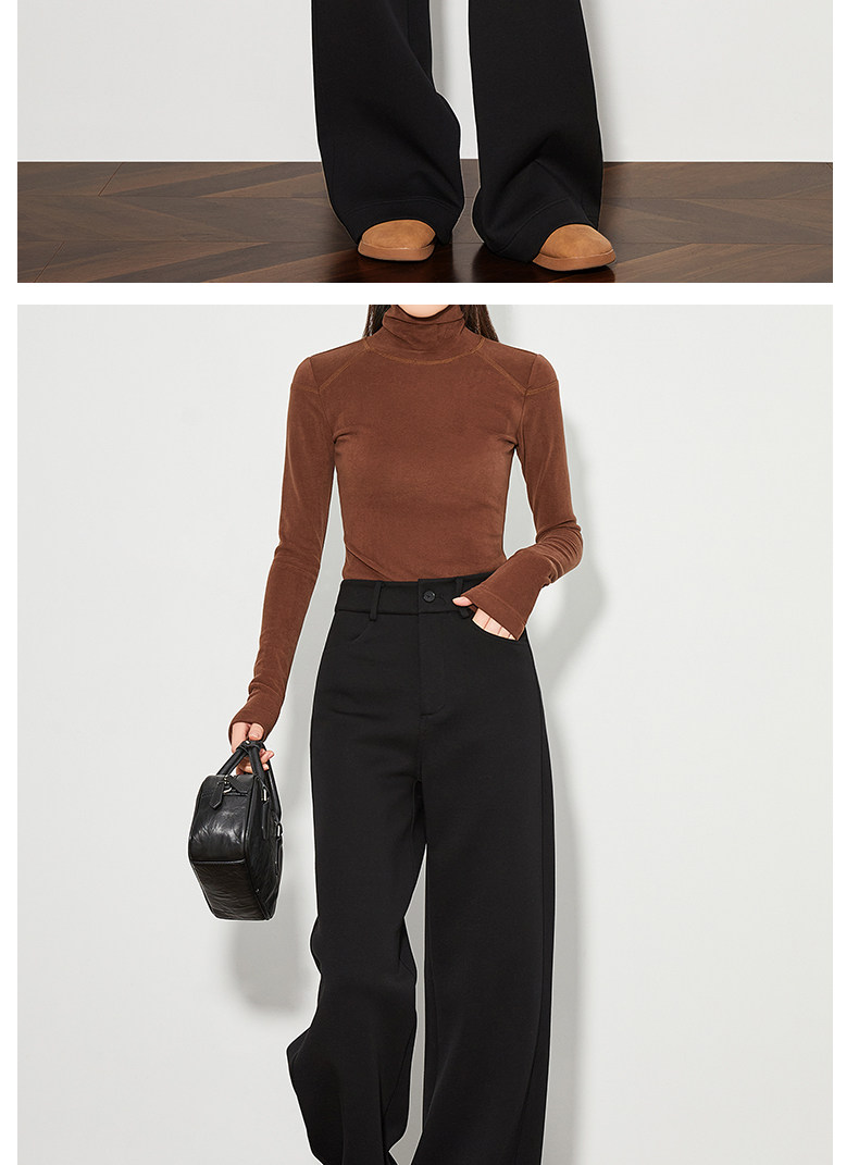 FAESSLIN【高级通勤】高腰黑色加绒休闲裤女冬加长拖地阔腿直筒裤
